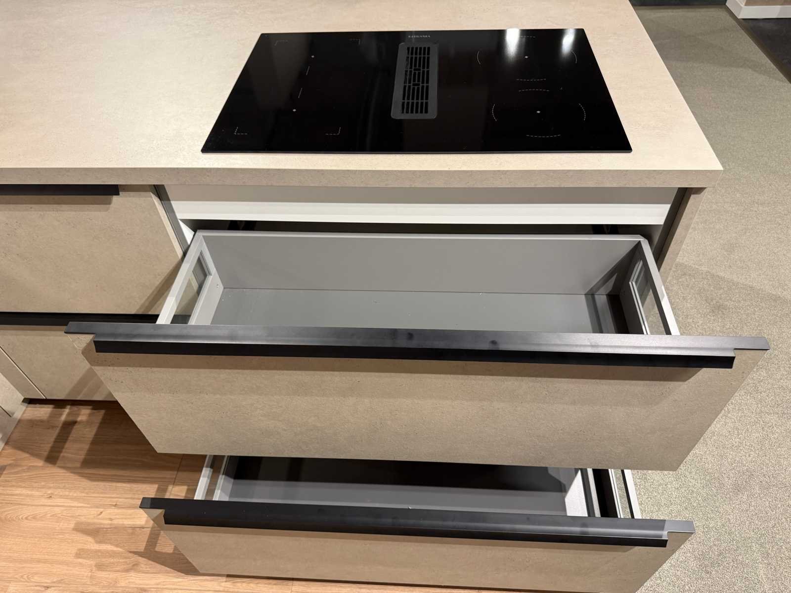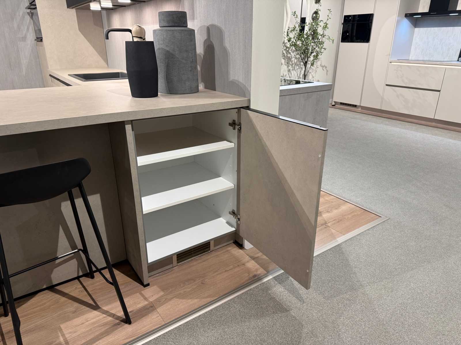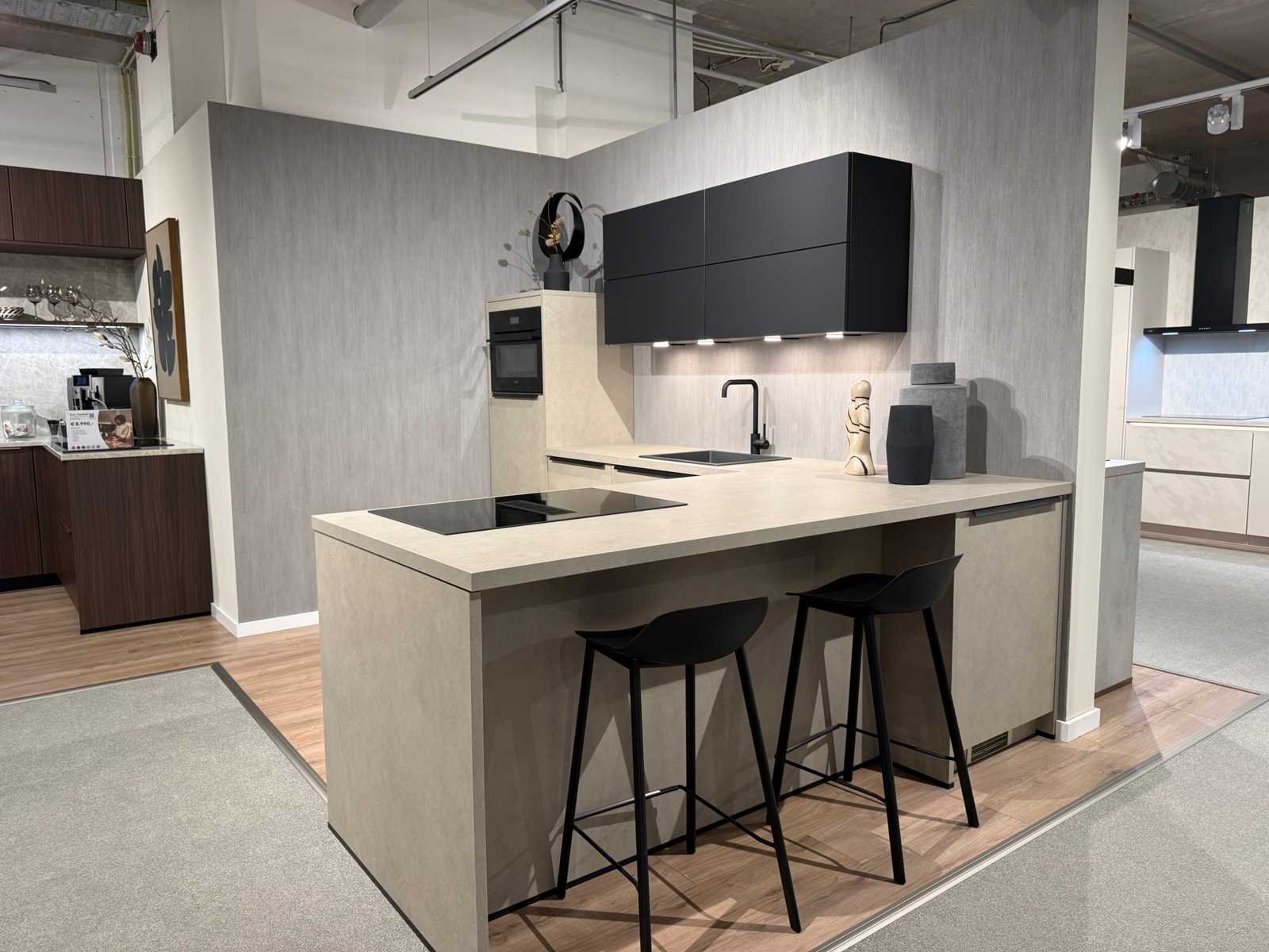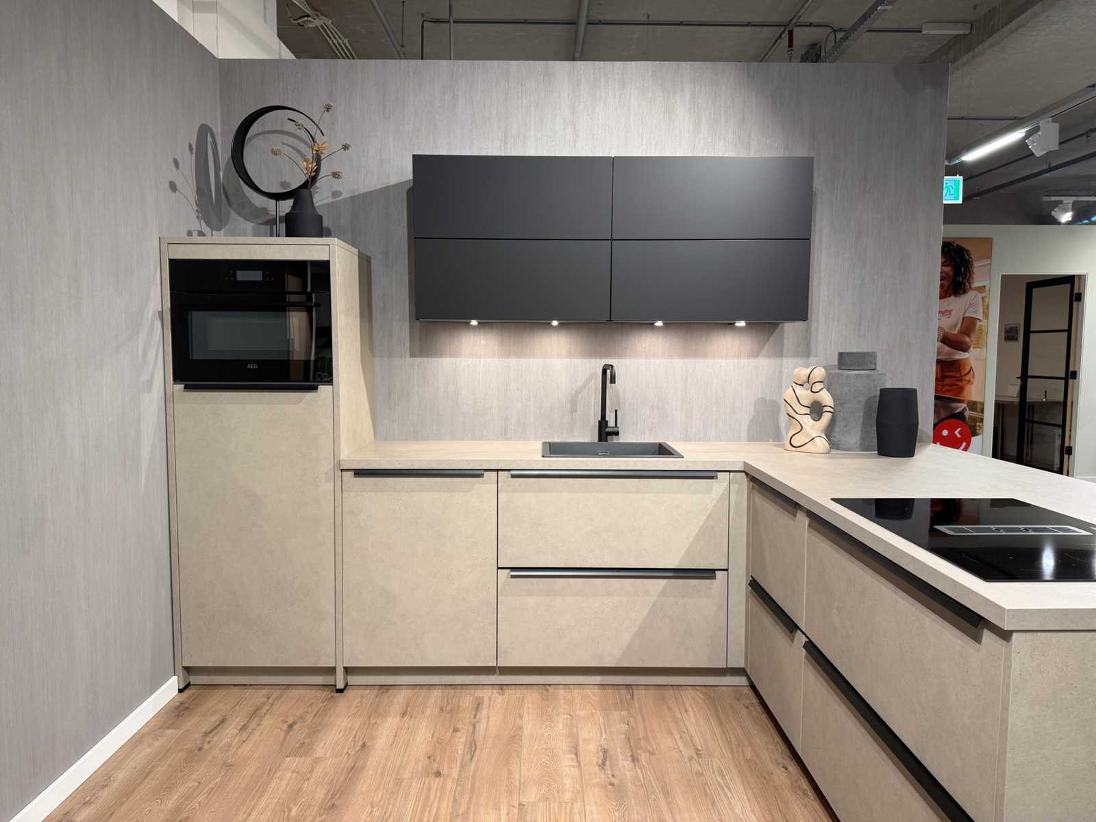Keuken dient gedemonteerd te worden op locatie Nee Merk: Schüller Type keukenopstelling: Schiereiland Lengte: 320cm Breedte: 60cm Hoogte: 180cm Kraan: Lanesto Gootsteen: Reginox Aanrechtblad: Vezelplaat Fornuis: Eleganza COMO8080-2F Koelkast: Juno JCN102F0S1 Softclose: true Oven: AEG KMK761080B Vaatwasser: Juno JGVX605E1 Lengte kookeiland: 228cm Breedte kookeiland: 100cm Hoogte kookeiland: 92,5cm Kleur: Beton kiezelgrijs