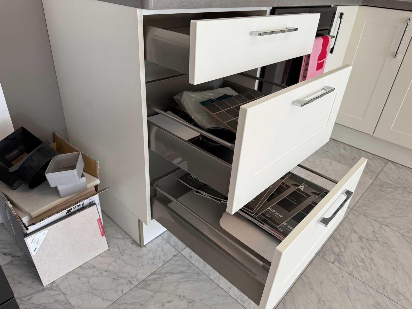 Afmetingen linkerdeel circa 210x60x91,5 cm; afmetingen rechterdeel circa 270x60x234 cm; reeds gedemonteerd en ingepakt op pallets. (afstapelen, omruilen of statiegeld per pallet); pallets zijn niet inbegrepen; statiegeld betalen bij afhalen, of pallets afstapelen; werkblad niet ingepakt op pallets (33911) Nee Merk: Häcker Type keukenopstelling: Hoek Kraan: Franke Gootsteen: Franke Fornuis: Inventum IKI6030 Koelkast: Zanussi ZBB28441SA Softclose: true Oven: Etna MO670Ti Afzuigkap: Zanussi ZHP615X Vaatwasser: Zanussi ZDT16002FA