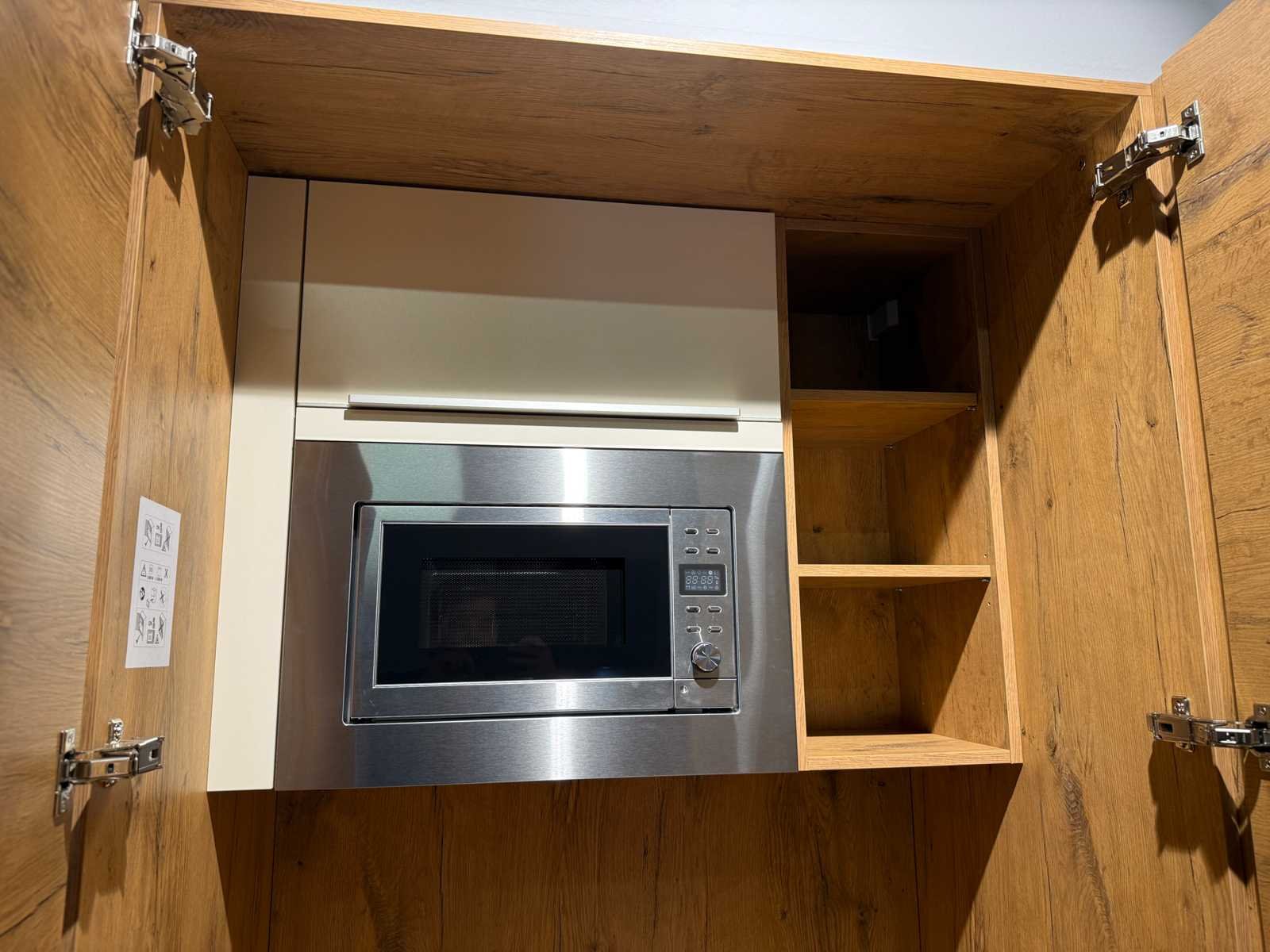 Reeds gedemonteerd en ingepakt op pallets. (afstapelen, omruilen of statiegeld per pallet); pallets zijn niet inbegrepen; statiegeld betalen bij afhalen, of pallets afstapelen; werkblad niet ingepakt op pallets (26-IMP-04259) Nee Merk: Impuls Lengte: 103,2cm Breedte: 60cm Hoogte: 220,6cm Aanrechtblad: Kunststof eikenlook Magnetron: Amica EMW 13185 E Kleur: Eikenlook + magnolia wit