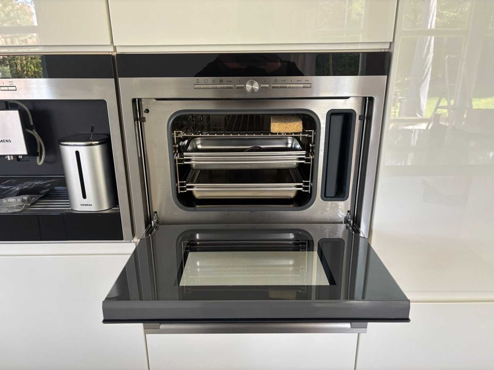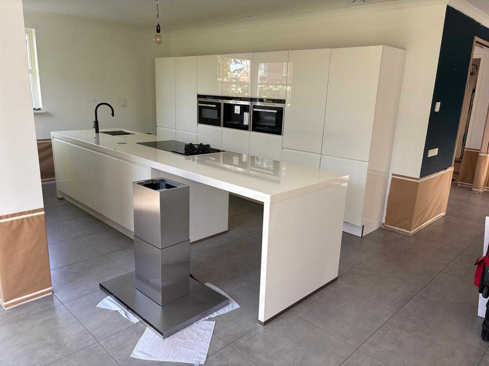 Conditie: gebruikt; keuken komt zonder kraan; reeds gedemonteerd en ingepakt op pallets. (afstapelen, omruilen of statiegeld per pallet); pallets zijn niet inbegrepen; statiegeld betalen bij afhalen, of pallets afstapelen; werkblad niet ingepakt op pallets (26-2DE-03985); zonder kraan, krukken en accessoires Nee Merk: Nolte Type keukenopstelling: Eiland Lengte: 420cm Breedte: 60cm Hoogte: 210cm Aanrechtblad: Composiet Koffiezetapparaat: Siemens TK76K573 Magnetron: Stoomoven Siemens HB38D585 Fornuis: Siemens EX777NEV6E Koelkast: Siemens KI34VX20 Softclose: true Oven: Siemens HB86P585 Afzuigkap: Siemens LF91BA560 Vaatwasser: Siemens SN69M051NL Lengte kookeiland: 396cm Breedte kookeiland: 100cm Hoogte kookeiland: 90cm Kleur: Wit (A17 Alpha Lak)