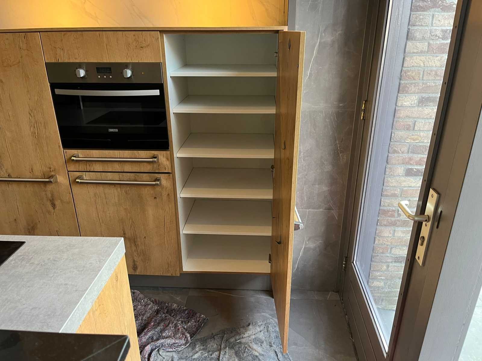 Conditie: gebruikt; reeds gedemonteerd en ingepakt op pallets. (afstapelen, omruilen of statiegeld per pallet); pallets zijn niet inbegrepen; statiegeld betalen bij afhalen, of pallets afstapelen; werkblad niet ingepakt op pallets (26-2DE-03301); keuken komt zonder ombouw kastenwand Nee Type keukenopstelling: Eiland Lengte: 271cm Breedte: 60cm Hoogte: 160cm Aanrechtblad: Betonlook Fornuis: Ja Koelkast: Zanussi ZBA3230A Softclose: true Oven: Zanussi ZOK35901XK Afzuigkap: Klarstein Vaatwasser: Zanussi ZDT311 Lengte kookeiland: 273cm Breedte kookeiland: 124cm Hoogte kookeiland: 95cm Kleur: Beukenhoutlook + marmerlook