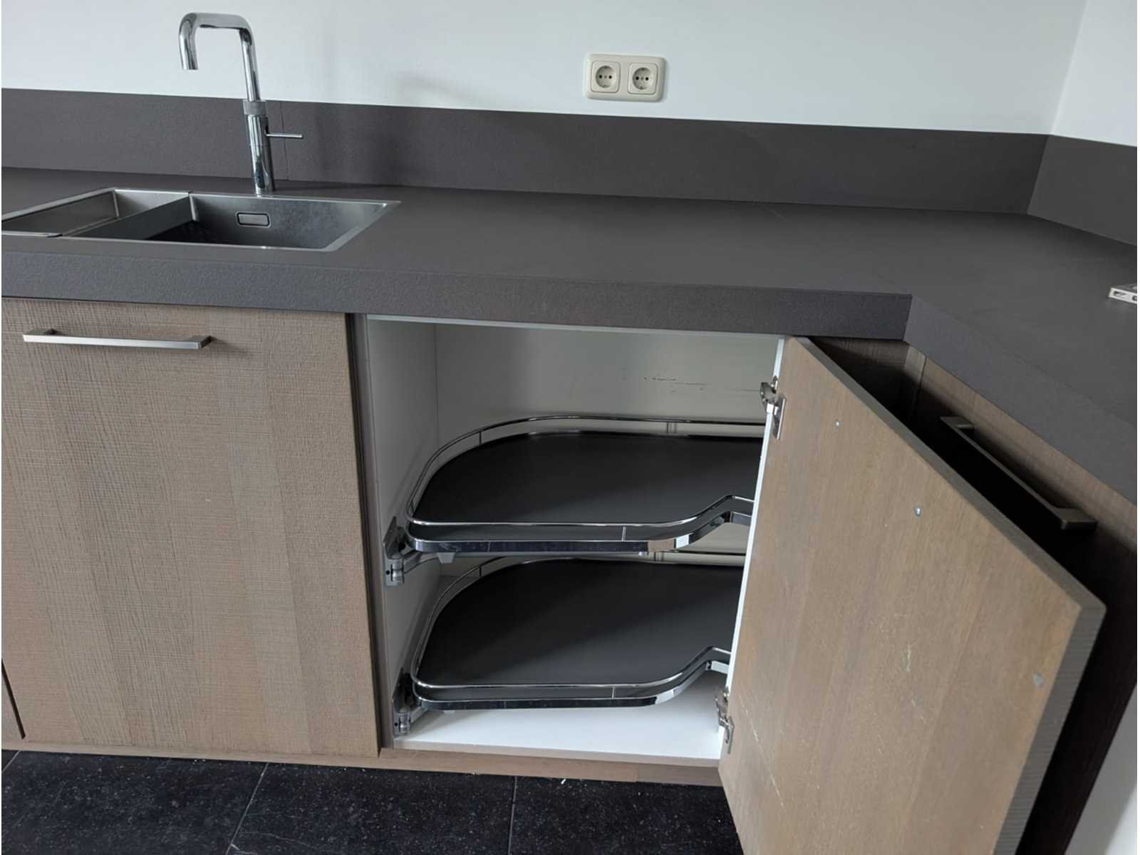 Conditie: gebruikt; afmetingen linkerdeel circa 468x71x160 cm; afmetingen rechterdeel circa 102x55x95 cm; reeds gedemonteerd en ingepakt op pallets. (afstapelen, omruilen of statiegeld per pallet); pallets zijn niet inbegrepen; statiegeld betalen bij afhalen, of pallets afstapelen; werkblad niet ingepakt op pallets (26-2DE-03202); keuken komt zonder spatranden en schouw Nee Merk: Schmidt Type keukenopstelling: Hoek Kraan: Quooker (zonder boiler) Aanrechtblad: Composiet Fornuis: AEG D567SX0 Softclose: true Oven: Pelgrim OM540RVS Afzuigkap: Ja Vaatwasser: Neff S51L50X0EU