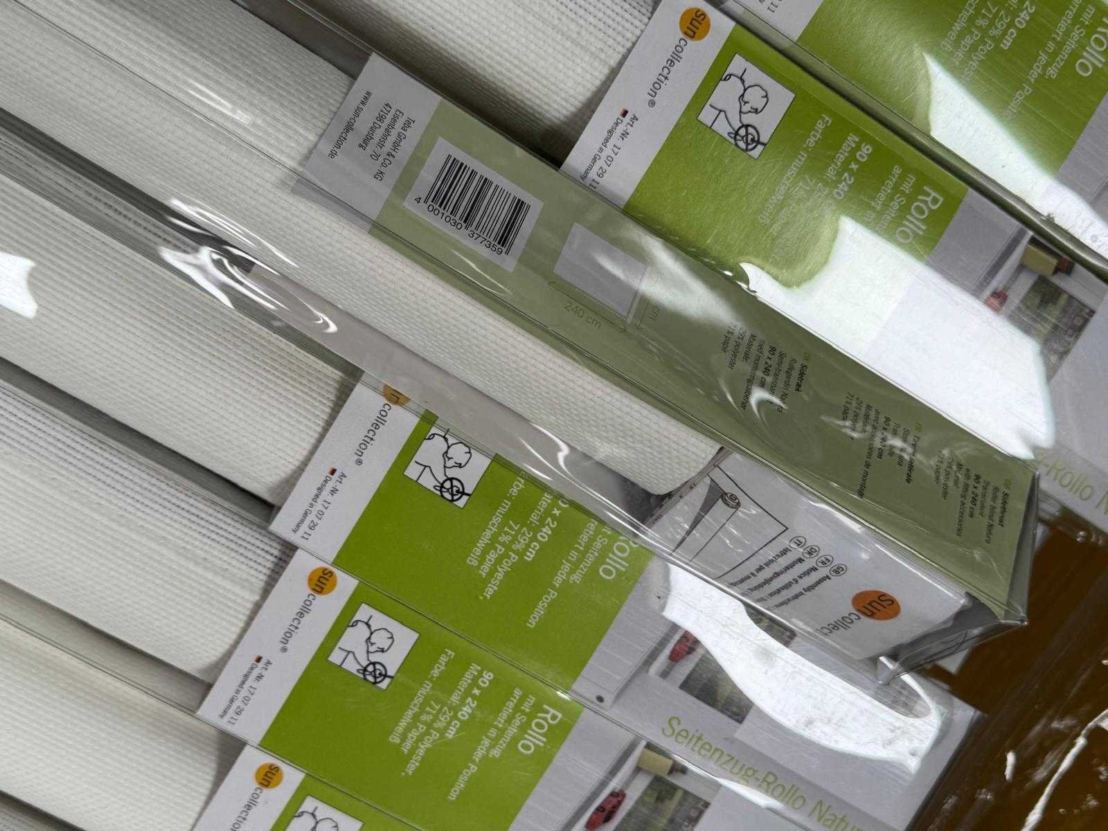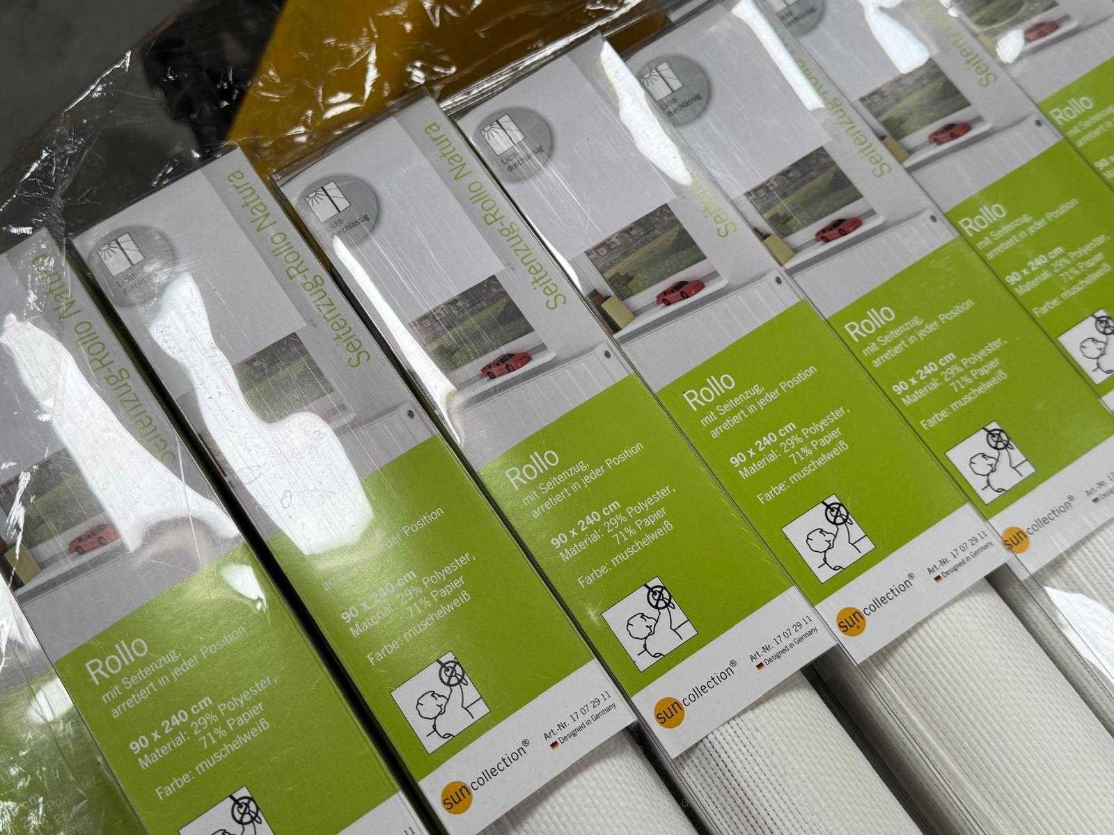 Rolgordijn 90 x 240 cm ; met zijbediening en vast te zetten in elke positie ; materiaal: 29% polyester en 71% papier ; kleur: mosselwit ; Sun Collection. Nee Merk: Suncollection Kleur: Schelpwit Lengte: 240cm Breedte: 90cm Materiaal: 29% polyester 71% papier