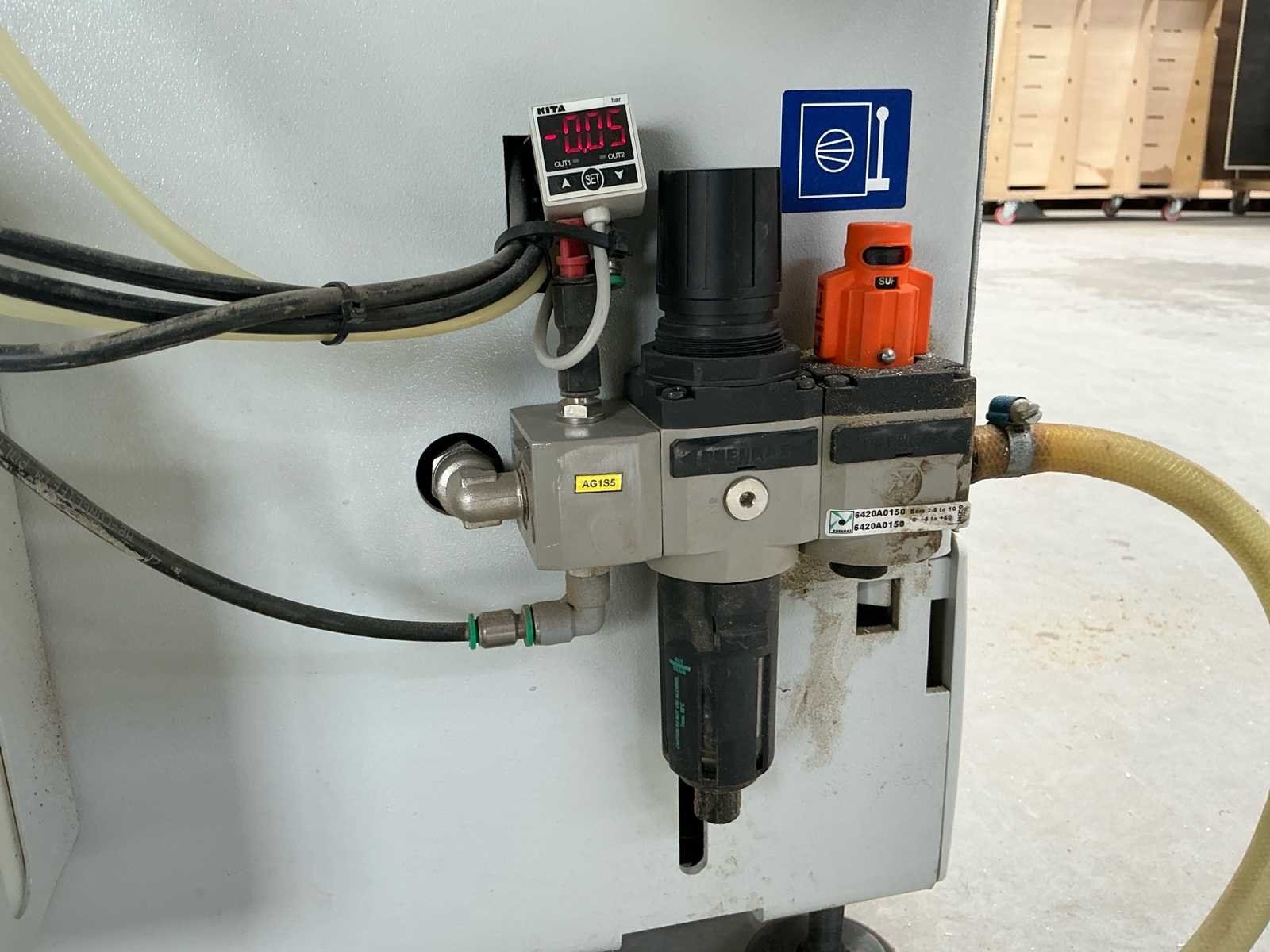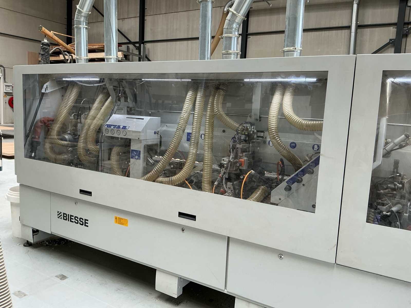 Voorzien van: digitaal bedieningspaneel, noodstop, tweede Lijnbaan, kandbanddikte 0,5-3, 3x opvangbak, antilijmhechtingssprayunit Nee Merk: Biesse Type: JADE 340 Bouwjaar: 2016 Serienummer: 22082 Paneeldikte: 60mm Kantenbandhoogte: 63mm Min. werkstuklengte: 150mm Min. werkstukbreedte: 80mm Doorvoersnelheid: 12m/min Zaagunit: true Voorfreesunit: true Freesunit: true Rondloopunit: true Schraapunit: true Poetsunit: true Aansluiting: 380V Machinegewicht: 1980kg Afmeting l: 5200mm Afmeting b: 1100mm Afmeting h: 1690mm