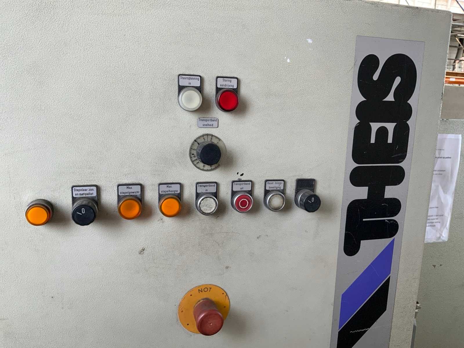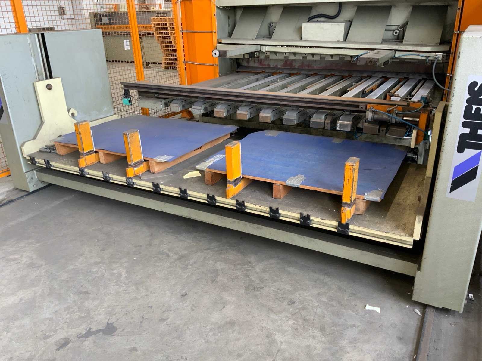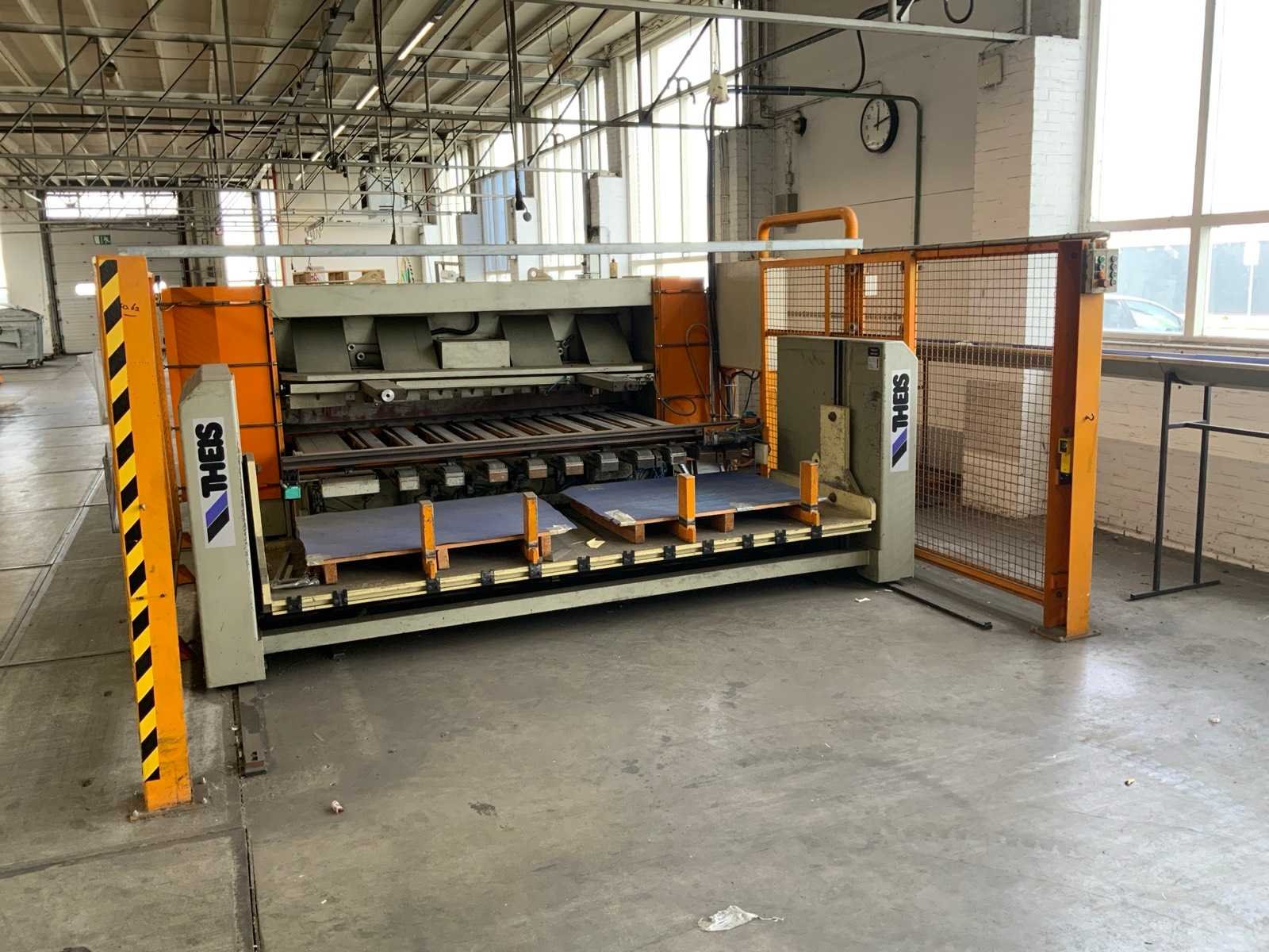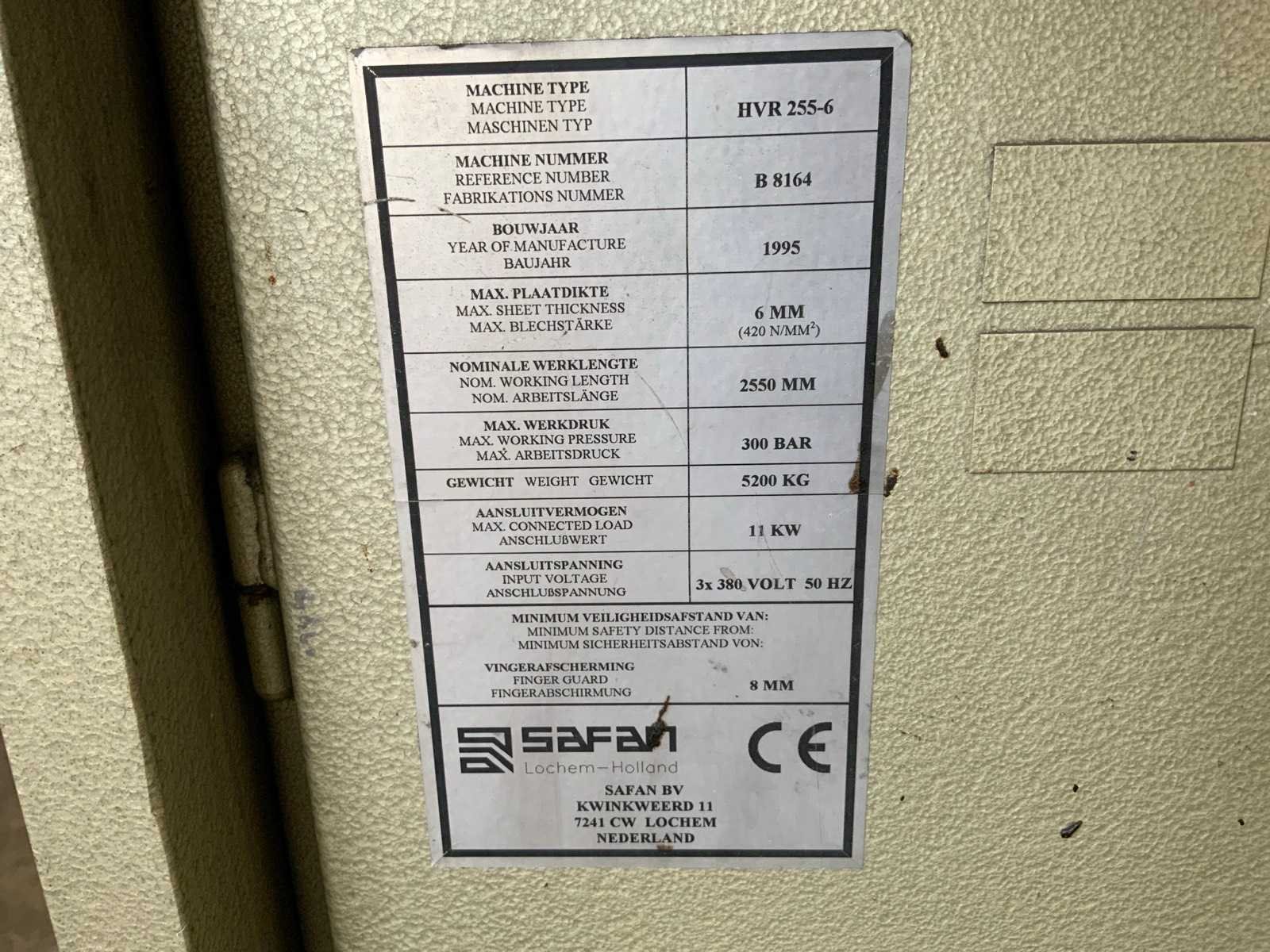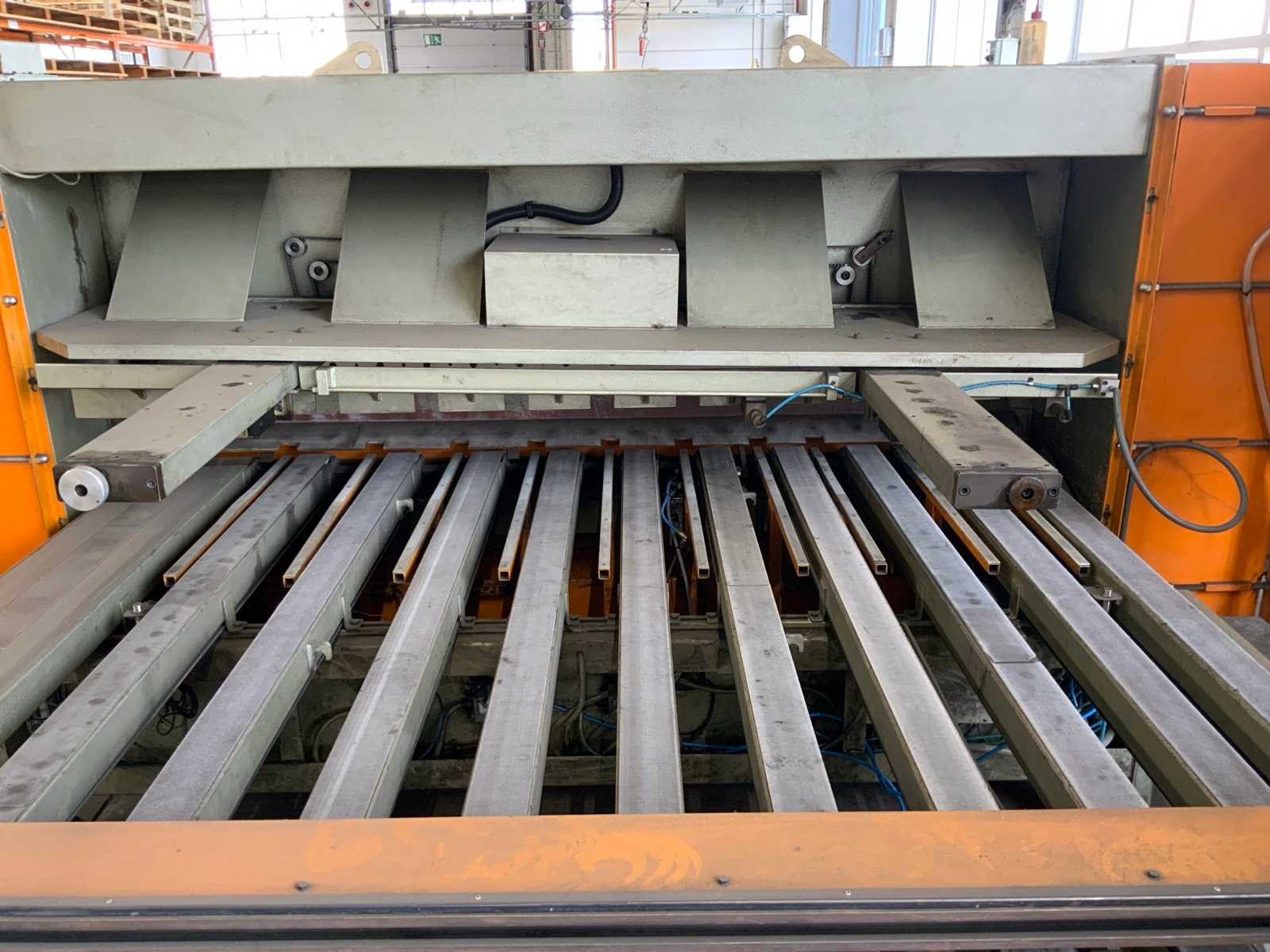 Aanslag lengte: 1400 / 3150mm , voorzien van opnametafel met uitvoersysteem , 1 THEIS ST2501/4/0 automatische stapelaar, , 1 bedieningsconsole. inclusief veiligheidshekwerk Nee Merk: Safan Type: HVR 255-6 Bouwjaar: 1995 Serienummer: B 8164 Snijlengte: 2550mm Max. plaatdikte: 6mm Achteraanslag bereik: 1000mm Besturing, merk, type: Cybelec CybTouch 12 touchscreen Motorvermogen (kW): 11kW Aansluiting: 380V Machinegewicht: 5200kg Afmeting l: 7600mm Afmeting b: 4200mm Afmeting h: 2100mm