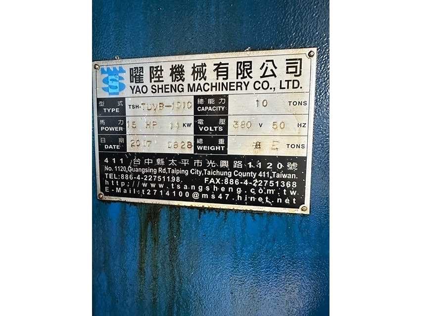 BROOTSMACHINE met Capaciteit van minimaal 50mm INCLUSIEF BROOTSEN geleide bussen Transport afmetingen op aanvraag No Merk: YAO SHENG MACHINERY Type: TUVB-101C Bouwjaar: 2007 Capaciteit.: 10t Slag: 1500mm Maat (getal): 50mm Elektrisch aangedreven: true Motorvermogen (kW): 11kW Aansluiting: 380V Machinegewicht: 8000kg Afmeting l: 5000mm Afmeting b: 3200mm Afmeting h: 5000mm Leveringsvoorwaarden: Geladen op vrachtwagen