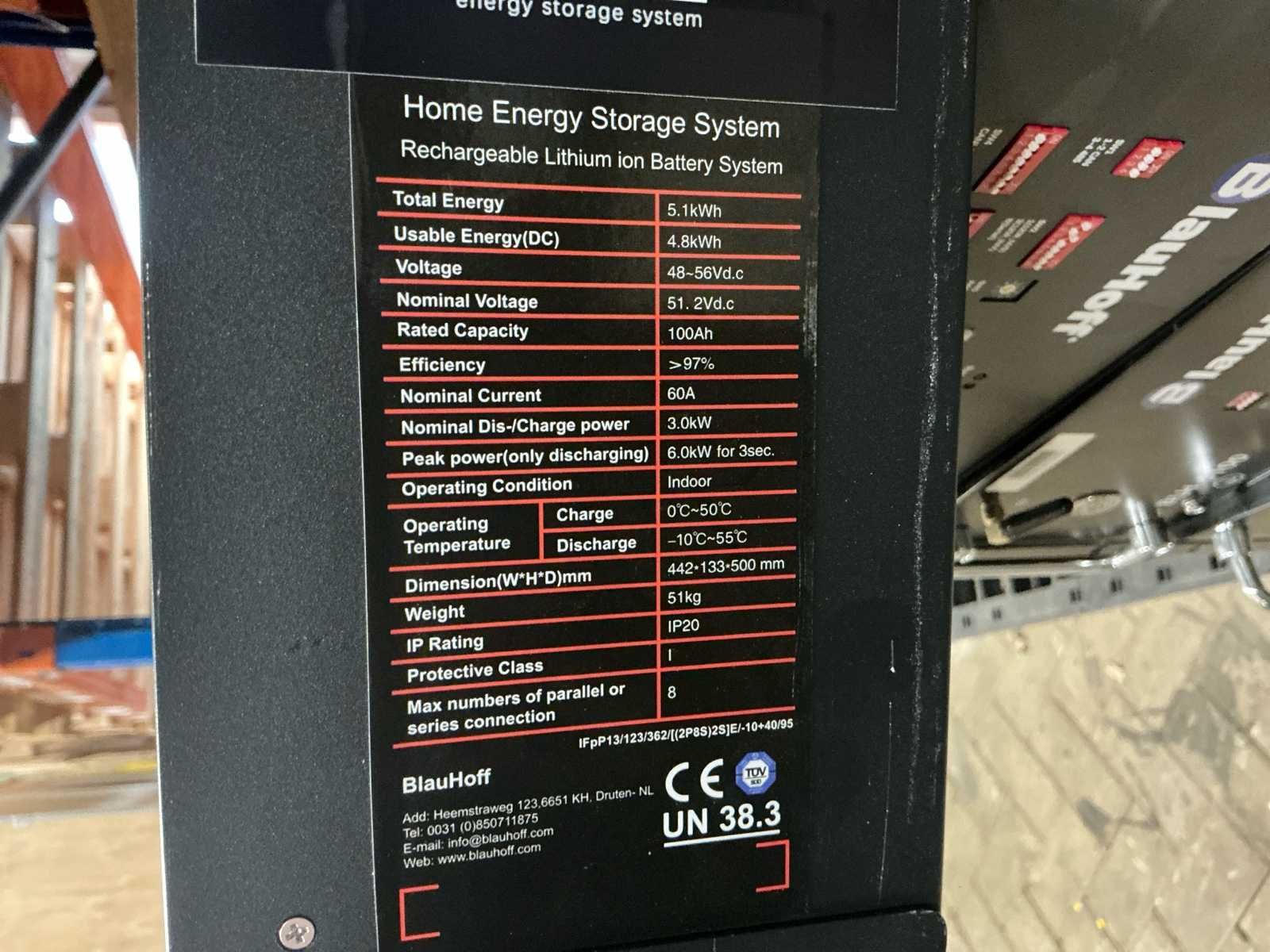 Voorzien van: 10 kWh, 4x 5,12 kWh CFE batterij, Blauhoff cube 20 omkasting, eenvoudig te installeren, aansluitbaar op o.a. Deye omvormer Nee Merk: CFE Type: 10 Totale afmeting L: 580mm Totale afmeting Breedte: 250mm Totale afmeting Hoogte: 1155mm