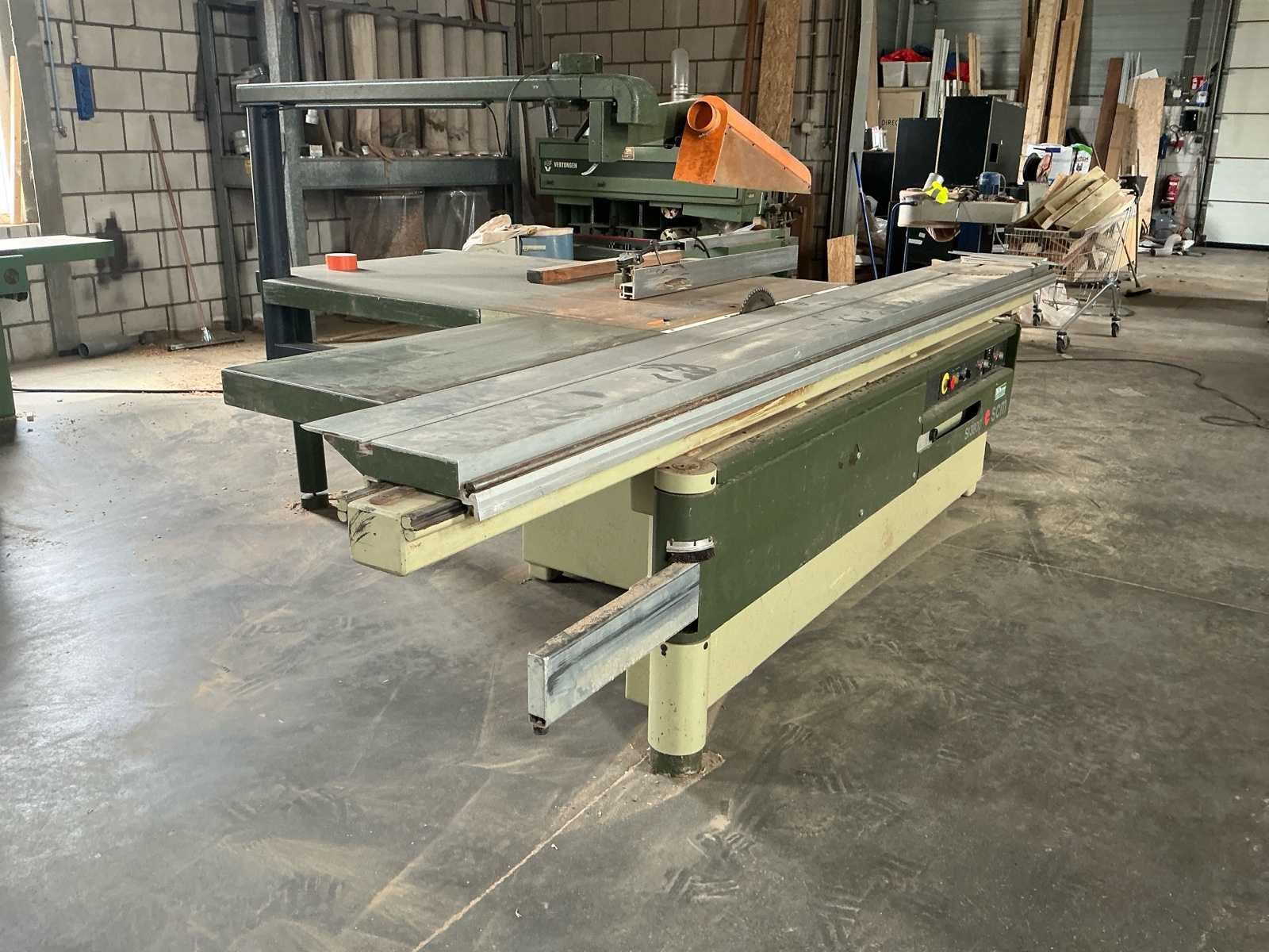 Nee Merk: SCM Type: SI 3800 Serienummer: AB 66652 Zaagblad Ø: 300mm Zaaghoogte: 900mm Tafel afmeting l: 850mm Tafel afmeting b: 3850mm Aansluiting: 380V Totale afmeting L: 3850mm Totale afmeting Breedte: 2250mm Totale afmeting Hoogte: 1550mm