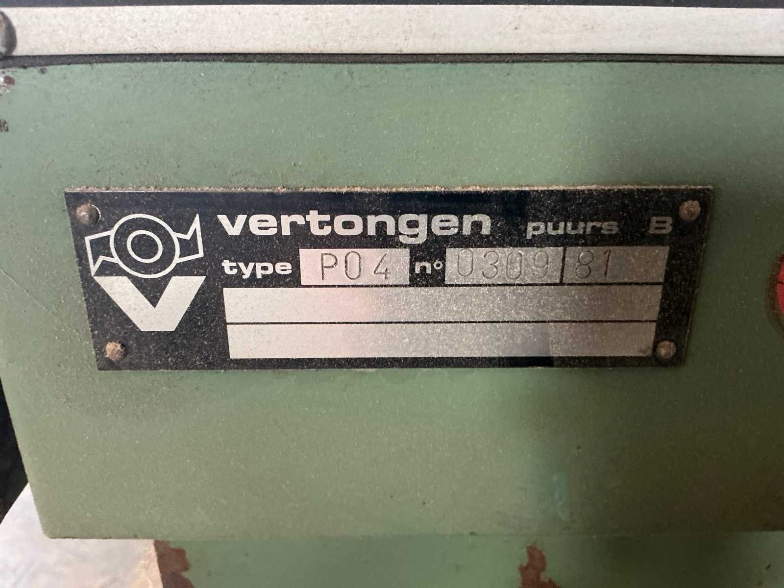 Nee Merk: Vertongen Type: P04 Serienummer: 030981 Aantal assen: 5 Aantal freesassen: 4 Aantal zaagassen: 1 Materiaalklemmen: true Aansluiting: 380V Afmeting l: 2250mm Afmeting b: 800mm Afmeting h: 1400mm