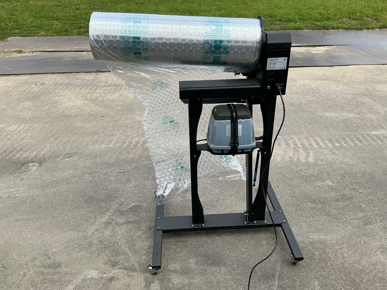 Voorzien van: digitaal bedieningspaneel, noodstop, folie, compressor Nee Merk: Bewaring I.B. Flex Type: Fill-Air Rocket Bouwjaar: 2020 Serienummer: 53048 Verrijdbaar: true Aansluiting: 220V Eigen gewicht: 59kg Totale afmeting L: 860mm Totale afmeting Breedte: 750mm Totale afmeting Hoogte: 1340mm