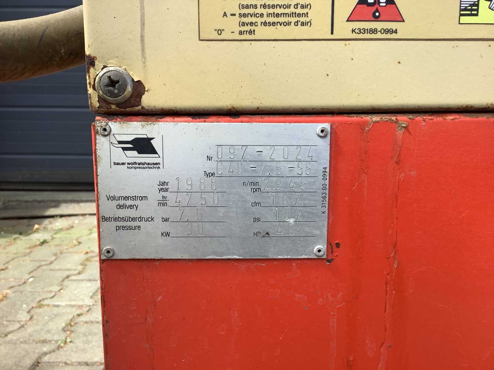 Nee Merk: Berko Type: C40 Bouwjaar: 1988 Capaciteit.: 8bar Luchtstroom: 4750l/min Vermogen: 30kW Eigen gewicht: 1000kg Totale afmeting L: 1700mm Totale afmeting Breedte: 900mm Totale afmeting Hoogte: 1930mm