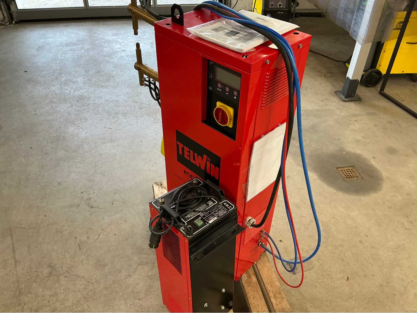 Type: Telwin PCP 18 LCD puntlasapparaat (kolommodel, weerstandlassen) Voeding: 400 V (2-fase) Frequentie: 50 / 60 Hz Max. lasstroom: 9700 A Max. lasdikte: 3 + 3 mm Secundaire nullastspanning: 2,6 V Max. opgenomen vermogen: ca. 22 kVA Nominaal vermogen (X=50%): ca. 15 kVA Cos phi: 0,7 Elektrode kracht: max. 190 daN Armprojectie: 330 mm Duty cycle: 15% Beschermingsklasse: IP20 Afmetingen (lxbxh): ca. 790 x 320 x 1280 mm Gewicht: ca. 118 – 120 kg Bediening: LCD display met EASY en EXPERT modus Programma’s: tot 20 instelbare lasprogramma’s Functies: continue en puls lassen Instelbaar: lasstroom, lastijd, elektrodedruk en sluitingssnelheid Aansturing: pneumatisch pedaal Koeling: waterkoeling vereist voor elektroden en armen Extra: thermische beveiliging en luchtregeling voor armbeweging  Voorzien van extra Telwin GRA90 koeler. Type: Telwin GRA 90 waterkoelunit voor lasapparatuur Toepassing: geschikt voor MIG/MAG (tot 500 A), TIG (tot 250 A) en puntlasmachines (tot ca. 15 kVA) Voeding: 230 V (1-fase) Frequentie: 50 / 60 Hz Koelvermogen: ca. 0,95 kW Tankinhoud: ca. 5 liter Systeem: gesloten koelcircuit (voorkomt kalk en verstoppingen) Vermogen (opgenomen): ca. 270 W Afmetingen: ca. 255 × 240 × 710 mm Gewicht: ca. 15,2 kg Gebruik: koeling van lastoortsen, elektroden en armen bij intensief lassen Extra: kunststof watertank en continu recirculatiesysteem Nee Merk: Telwin Type: PCP 18 LCD Voetbediening: true Aansluiting: 400V Machinegewicht: 120kg Afmeting l: 790mm Afmeting b: 320mm Afmeting h: 1280mm
