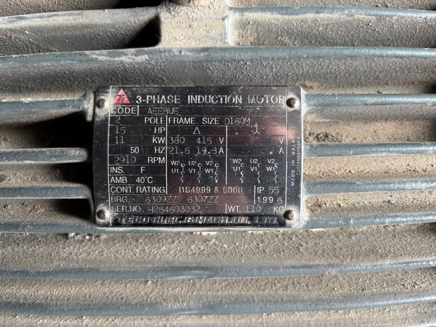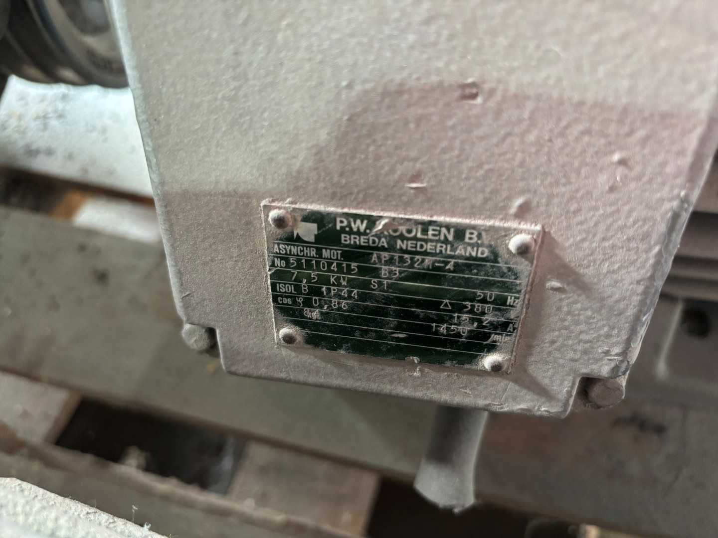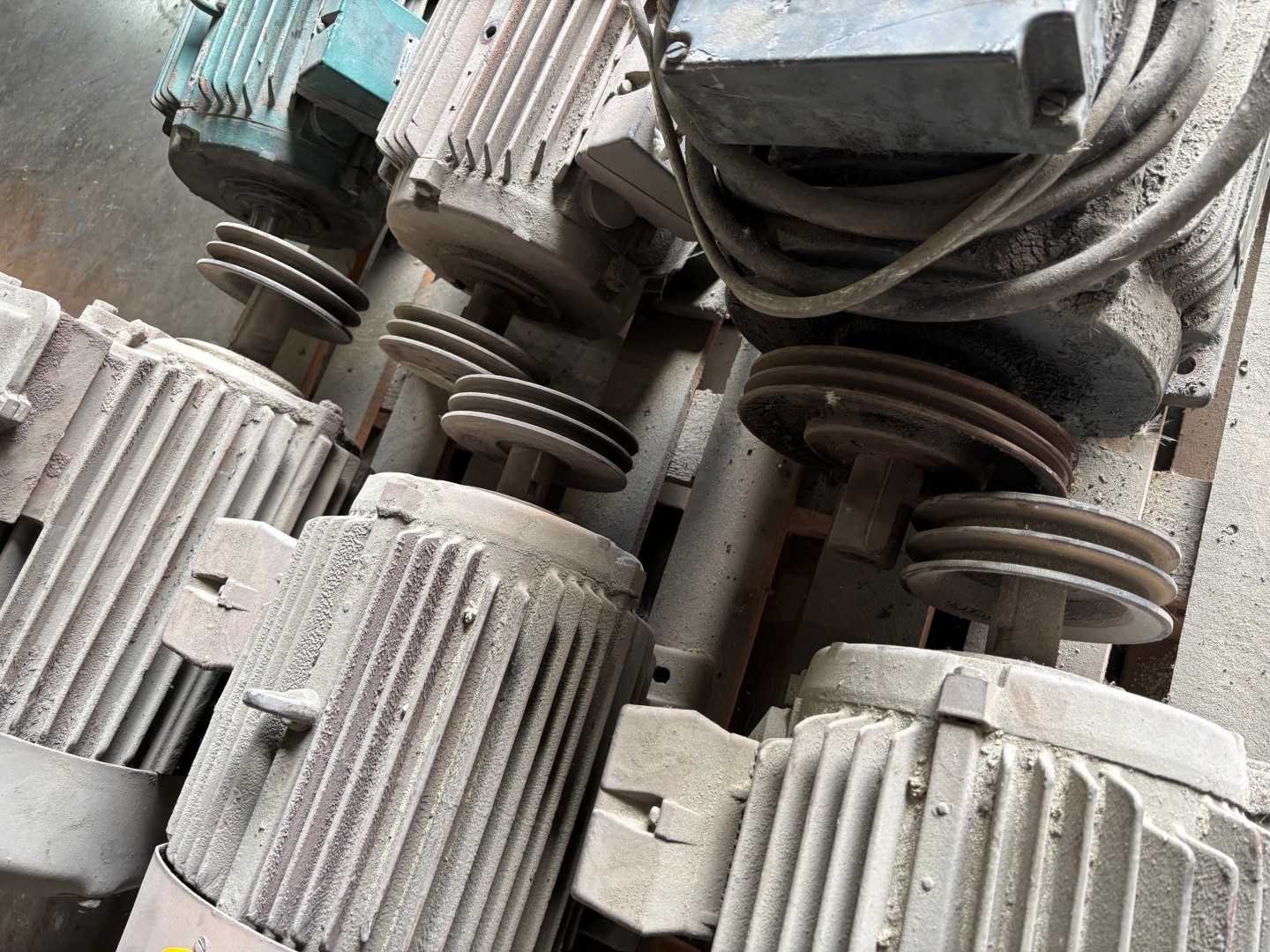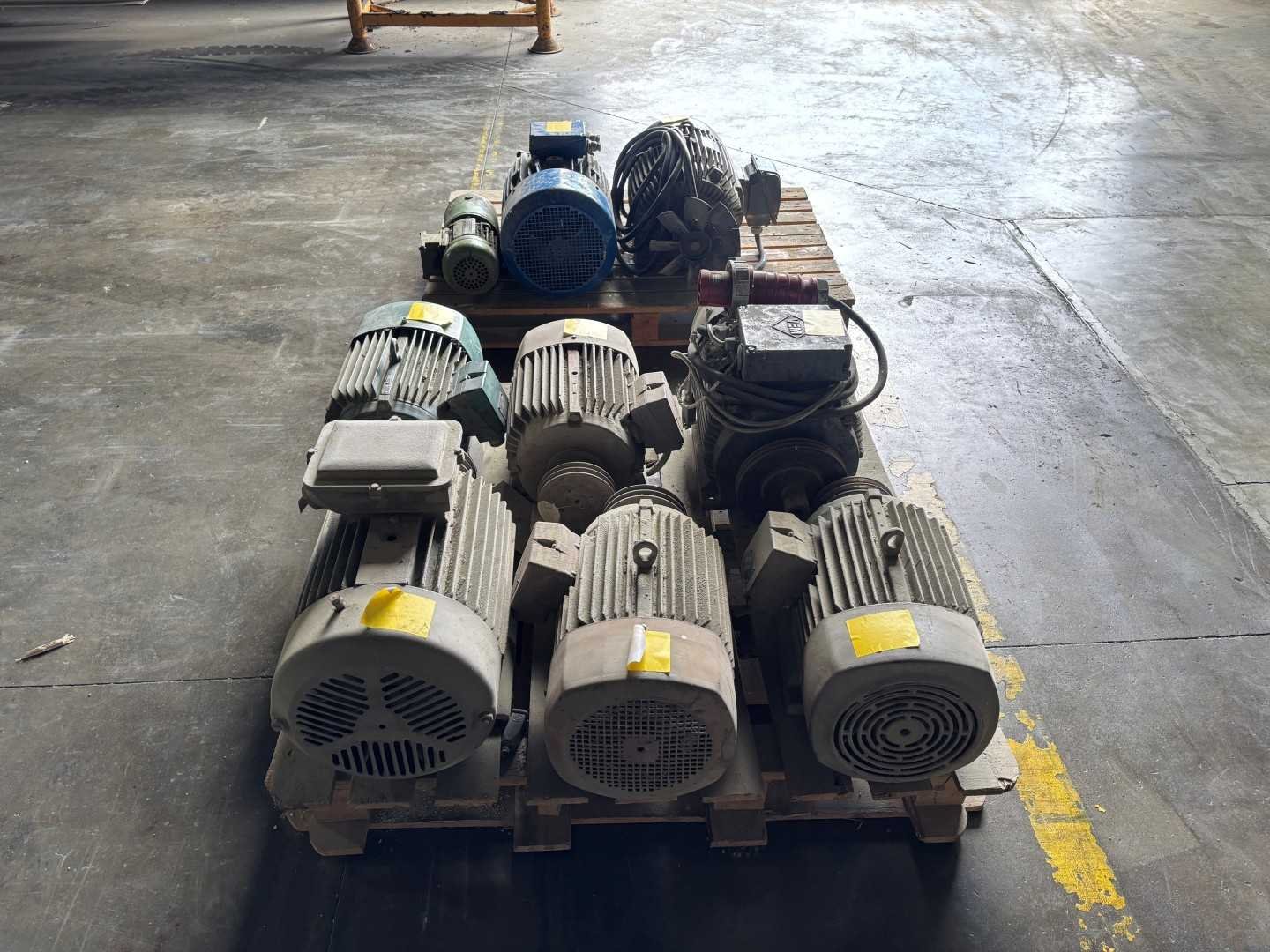 Bestaat uit: partij elektromotoren – 3-fase – diverse vermogens, inductiemotoren, diverse merken en vermogens, TEC Electric, Elektrim S.A., MEZ Mohelnice, P.W. Koolen (Breda), VEM Motors (Made in Germany), 380–415V / 400V / 690V, vermogens o.a.: 5,5 kW, 7,5 kW, 11 kW, 15 HP (≈11 kW), toerentallen: ± 1450 rpm, ± 2900 rpm, IP55 uitvoeringen aanwezig, diverse flens- en voetuitvoeringen, enkele motoren met stekker/kabel, sommige voorzien van poelies, gereed voor transport op 2 pallets. No