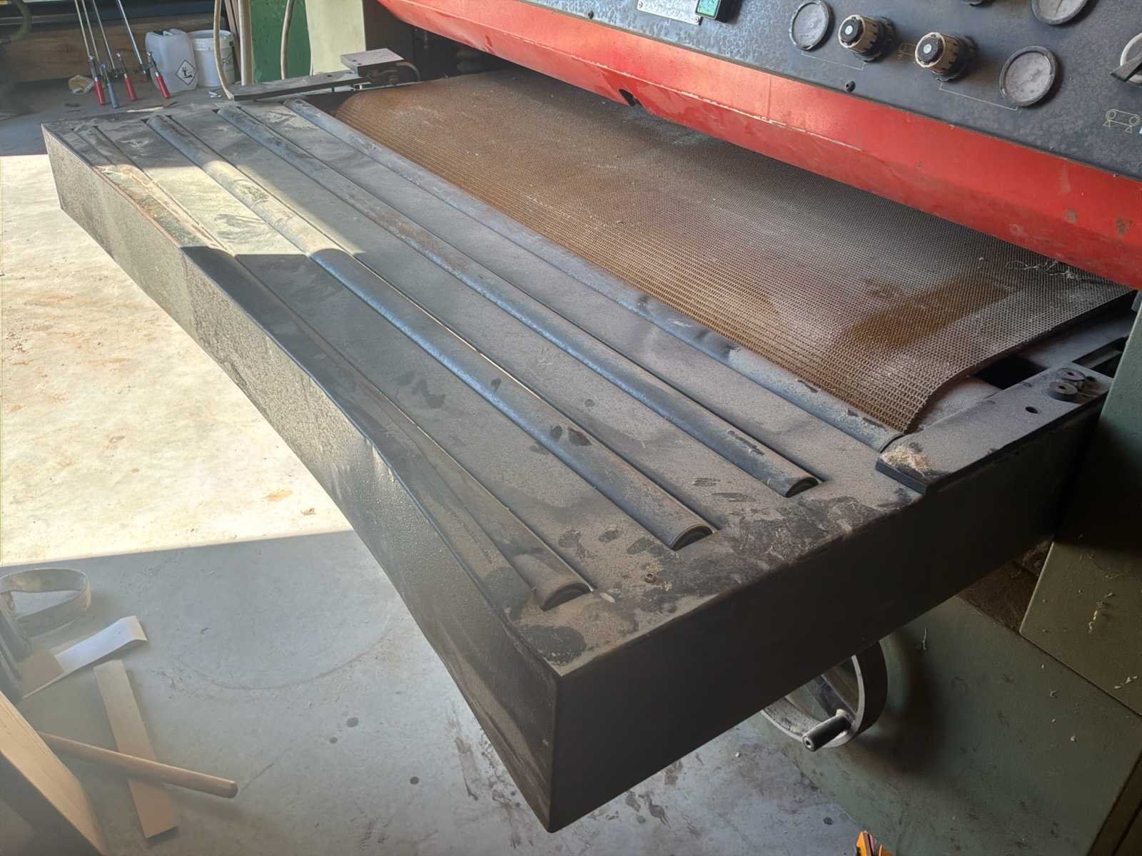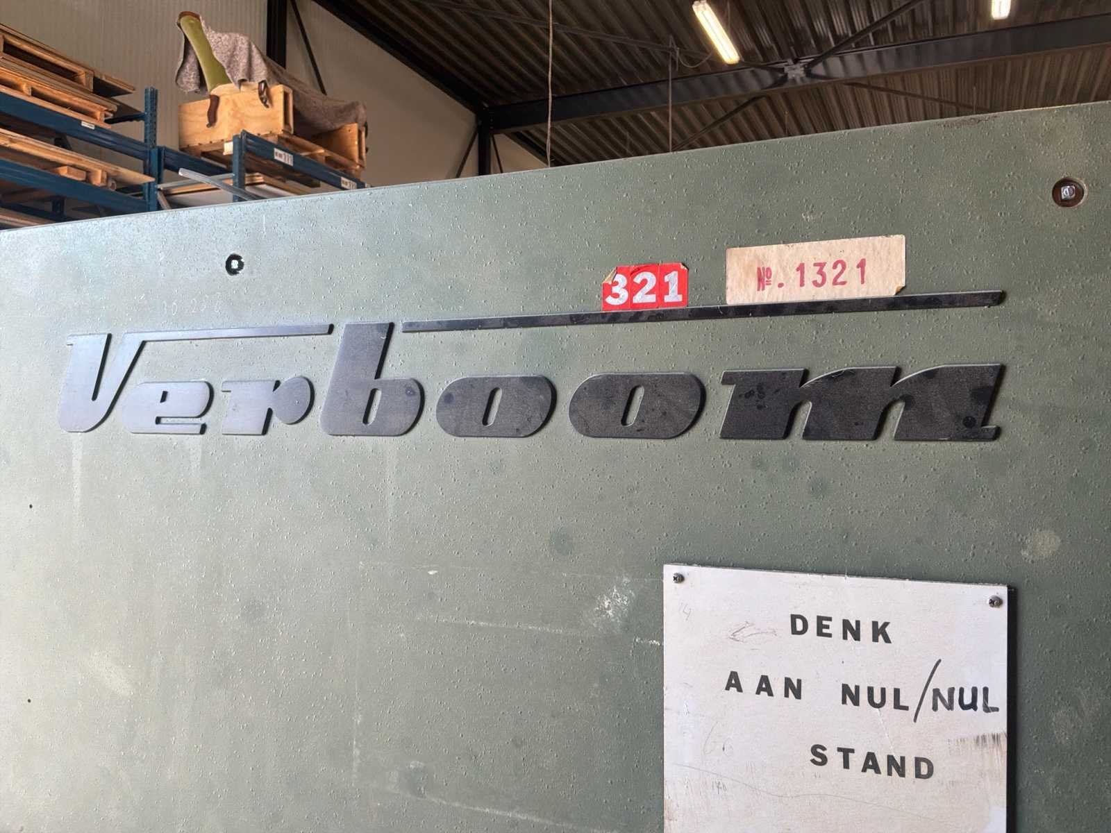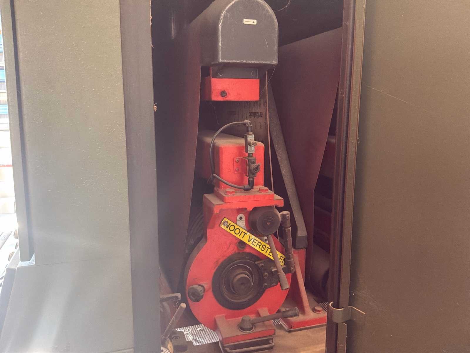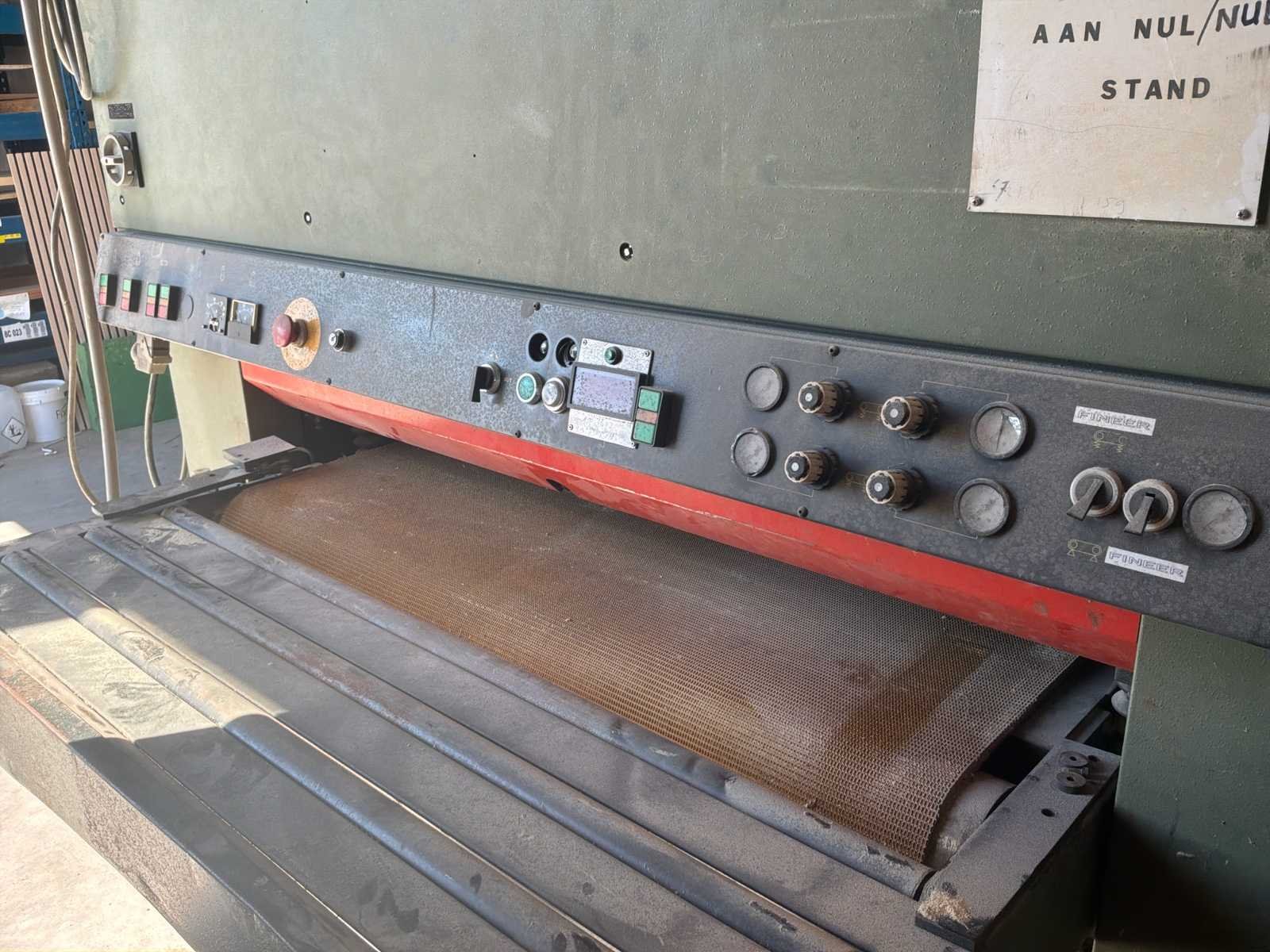 Automatische doorvoer (transportband) * Aggregaten: 1–2 (grof + fijn schuren) * voorzien van voetbediening * in werkende conditie * er is geen heftruck aanwezig voor hulp bij laden Nee Merk: Verboom Type: BBV-1300/2 Bouwjaar: 1984 Serienummer: 3360-107 Werkbreedte: 1300mm Schuurhoogte max.: 150mm Aansluiting: 380V Machinegewicht: 3600kg Afmeting l: 1950mm Afmeting b: 2350mm Afmeting h: 1900mm Leveringsvoorwaarden: Niet gefundeerd - onverpakt