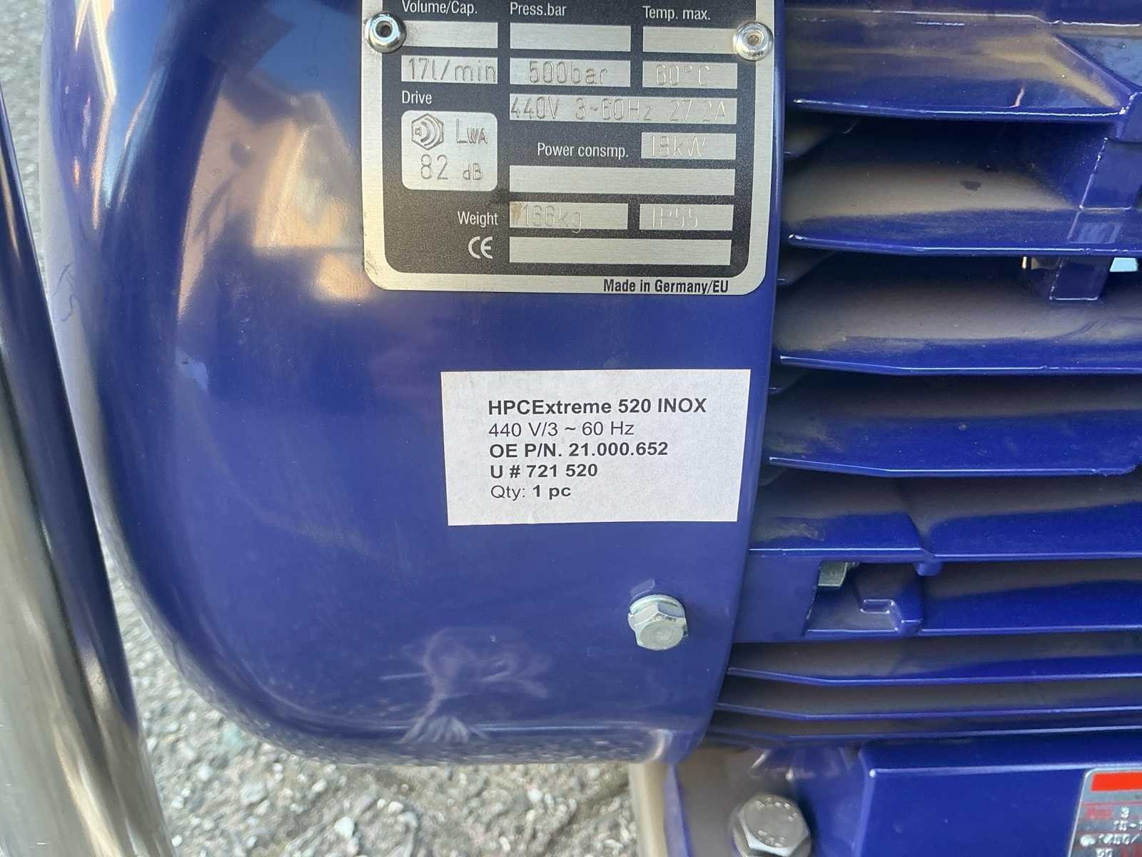 Voorzien van 25M extreme high pressure hose Nee Merk: VAITOR Type: HPC Extreme 520 Bouwjaar: 2017 Serienummer: 0054512003 Maximale werkdruk: 525bar Vermogen: 18kW Aansluiting: 440V Eigen gewicht: 166kg