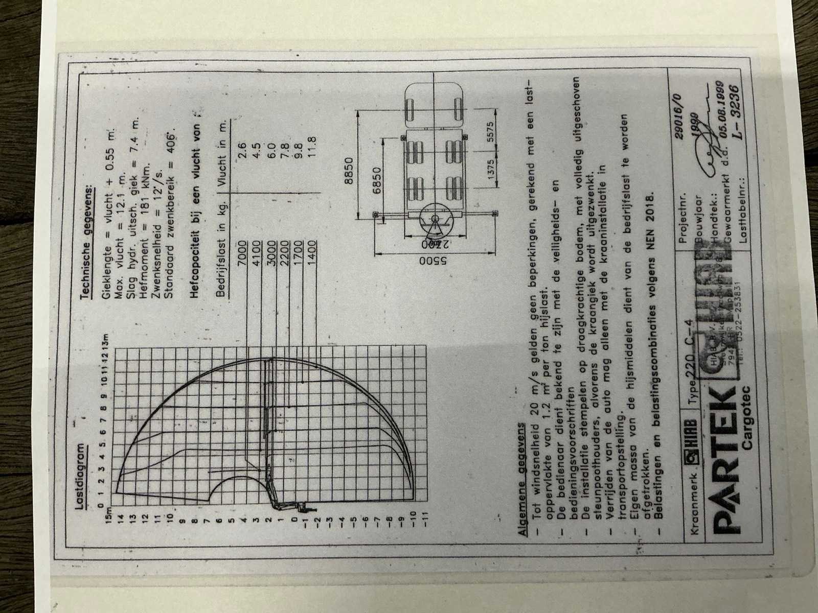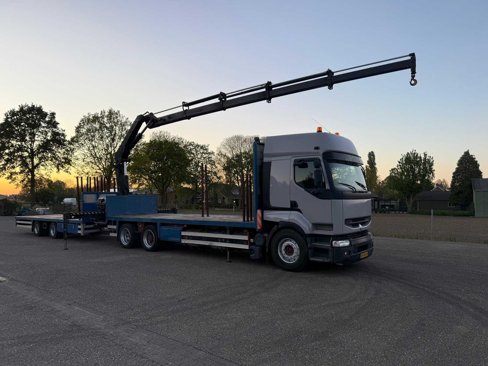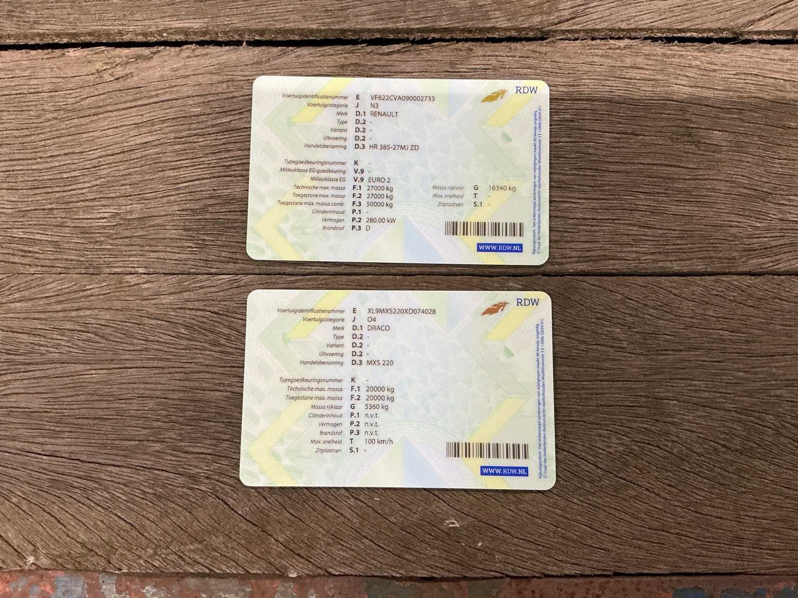 Voorzien van: HIAB 22 Tons Laadkraan (type: 220 C-4, afstandsbediening aanwezig, bouwjaar: 1999), werkverlichting op bak, Nieuwe APK, 4x hydraulische steunpoot, recent onderhoud gehad zie factuur, twistlocks, aanhangwagen koppeling, slaapcabine + standkachel, breedte borden aanwezig, handgeschakelde versnellingsbak, rongen gaten 9 rijen, bandenmaat: (385/65R22.5 voor, 295/60R22.5 achter), liftas, bakhoogte: 105cm, baklengte: 720cm, NL kenteken, (Aanhangwagen 2-Asser Draco MXS 220 is voorzien van: BPW-assen, 14 rijen met 14 rongen, twistlocks, breedte borden aanwezig, 2x Opbergkisten, bandenmaat: 245/70R-17.5, baklengte: 720cm, laadvloer hoogte: 80cm), kopschot hoogte bakwagen: 80cm achter en 215cm voor Nee Kenteken: BH-RR-26 Merk: Renault Type: HR 385-27MJ ZD Bouwjaar: 1999 Chassisnummer VIN: VF622CVA090002733 Kilometerstand bij opname: 820248km APK vervaldatum: 2025-08-22 Datum eerste toelating: 1999-10-18 Datum eerste toelating (NL): 1999-10-18 Aantal assen: 3 Asconfiguratie: 6x2 Fuel Type: Diesel Laadvermogen: 10760kg Emissieklasse: 2 Slaapcabine: true Laadkraan: true Eigen gewicht: 21700kg Totale afmeting L: 18600mm Totale afmeting Breedte: 2500mm Startinformatie: Start en rijdt Afgelezen kilometerstand: 820248km Nationaliteit documenten: NL Kentekenpapieren compleet?: true Aantal zitplaatsen: 2 Handgeschakelde versnellingsbak: true Diesel: true