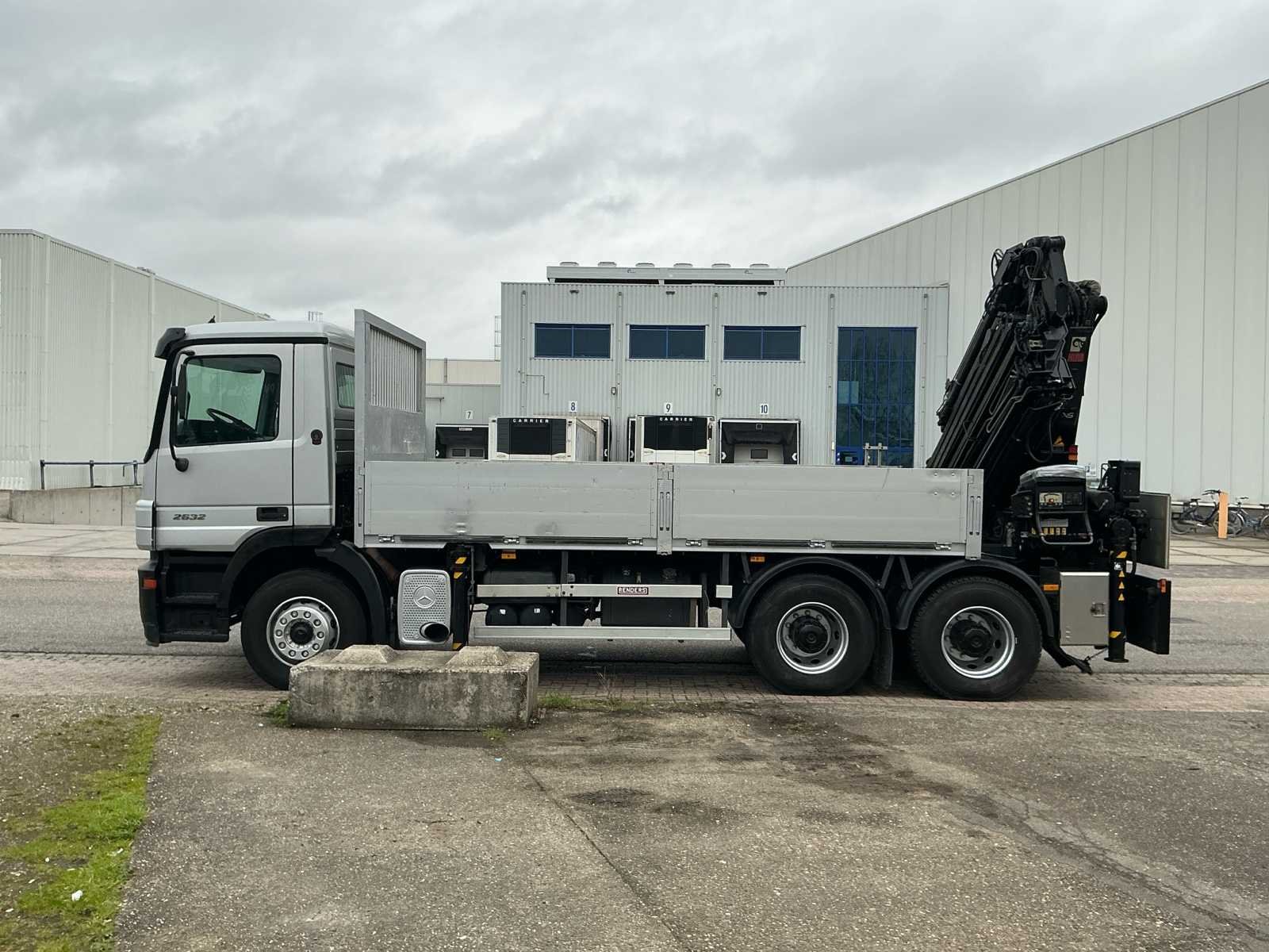 Voorzien van 'Hiab' type 288 HiPro laadkraan met 'Hymatic lier', radiografische afstandsbediening, hydraulische stempels, neerklapbare schotten, aanrijbeveiliging, tachograaf, bladvering, automatische transmissie, 6x4, Let op! Belgische registratiedocumenten & EPS met koppeling No Kenteken: 2-CTQ-755 Merk: Mercedes Type: Actros 2632 Bouwjaar: 2004 Chassisnummer VIN: WDB9301421K939141 Kilometerstand bij opname: 125930km Datum eerste toelating: 03-09-2004 Type transmissie: Handmatig Aantal assen: 3 Asconfiguratie: 6x4 Fuel Type: Diesel Laadvermogen: 8935kg Aantal sleutels: 2 Emissieklasse: Euro 3 Laadkraan: true Eigen gewicht: 16990kg Startinformatie: Start en rijdt Afgelezen kilometerstand: 125930km Kentekenpapieren compleet?: true Aantal zitplaatsen: 2 Zelf rijdend exporteren: Mogelijk Automaat: true
