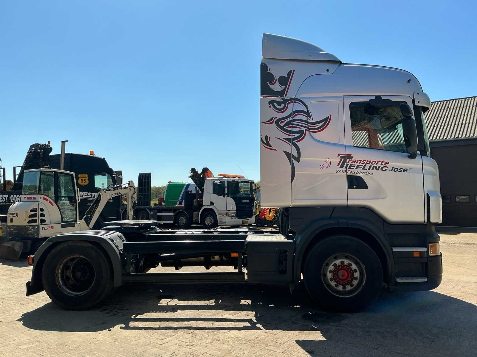 Voorzien van: vollucht geveerd, standkachel, retarder, PTO voorbereid, optiecruise, luchtgeveerde stoel, climate control, cruise control Nee Merk: Scania Type: R500 Bouwjaar: 2005 Chassisnummer VIN: VLUR4X20049095654 Kilometerstand bij opname: 1457345km Type transmissie: Automatisch Aantal assen: 2 Asconfiguratie: 4x2 Fuel Type: Diesel Laadvermogen: 20500kg Slaapcabine: true Startinformatie: Start en rijdt Afgelezen kilometerstand: 1457345km Nationaliteit documenten: Oostenrijk Kentekenpapieren compleet?: true Aantal zitplaatsen: 2 Automaat: true Diesel: true