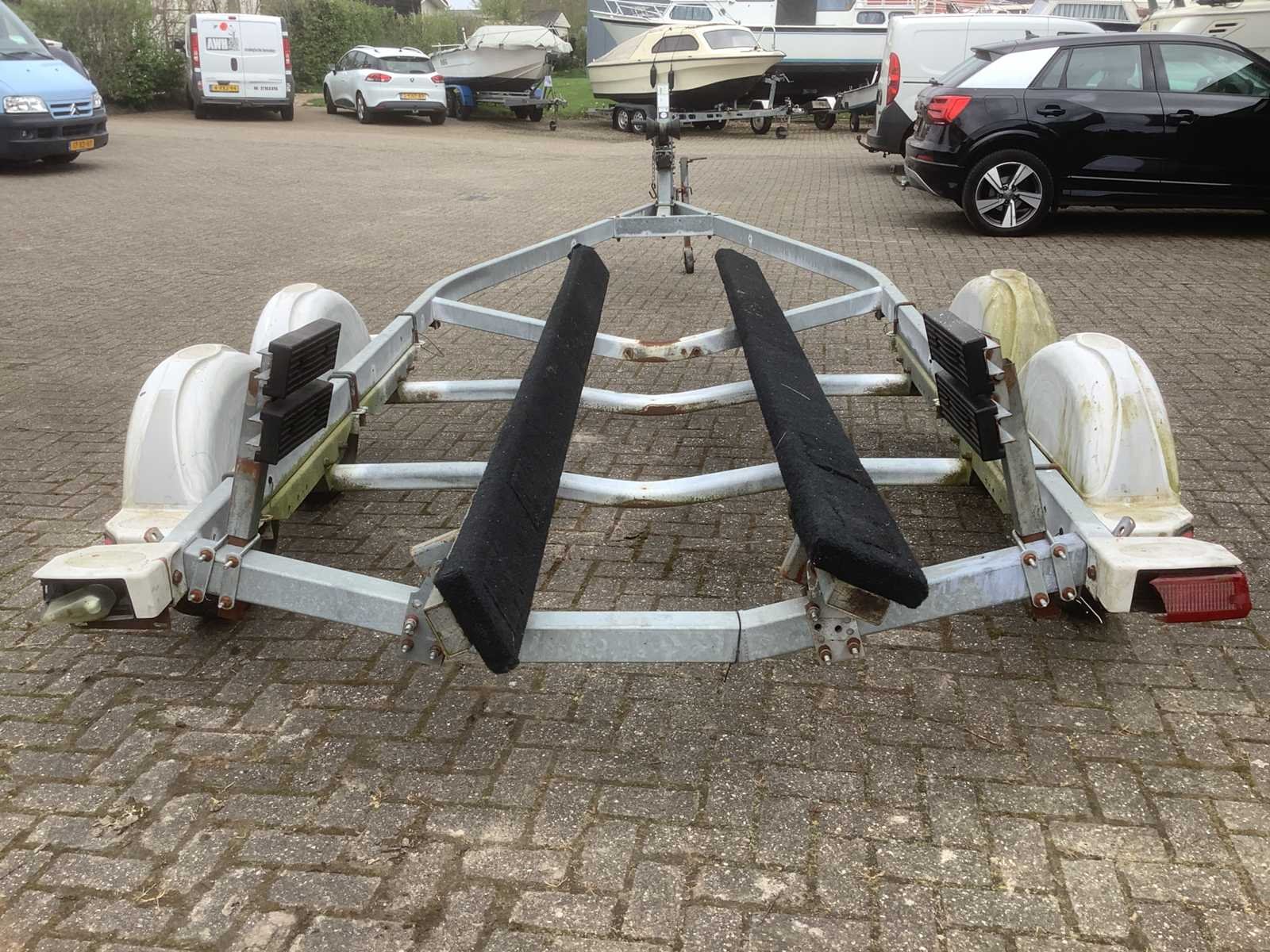 Stevige trailer voor boten tot 8 meter Nee Merk: EZ Loader Model: U trailer Lengte: 750cm Breedte: 245cm Hoogte: 60cm Materiaal: ijzer