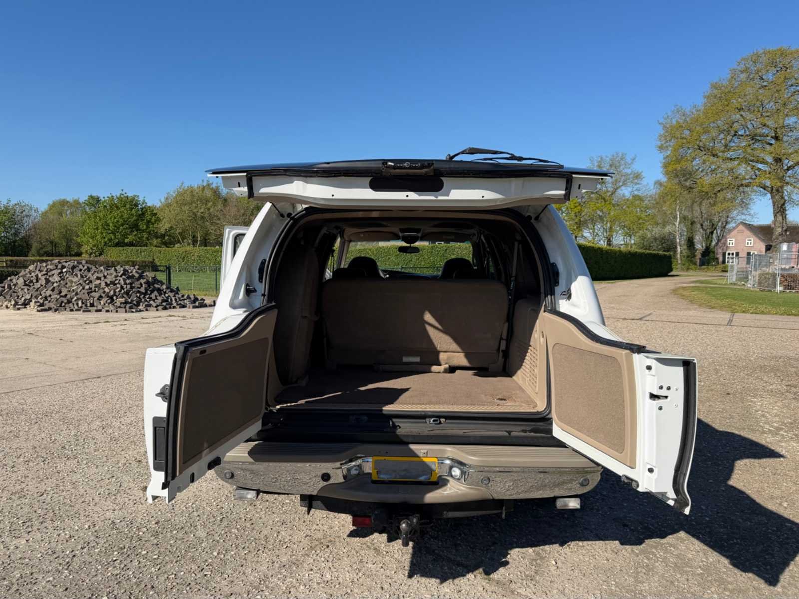 Nee Kenteken: Duitse brief Merk: Ford Type: Excursion Limited Bouwjaar: 2000 Chassisnummer: 1FMNU42F6YED84475 Cilinderinhoud: 7300cc Brandstof: diesel Afgelezen mijlenstand: 283592mi Aandrijving: achter Transmissie: automaat Drive type: Achterwiel Aantal zitplaatsen: 7 Kleur: wit Stuurwiel: links Aantal deuren: 6 Aantal cilinders: 8 Kentekenpapieren compleet?: true Maximaal trekgewicht ongeremd: 3500