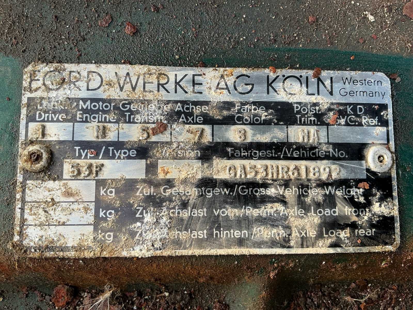 Project auto voorzien van V6 motor en Nederlands kenteken; Compleet voertuig met harde body; Netjes origineel interieur, Handgeschakelde 4 versnelling; Motor loopt Nee Kenteken: 13-54-FK Merk: FORD Taunus Model: 2300S Type: 20-TS-P7A Coupé Bouwjaar: 1968 Afgelezen kilometerstand: 15177km Cilinderinhoud: 2300cc Vermogen (kW): 79kW Brandstof: benzine Chassisnummer: GA53HR618925 Laadvermogen: 0kg NAP status: Geen oordeel Datum eerste toelating: 1968-02-13 Datum eerste toelating (NL): 1968-02-13 APK vervaldatum: 2010-06-20 Vermogen (pk): 107hp Aantal zitplaatsen: 5 Kleur: groen Transmissie: Handgeschakeld Emissieklasse: 0 Aantal deuren: 2 Ledig gewicht: 1098kg Velgmaat: 13 Bruto BPM (NL): 0€ Aantal cilinders: 6 Carrosserie: Coupe Nationaliteit documenten: Nederland Carfax Link: https://was.carfax.eu/v0/api/ccdid/5100016408/svc/201/vinreg/1354FK/checksum/eyJhbGciOiJIUzI1NiIsInR5cCI6IkpXVCJ9.eyJleHAiOjE3Nzc5Njg0MzN9.1NxCWkFzOss1u8SOtyq8lUnENWOtjGdXCkObZghQy2k Start en rijdt: Ja startinformatie : Ja Zichtbare schade: Ja No self drive export!: true