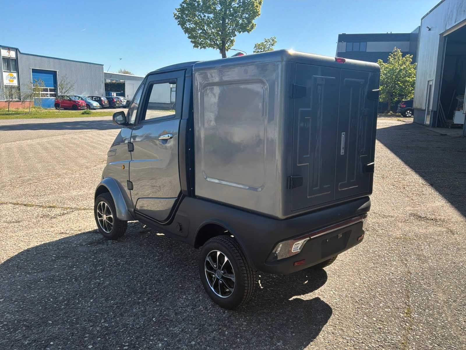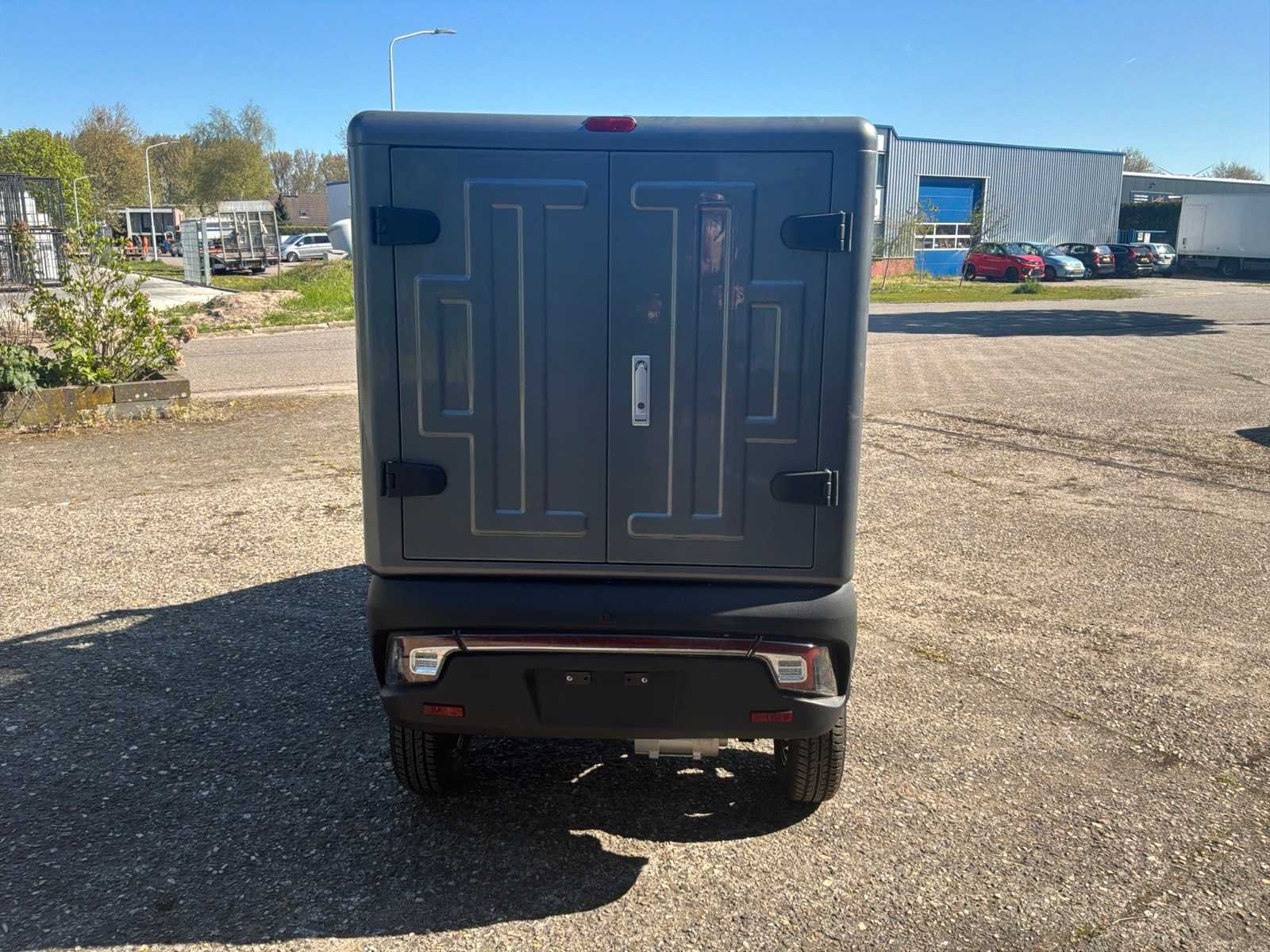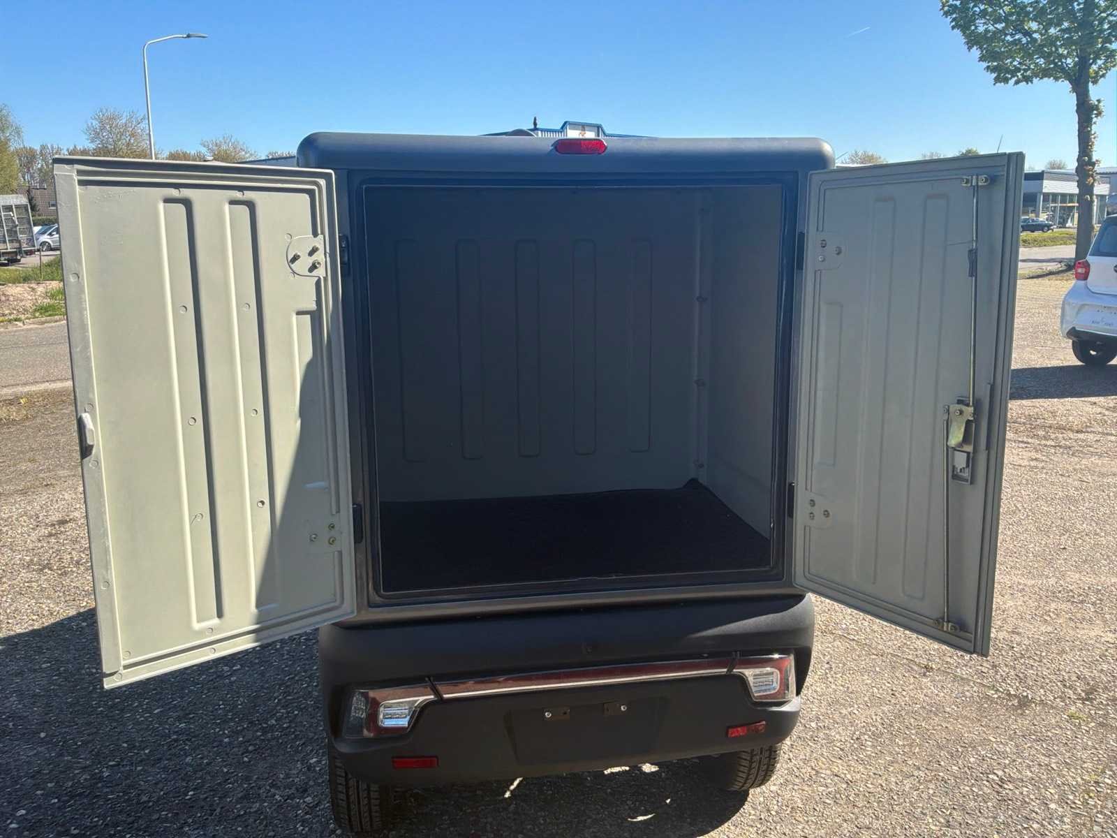 Bereik max 80 km | Oplaadtijd 4 uur (80% na 2 uur) | Maximum snelheid 45 km/u | Elektrische ramen | Centrale deurvergrendeling | Luxe dubbele sleutel met afstandsbediening | LED verlichting | Verwarming en airco | Radio met Bluetooth | Inhoud laadbak ca. 1000 liter | LET OP dit betreft een demo model! No Merk: Pacta Cars Type: Box Bouwjaar: 2022 Chassisnummer: -- Afgelezen kilometerstand: 20km Vermogen (kW): 3kW Brandstof: elektrisch Aandrijving: RWD Oplaadkabel: true Transmissie: Automaat Aantal zitplaatsen: 1 Kleur: Grijs Stuurwiel: Midden Aantal deuren: 2 Aantal sleutels: 2 Ledig gewicht: 420kg Laadvermogen: 200kg Velgmaat: R12 Carrosserie: Gesloten Energielabel: A Emissieklasse: 6 CVO verklaring: true