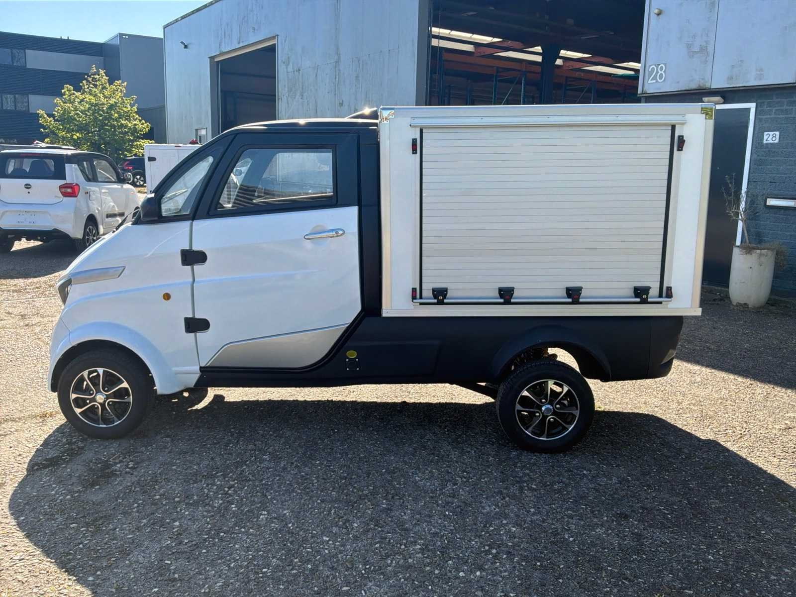 Bereik max 80 km | Oplaadtijd 4 uur (80% na 2 uur) | Maximum snelheid 52 km/u | Elektrische ramen | Centrale deurvergrendeling | Luxe dubbele sleutel met afstandsbediening | LED verlichting | Verwarming | Radio met Bluetooth | Inhoud laadbak ca. 2000 liter met dubbele rolluik | LET OP dit betreft een demo model! Nee Merk: Pacta Cars Type: Max Bouwjaar: 2022 Chassisnummer: R3W8AZKU2MA000045 Afgelezen kilometerstand: 31km Vermogen (kW): 4kW Brandstof: elektrisch Aandrijving: RWD Oplaadkabel: true Transmissie: Automaat Aantal zitplaatsen: 1 Kleur: Wit Stuurwiel: Midden Aantal deuren: 2 Aantal sleutels: 2 Ledig gewicht: 500kg Laadvermogen: 500kg Velgmaat: R12 Carrosserie: Gesloten Energielabel: A Emissieklasse: 6 CVO verklaring: true