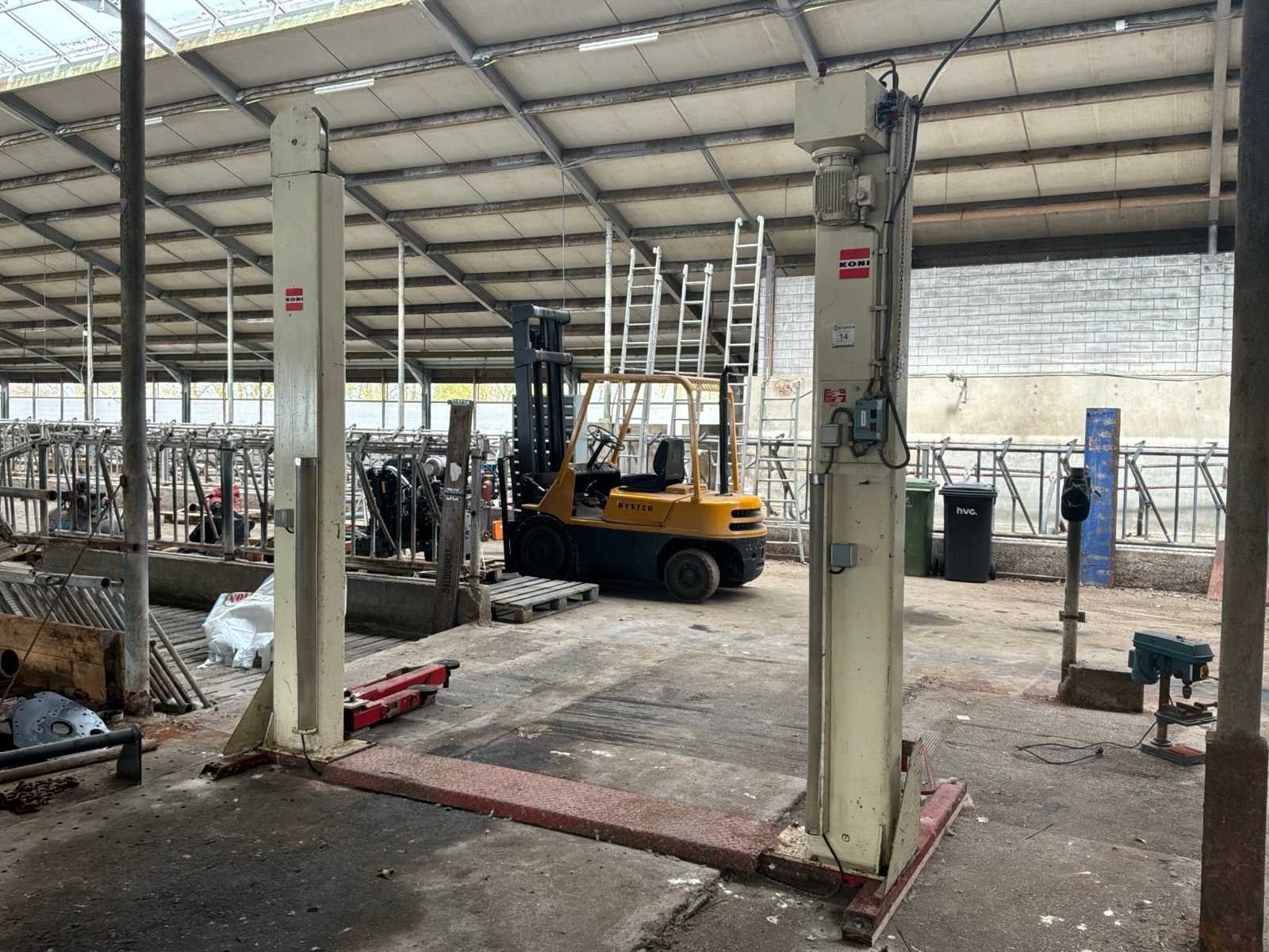 U bent zelf verantwoordelijk voor het demonteren van deze kavel. Er zijn geen hulpmiddelen beschikbaar. Nee Merk: Koni Hefhoogte: 195cm Type: 3572 Bouwjaar: 1983 2-koloms: true Capaciteit.: 2200kg Baanbreedte: 2300mm Vermogen: 2kW Aansluiting: 380V Totale afmeting Breedte: 3030mm Totale afmeting Hoogte: 2970mm Leveringsvoorwaarden: Geladen op vrachtwagen