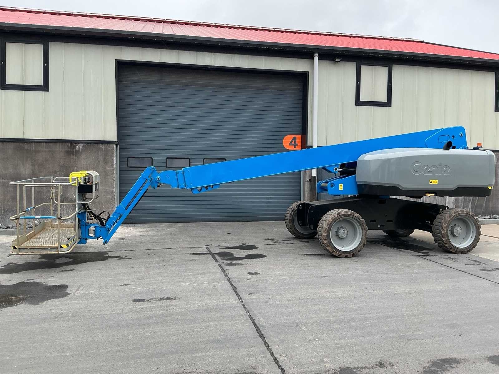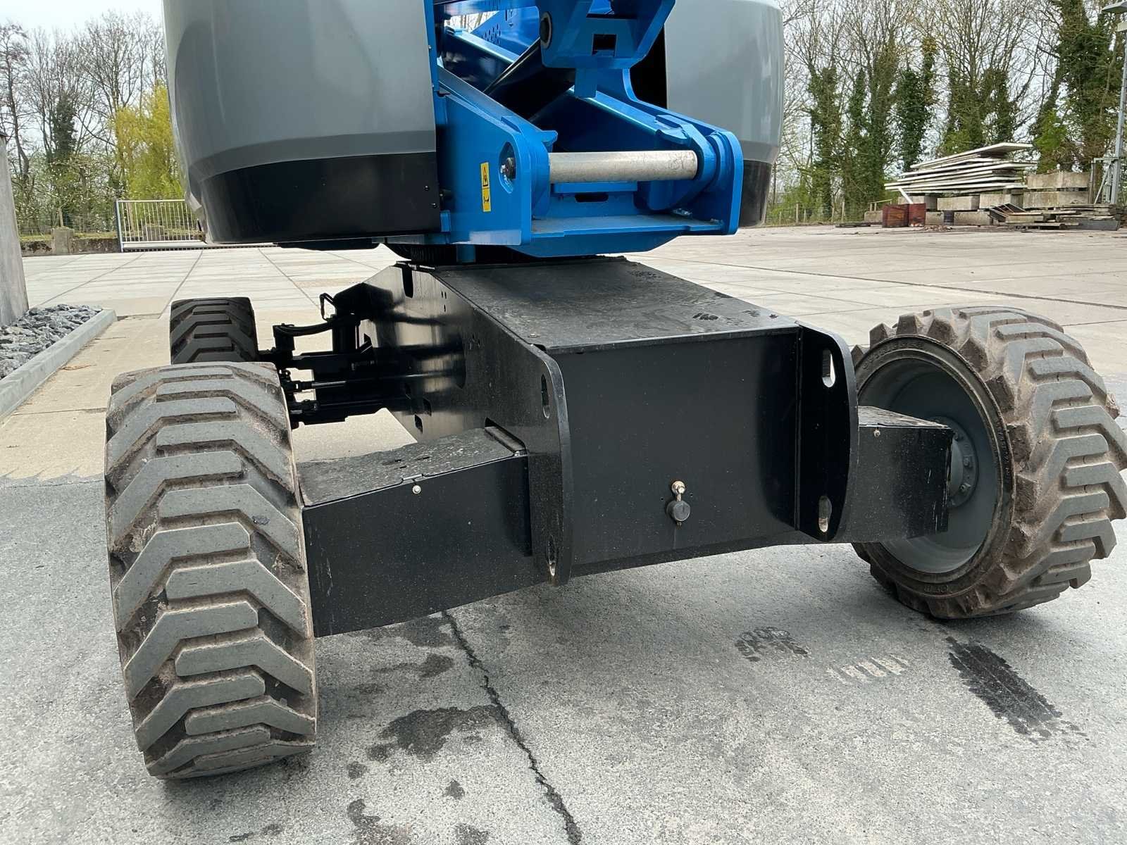 Voorzien van: 36kw dieselmotor 4WD Vol rubber banden Werkbak (blauw) met besturing Hoogwerker wordt afgeleverd met gemonteerde originele blauwe werkbak zoals te zien op laatste foto’s. Dus niet inclusief afgebeelde grijze werkbak. Nee Merk: Genie Type: S65 Bouwjaar: 2017 Serienummer: S60M-605 Diesel: true Motorvermogen (kW): 36kW Telescoop hoogwerker: true Werkhoogte: 22000mm Horizontale rijkwijdte: 17100mm Plateau afm. l: 2440mm Plateau afm. b: 910mm Platform capaciteit: 227kg Afgelezen urenstand: 3306 Eigen gewicht: 10102kg Totale afmeting L: 9500mm Totale afmeting Breedte: 2490mm Totale afmeting Hoogte: 2500mm
