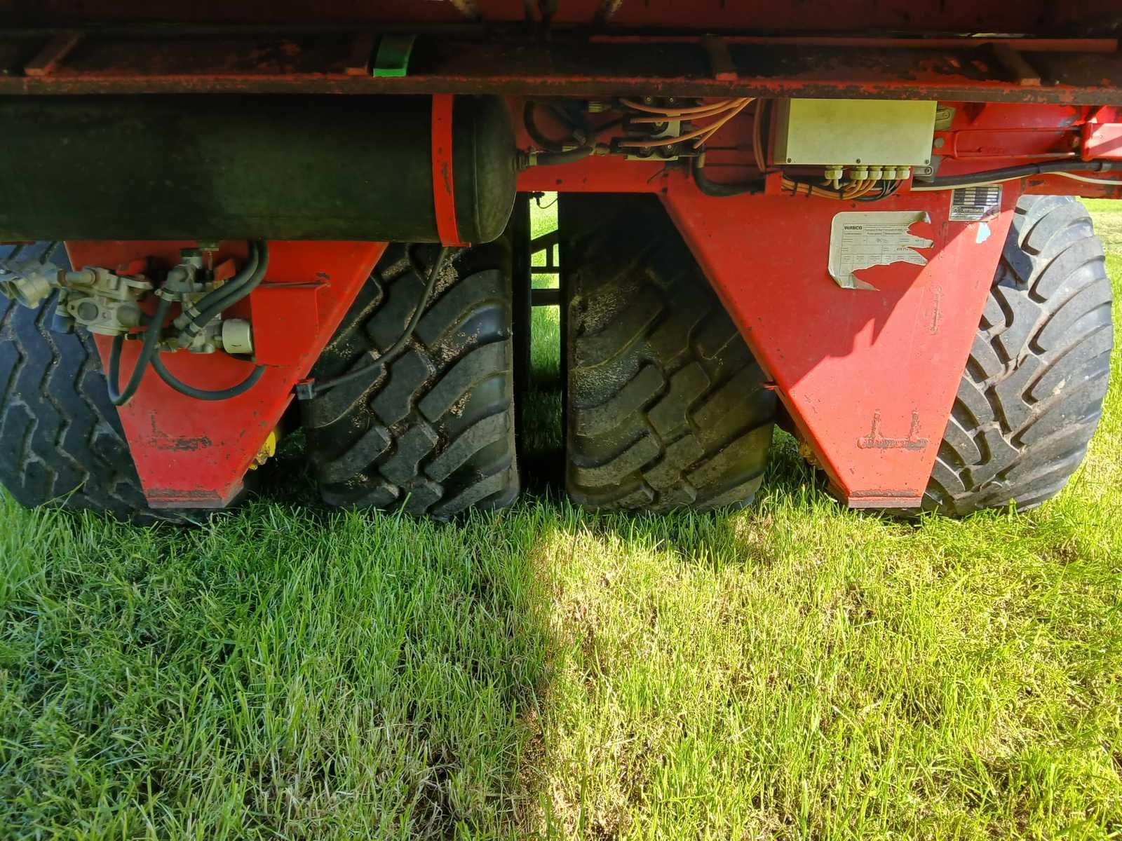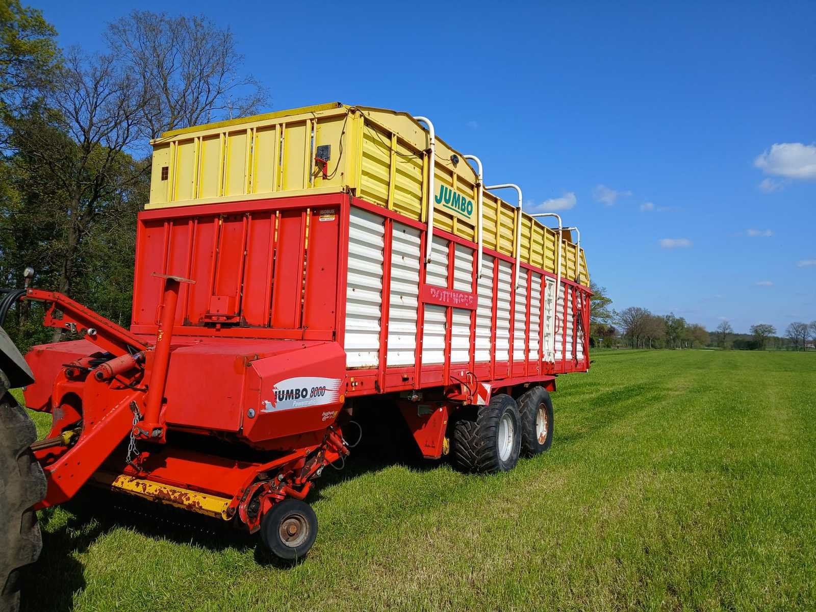 Pöttinger Jumbo 8000 opraapwagen met 8-wielig onderstel en Isobus <strong>Specificaties:</strong> Merk: Pöttinger Model: Jumbo 8000 Bouwjaar: 2006 Kenteken: LFJ-28D Chassisnummer: 05516101159 Inhoud: ca. 46,5 m³ Pickupbreedte: ca. 2,0 meter Lengte: ca. 1135 cm Breedte: ca. 285 cm Hoogte: ca. 385 cm Onderstel: 8-wielig Kurmann, 18 tons, lucht geremd Banden: 8x 560/45 R22.5 Aanspanning: K80 trekoog Aandrijving: aftakas (groothoek) <strong>Voorzien van:</strong> Hydraulische bodemketting met 2 snelheden Hydraulisch wegklapbare messenbalk (max. 45 messen) Hydraulisch geveerd onderstel Meelopend gestuurd onderstel Isobus bediening Losse bedieningskast <strong>Bijzonderheden:</strong> Geschikt voor intensief loonwerk en agrarisch gebruik Grote laadcapaciteit Nee Merk: Pöttinger Type: Jumbo 8000 Bouwjaar: 2006 Serienummer: 05516101159 Kenteken: LFJ-28-D Opslagcapaciteit: 46.5 Bandenmaat: 560/45R22.5 Maximaal aantal messen: 45 Eigen gewicht: 8300 Totale afmeting L: 1135 Totale afmeting Breedte: 285 Totale afmeting Hoogte: 385