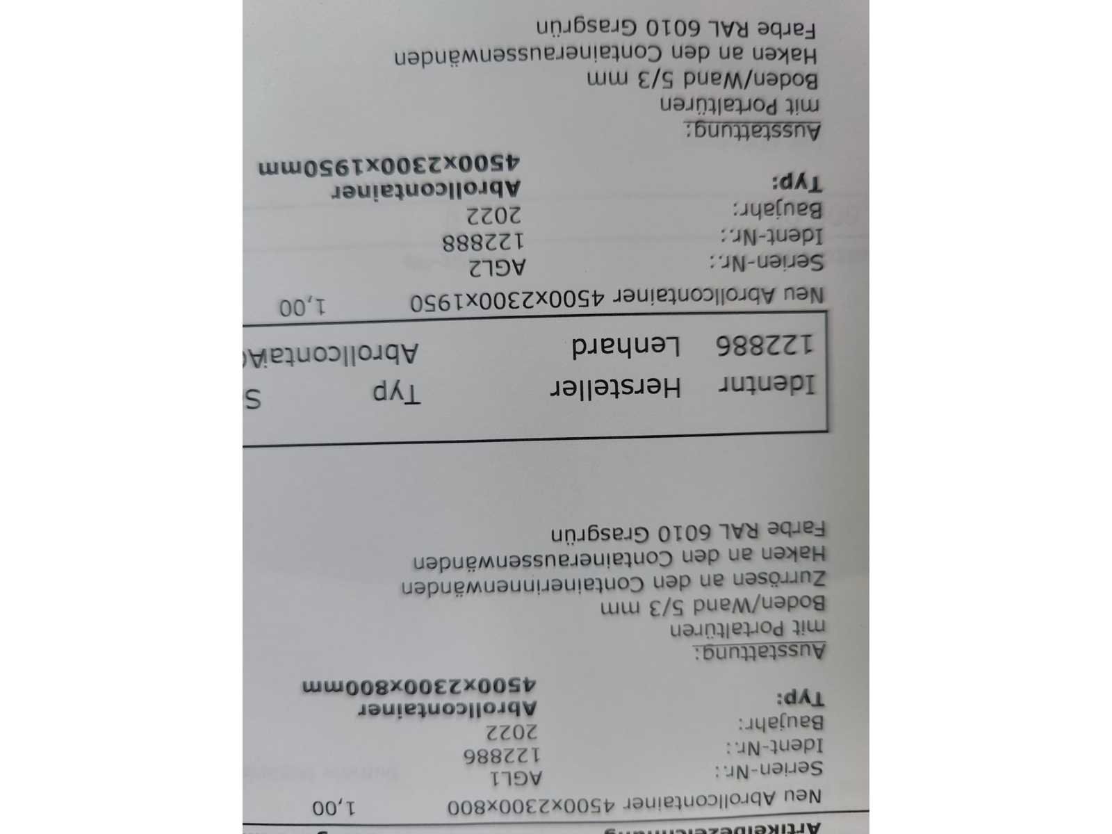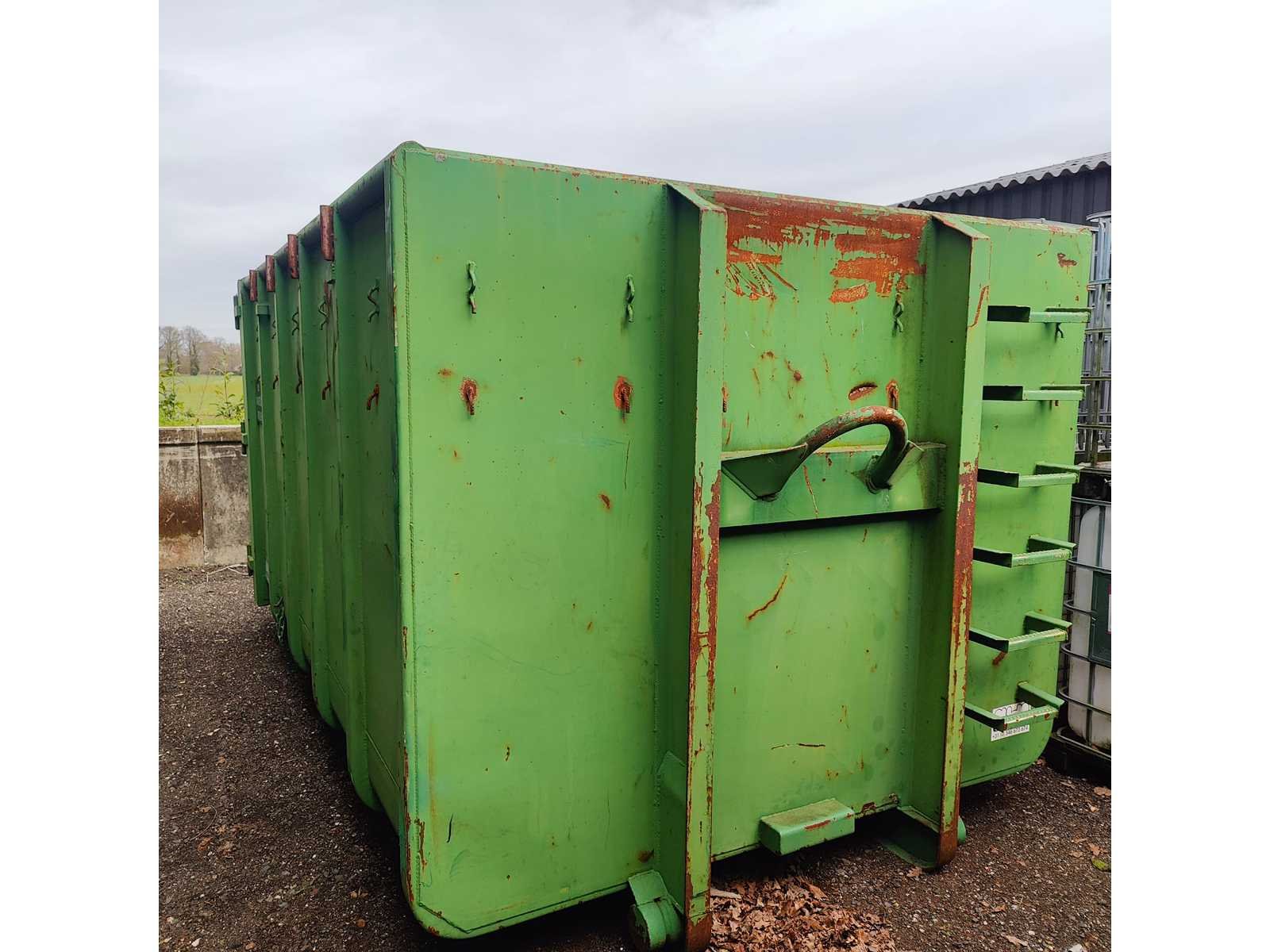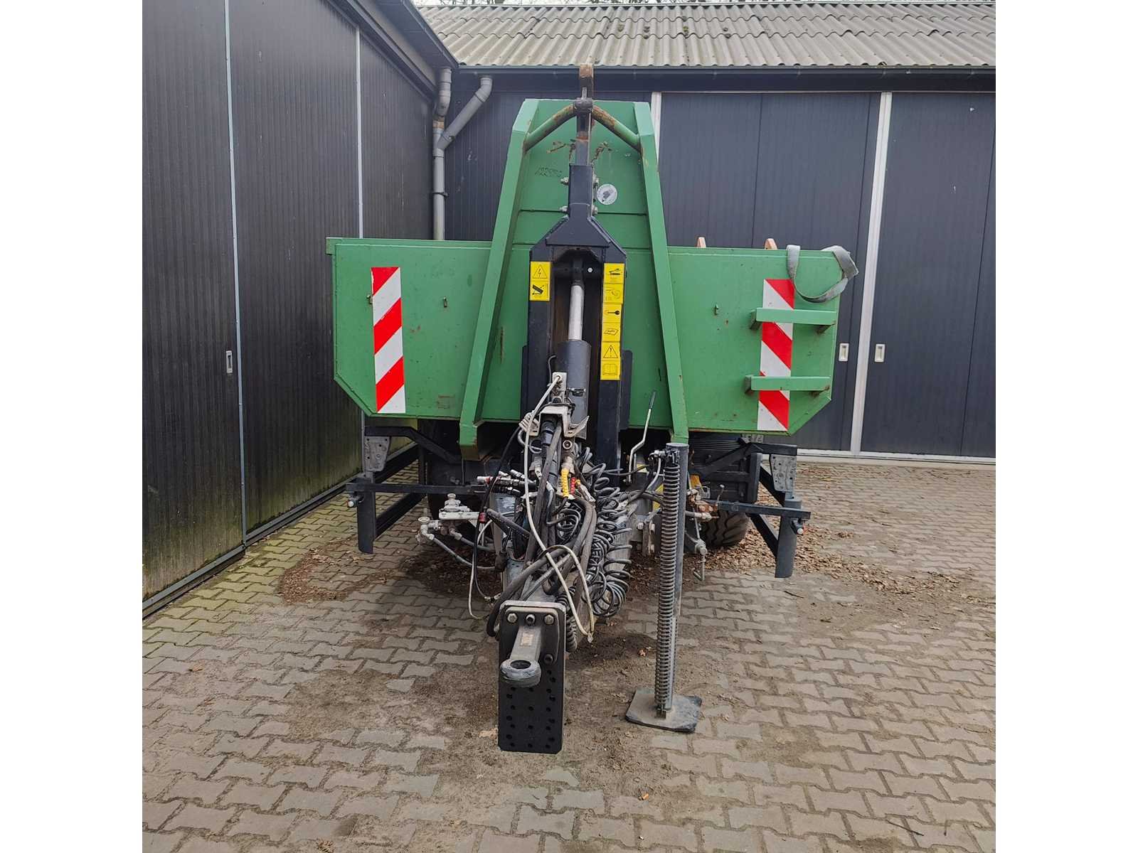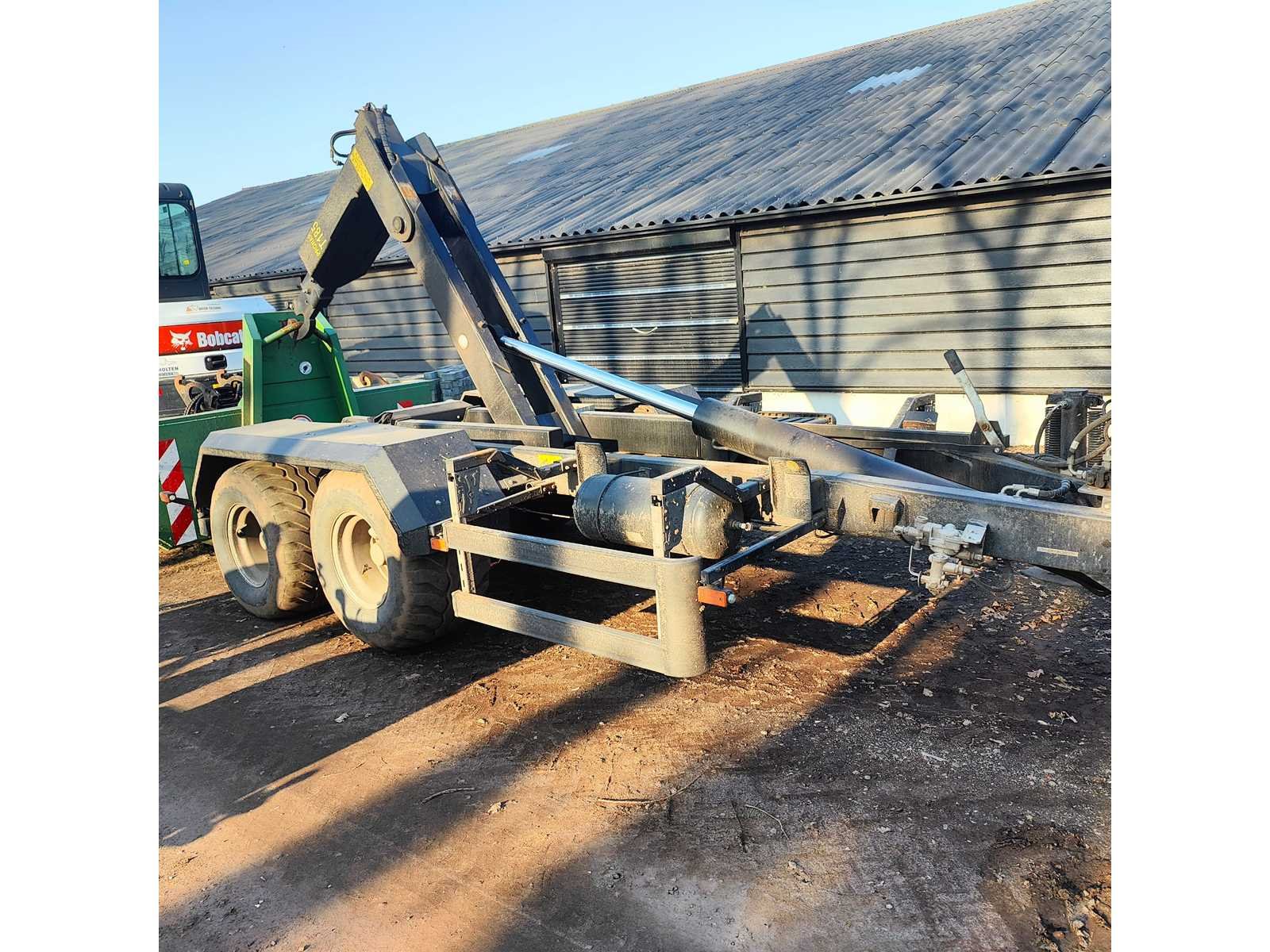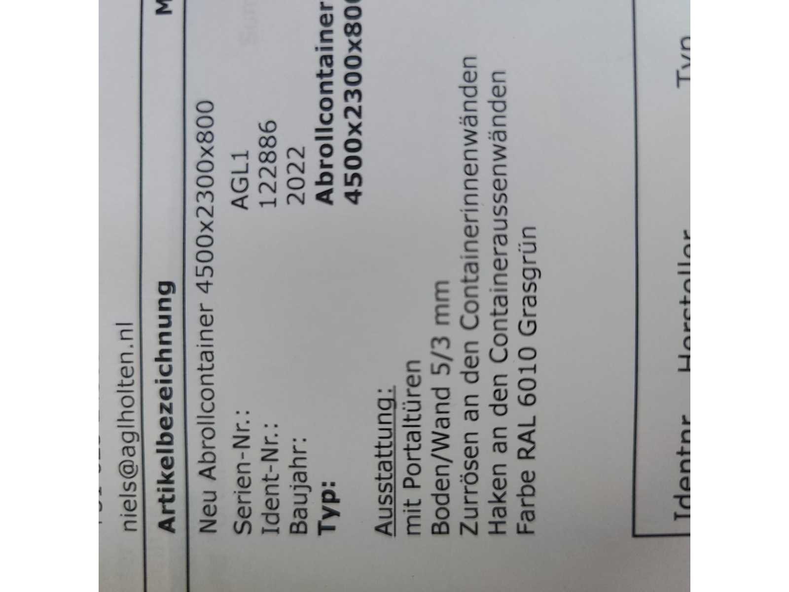 Max totaal gewicht 15.000 kilo. Laad capaciteit 12.200 kilo. 1x container 2022 20m³ , 1x container 2022 8m³ , 1x container 20m³ , 1x container 7m³ deze container is voorzien van een Atlas kraan (gereviseerd in 2025). 40km/u. Voorzien van luchtdrukremmen Nee Merk: Pronar Type: T185 Bouwjaar: 2022 Serienummer: SZB1850XXN3X02004 Eigen gewicht: 2800kg Totale afmeting L: 5950mm Totale afmeting Breedte: 2360mm Totale afmeting Hoogte: 1570mm