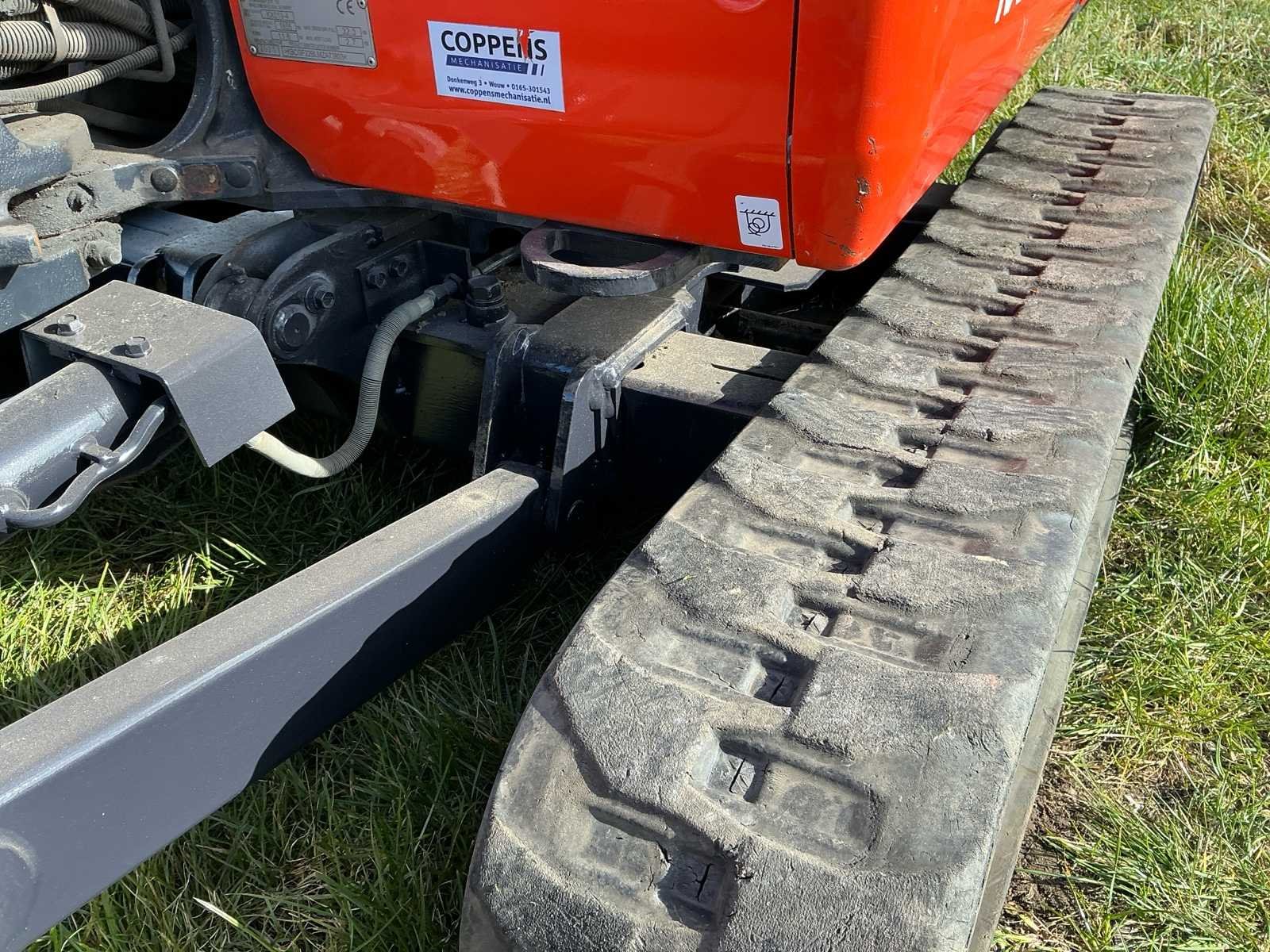 Voorzien van: Graafbak Cabine Led verlichting Cabine CW05 aansluiting Sloop en sorteerfunctie Hydraulische snelwissel Nee Merk: Kubota Type: KX019-4 Bouwjaar: 2021 Merk motor: Kubota Motorvermogen (kW): 12kW Aantal cilinders: 3 Brandstof: Diesel Bedrijfsgewicht: 1855kg Max. werkbereik: 4120mm Max. graafdiepte: 2580mm Graafbak afm. l: 250mm Graafbak afm. b: 1000mm Graafbak afm. h: 400mm Rups breedte: 230mm Afgelezen urenstand: 1708 Eigen gewicht: 1800kg Totale afmeting L: 3860mm Totale afmeting Breedte: 990mm Totale afmeting Hoogte: 2330mm