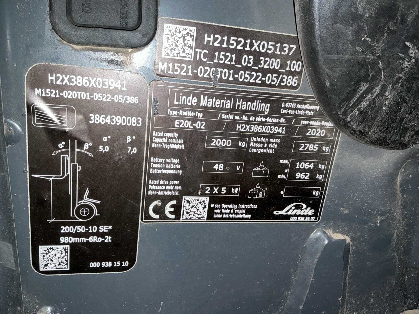 Voorzien van: hefvermogen 2.000 kg (2,0 ton), voeding: 48V elektrisch, twee 11 kW AC-motoren, maximale snelheid: 20 km/u (beladen/onbeladen), gewicht: Ca. 3.400kg, Linde Load Control, dubbele gaspedalen, 48 volt onderhoudsvrij Nee Merk: Linde Type: E20 evo Bouwjaar: 2020 Serienummer: H2X386X03941 Brandstof: Elektrisch Mast: Duplex Soort band: volrubber Aantal wielen: 4 Side-shift: true Hydraulisch verstelbare lepels: true Duplex mast: true Eigen gewicht: 3400kg Hefvermogen: 2000kg Lepellengte: 1200mm Vol rubber banden: true Minimale doorrijhoogte: 2300mm Totale afmeting Breedte: 1150mm