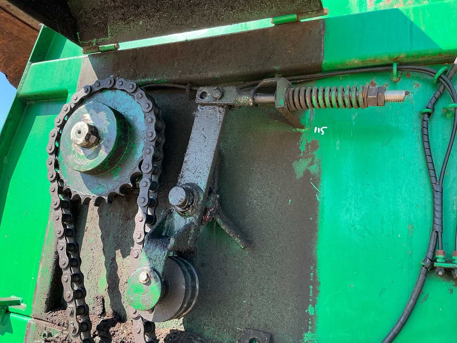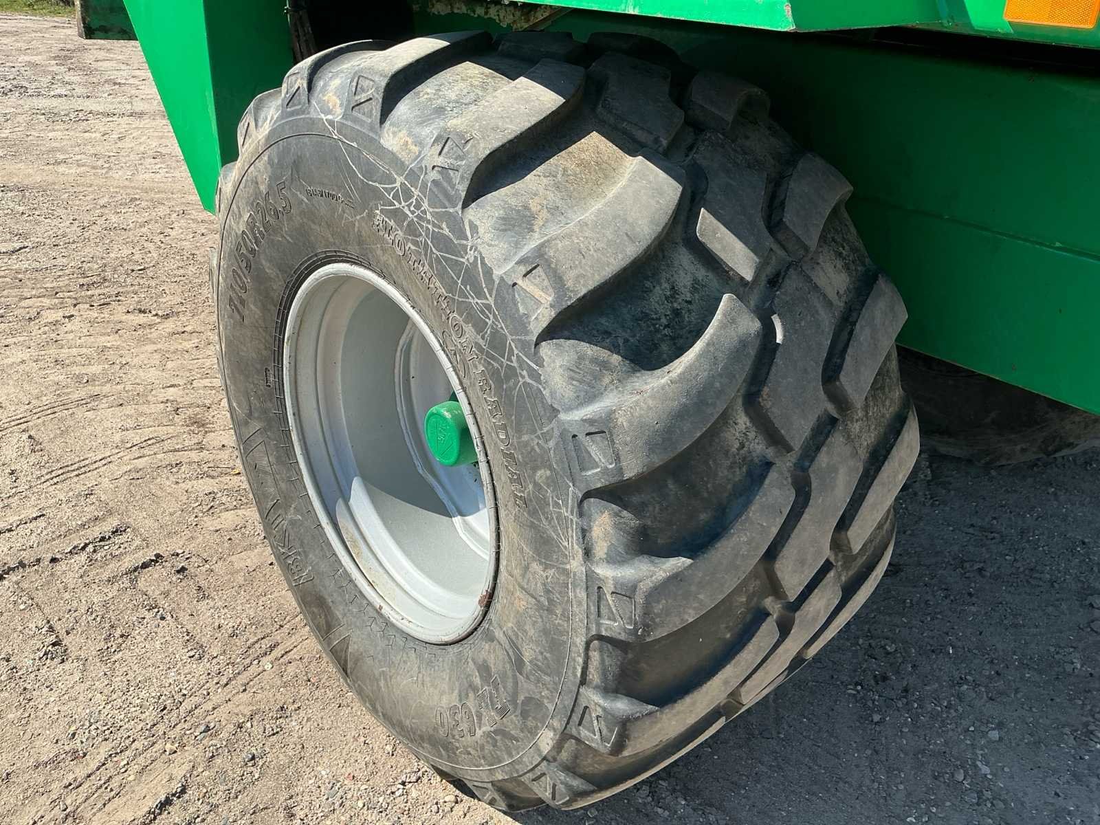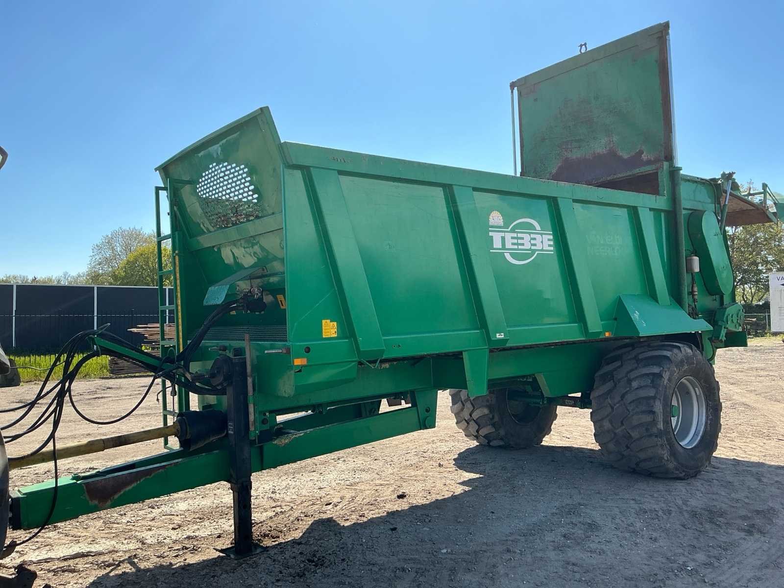 Voorzien van: aftakas, grindstooier links, dosserschuif, grensstrooier links, kunstofplaten in achterklep, HV78.5 bodemketting, verbrede banden, onderaanspan, elektrische bediening bodemketting met toerentalbewaking, hydraulische remmen, automatische oliesmering aandrijfketting walsen, geveerde onderaanspan met K80 trekoog, NL kenteken Nee Merk: Tebbe Type: HS120 Bouwjaar: 2006 Serienummer: 23840 Kenteken: LGB49S Opslag cap.: 20 Bandenmaat: 710/50R26.5 BKT Werkbreedte: 24000mm Eigen gewicht: 12000kg Totale afmeting L: 8200mm Totale afmeting Breedte: 2700mm Totale afmeting Hoogte: 3650mm