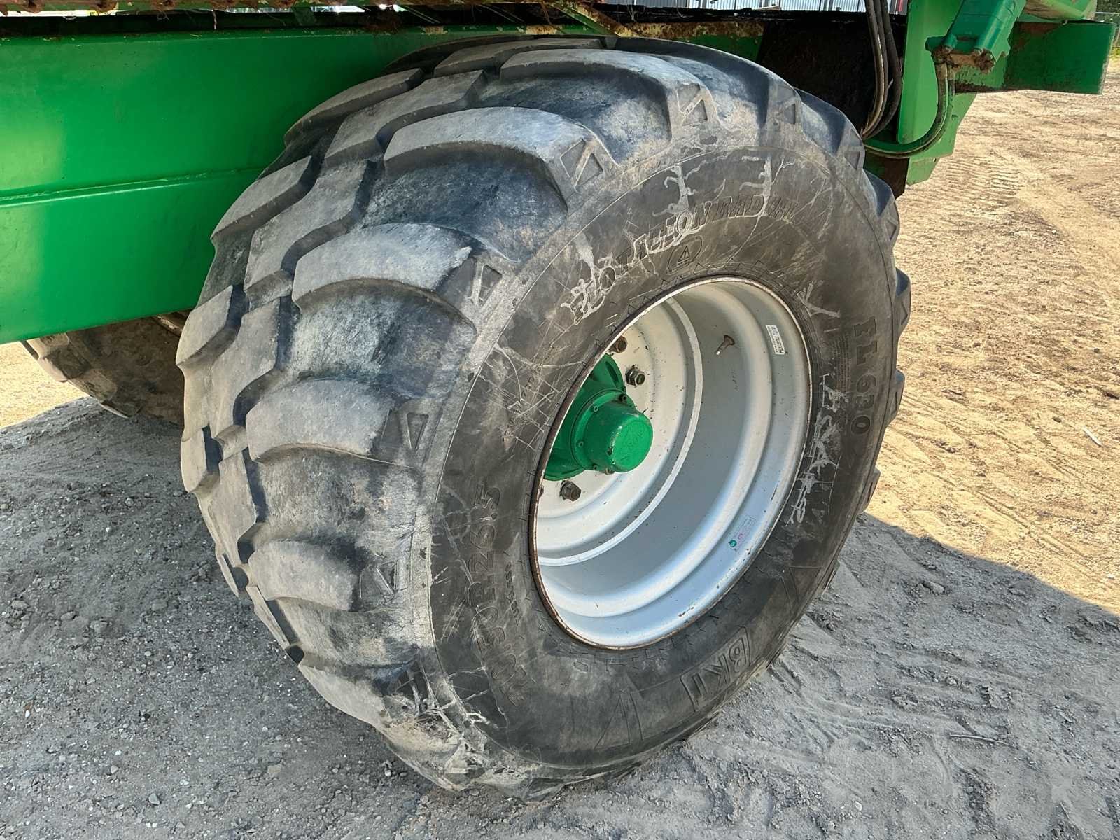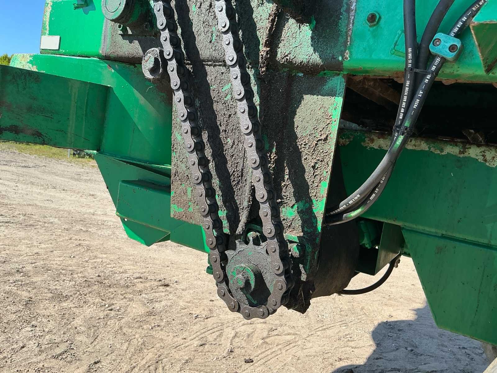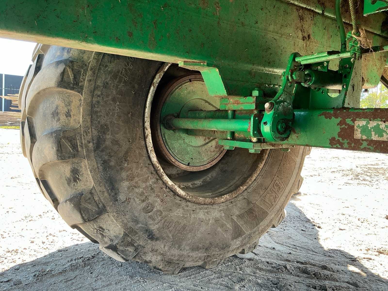 Voorzien van: aftakas, grindstooier links, dosserschuif, grensstrooier links, kunstofplaten in achterklep, HV78.5 bodemketting, verbrede banden, onderaanspan, elektrische bediening bodemketting met toerentalbewaking, hydraulische remmen, automatische oliesmering aandrijfketting walsen, geveerde onderaanspan met K80 trekoog, NL kenteken Nee Merk: Tebbe Type: HS120 Bouwjaar: 2006 Serienummer: 23840 Kenteken: LGB49S Opslag cap.: 20 Bandenmaat: 710/50R26.5 BKT Werkbreedte: 24000mm Eigen gewicht: 12000kg Totale afmeting L: 8200mm Totale afmeting Breedte: 2700mm Totale afmeting Hoogte: 3650mm