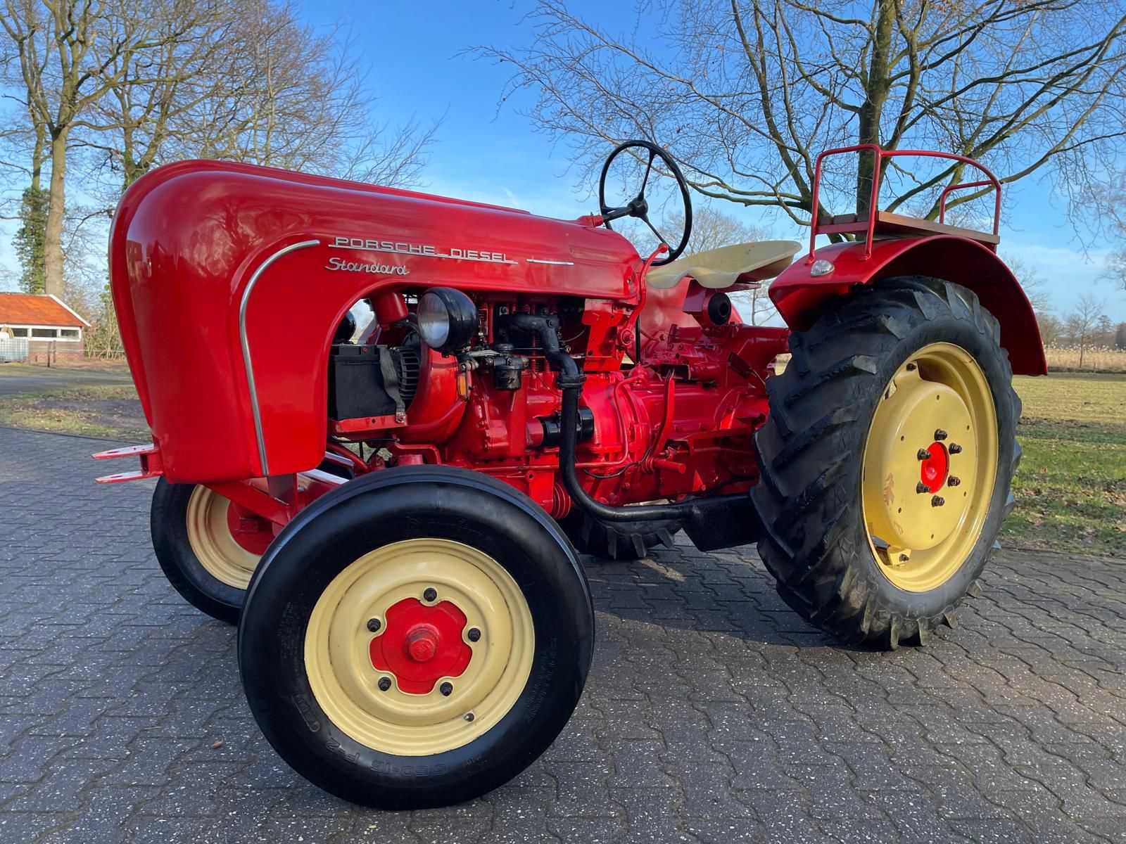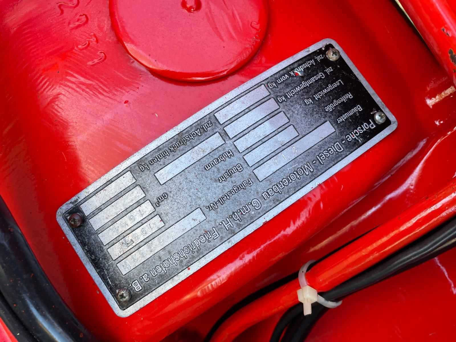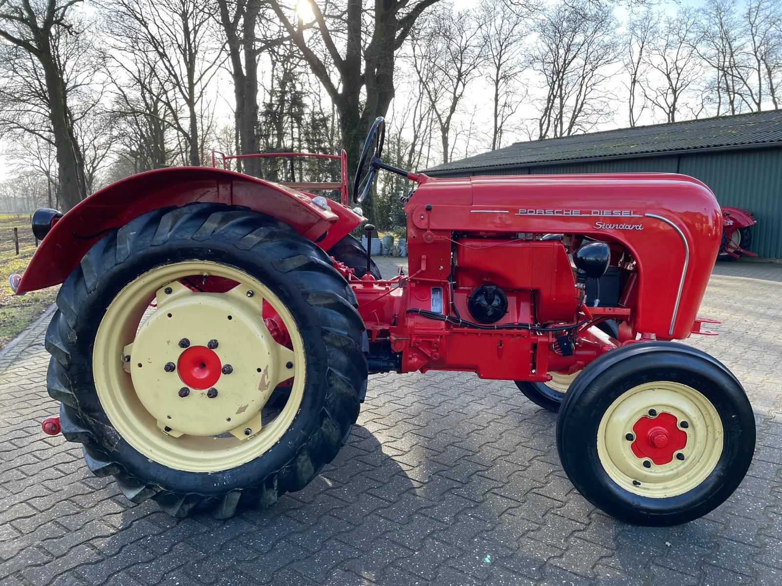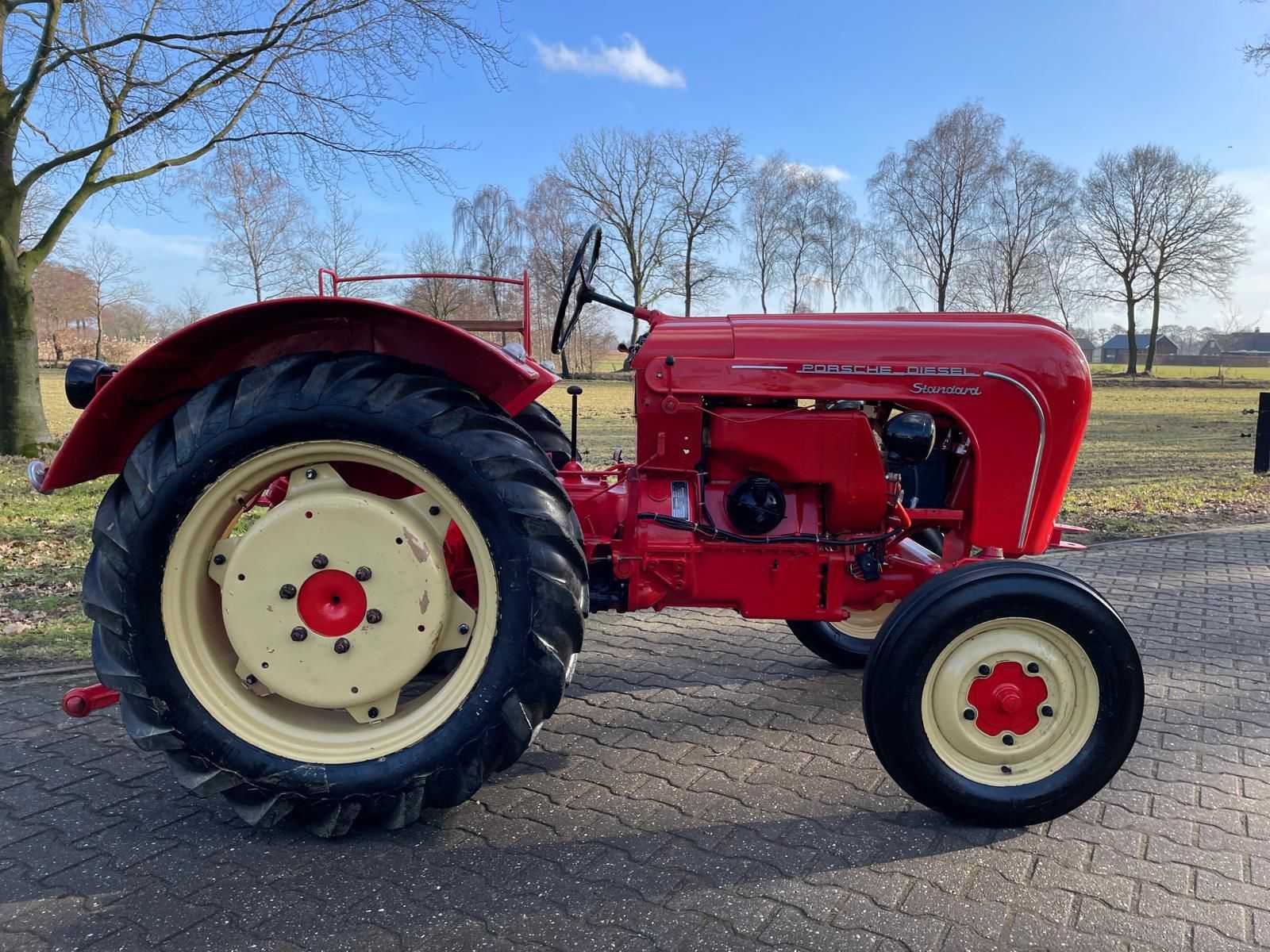Porsche Diesel Standard 218H oldtimer tractor <strong>Specificaties:</strong> Merk: Porsche Diesel Model: Standard 218H Brandstof: diesel Kenteken: aanwezig Motor- en chassisnummer: gelijklopend <strong>Voorzien van:</strong> Technisch gereviseerde motor (2020) Nieuwe pakkingen Nieuwe lagers Nieuwe keringen <strong>Bijzonderheden:</strong> Start, rijdt en remt goed Lakwerk in nette staat Originele uitvoering Nee Merk: Porsche Type: Standard 218H Bouwjaar: 1960 Motorvermogen (kW): 14kW Afgelezen urenstand: 678 Bandenmaat voor: 550-16 Eigen gewicht: 1500kg Totale afmeting L: 3000mm Totale afmeting Breedte: 1800mm Totale afmeting Hoogte: 1900mm