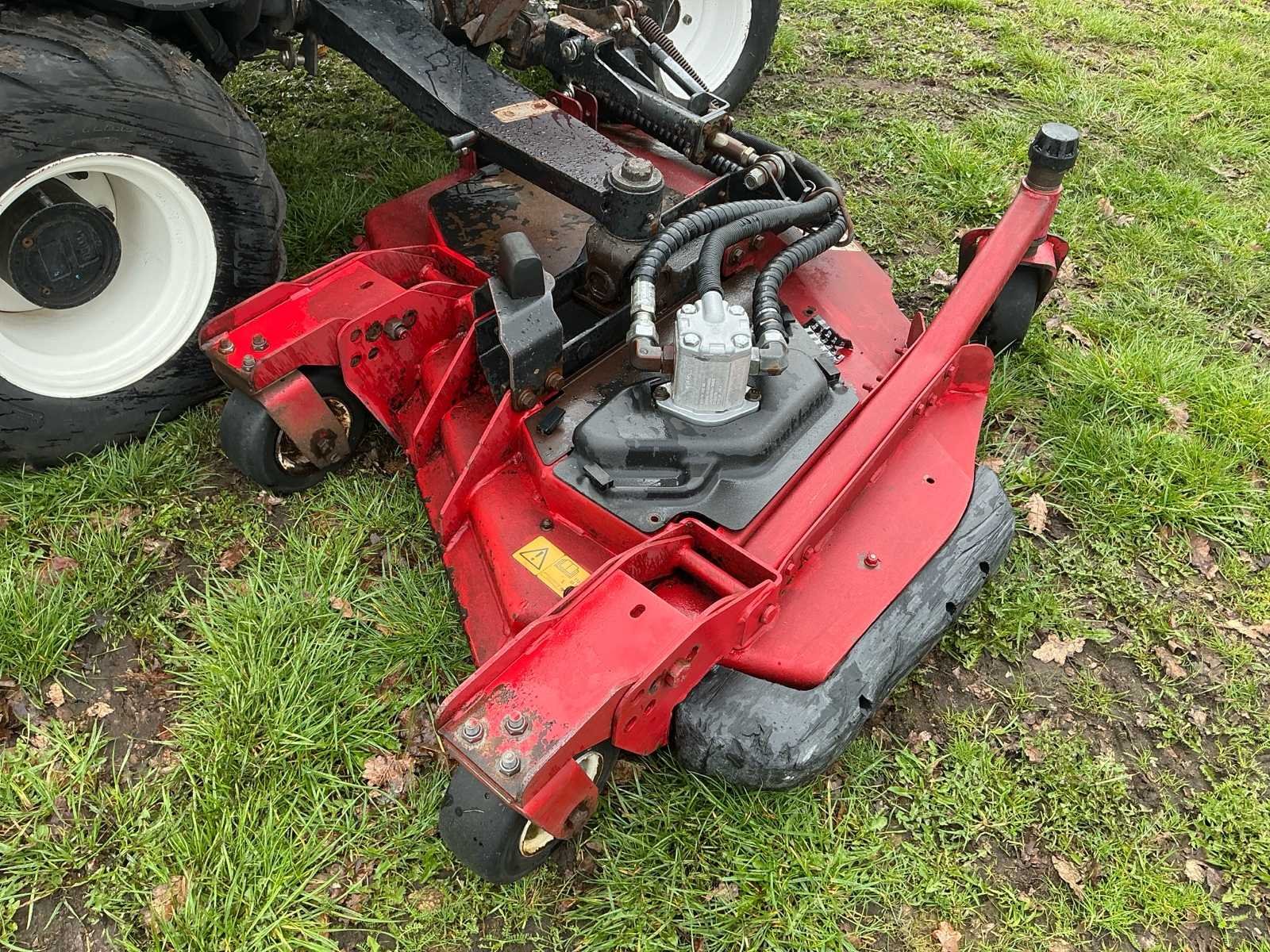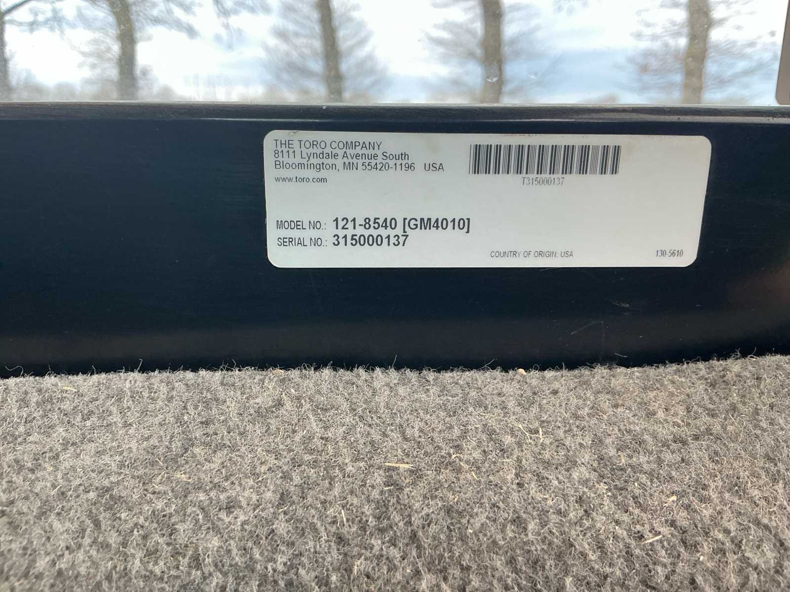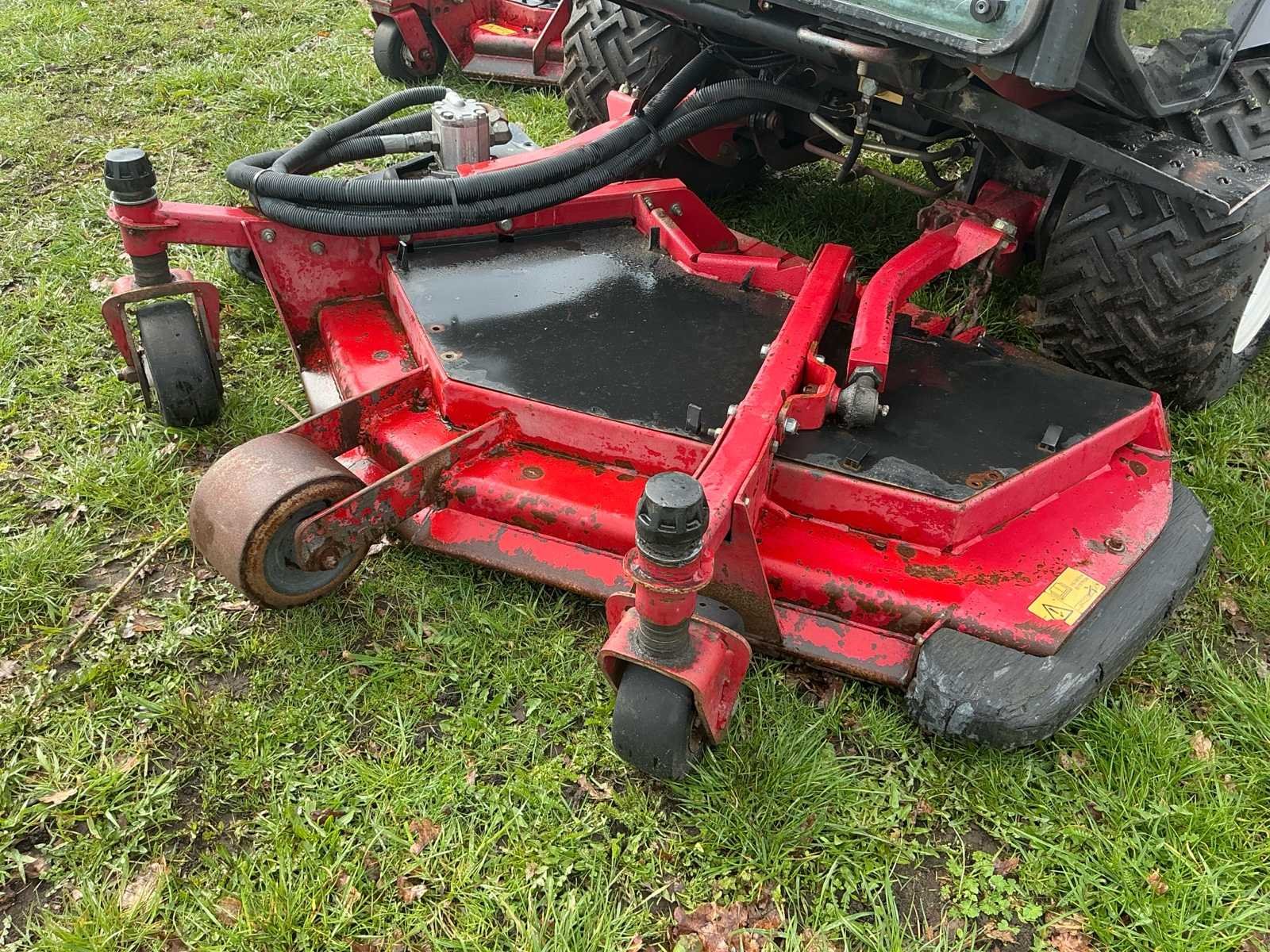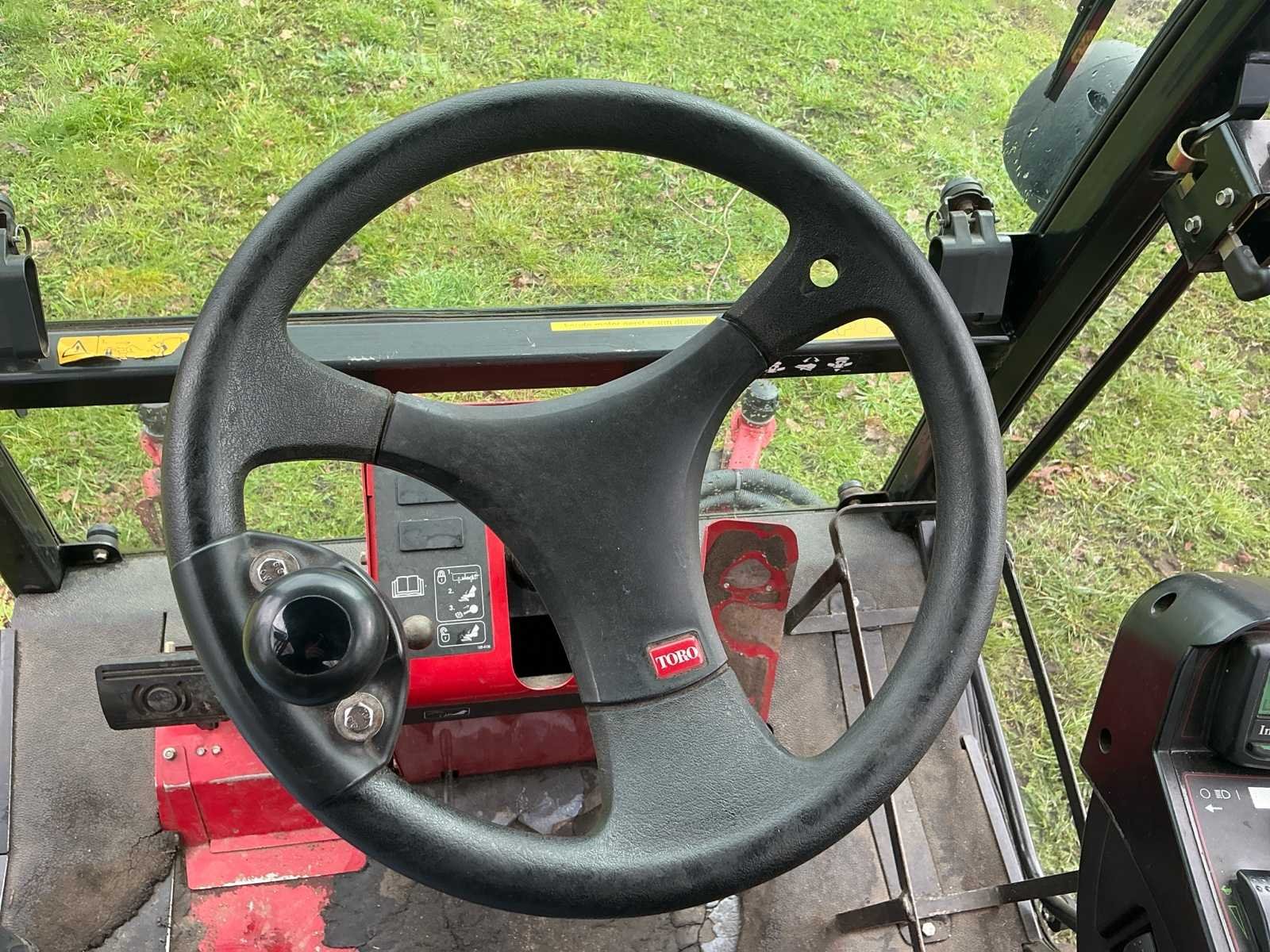 Voorzien van: cabine, 7 maaimessen, verlichting rondom, luchtgeveerde stoel, NL kenteken, actielampen, schijnwerper, Pioneer geluidsinstallatie, kruipversnelling, geleidewielen Nee Merk: Toro Type: Groundmaster 4010 Bouwjaar: 2015 Serienummer: 315000137 Kenteken: THB-06-T Zelfrijdend: true Werkbreedte: 4010mm Aantal maaidekken: 7 Maaihoogte verstelling: true Cabine: true Brandstof: Diesel Afgelezen urenstand: 7548hr Totale afmeting L: 3800mm Totale afmeting Breedte: 2700mm Totale afmeting Hoogte: 2300mm Eigen gewicht: 2495kg