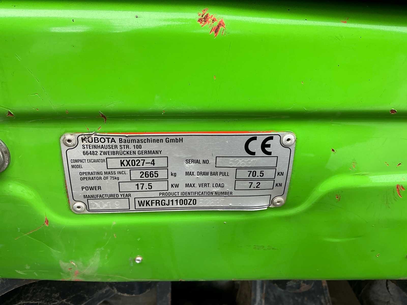 2019 kubota kx027-4 minigraafmachine