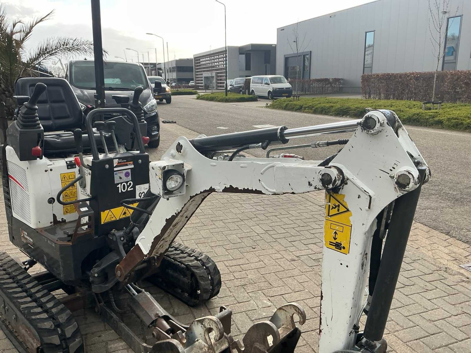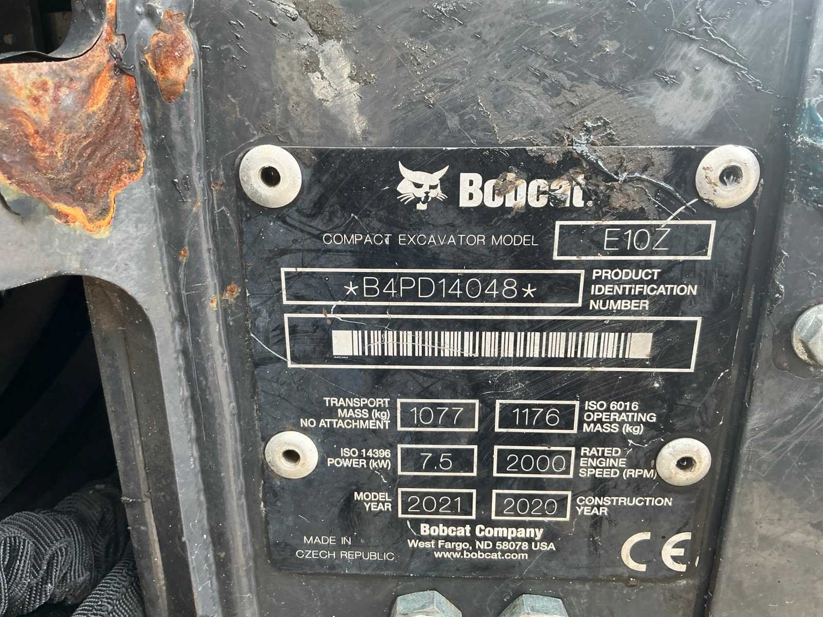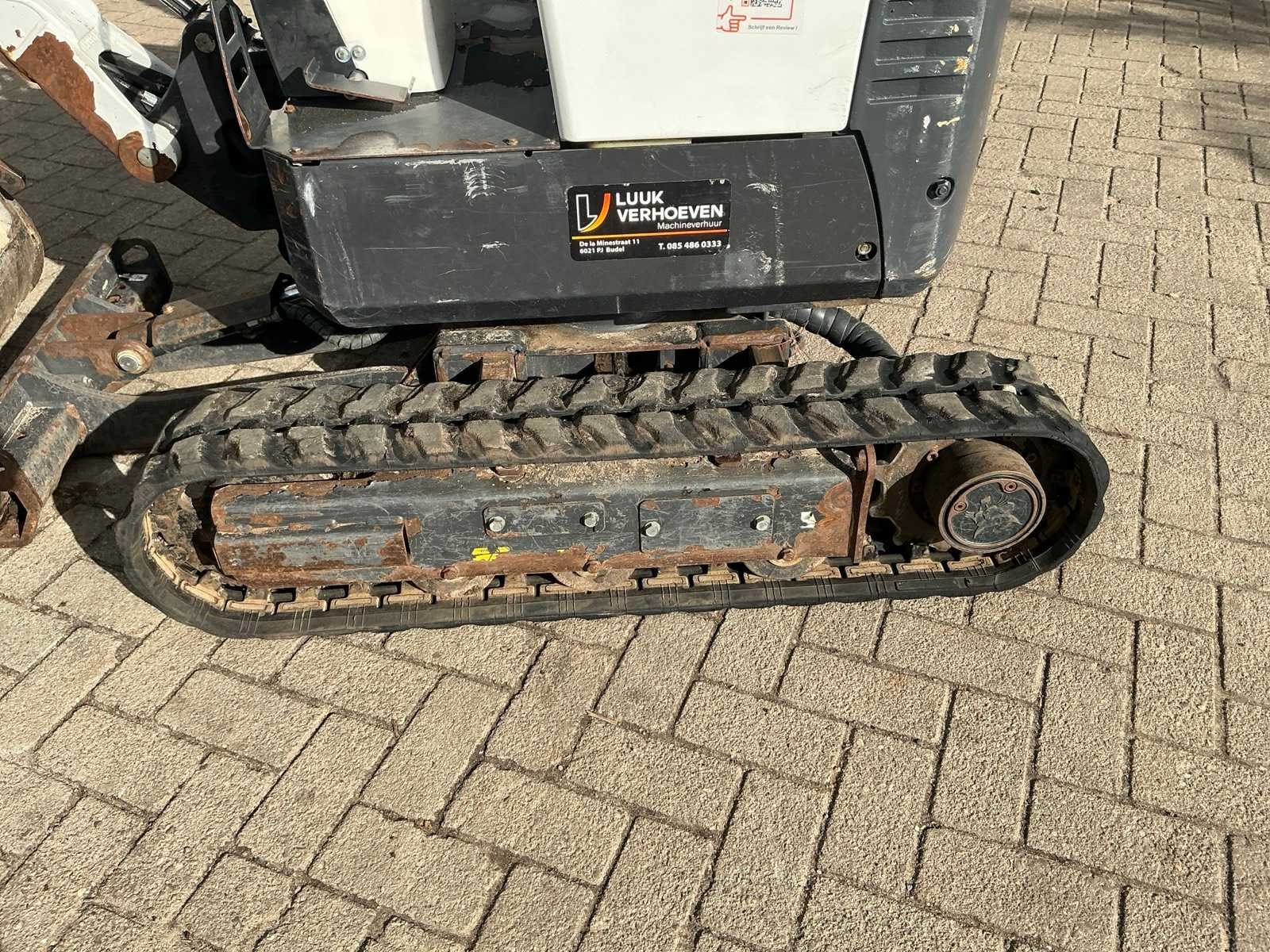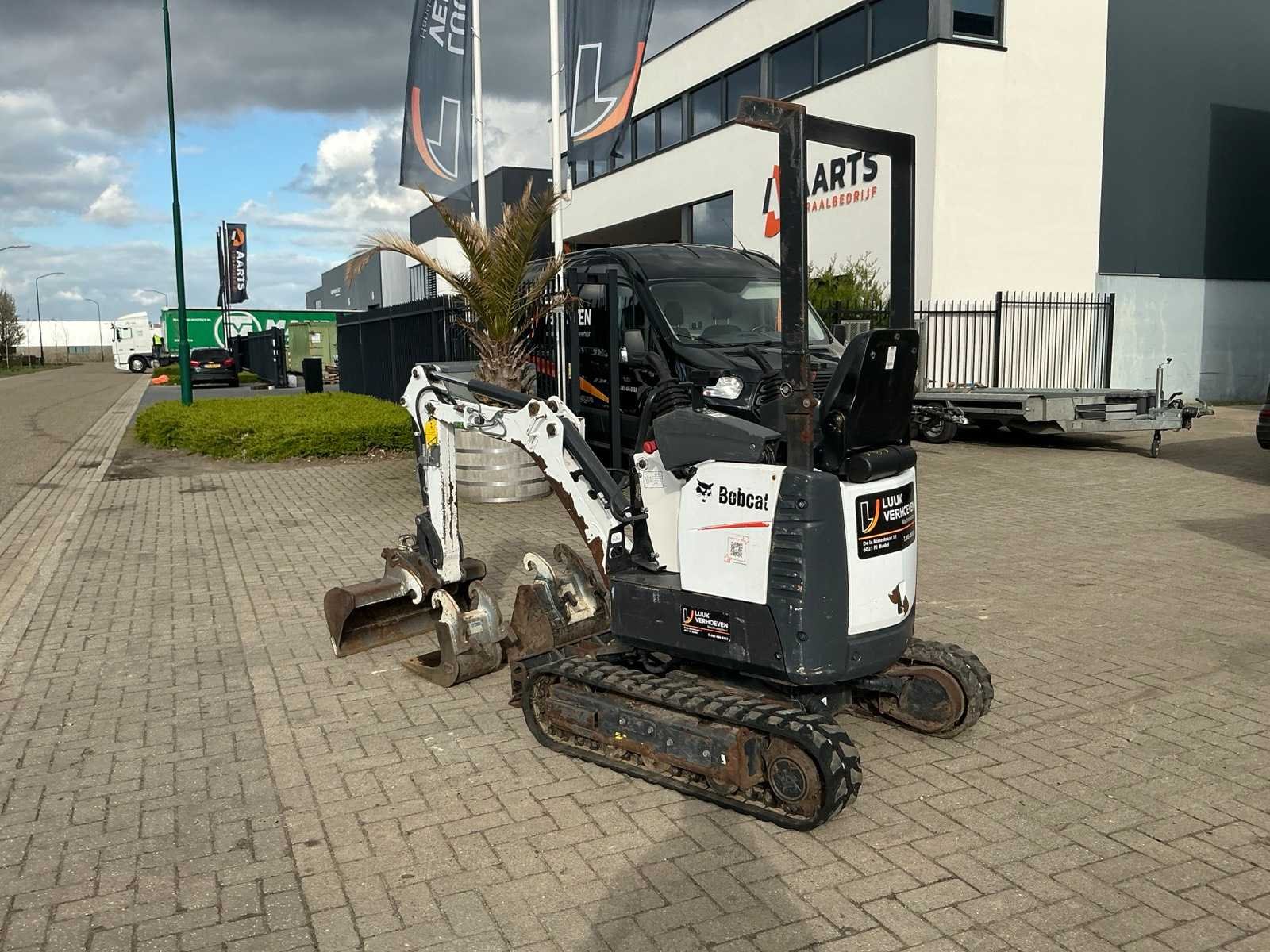 Let op; stickers worden verwijderd bij verkoop, Slotenbak 800mm, dieplepel 400mm, banaan bak 220mm, hydraulische wissel, 3e functie, werkverlichting, blad 675mm, verstelbaar rijwerk 700/1000mm, neerklapbare beugel No Merk: Bobcat Type: E10Z Bouwjaar: 2020 Serienummer: B4PD14048 Merk motor: Kubota Motorvermogen (kW): 7.5kW Aantal cilinders: 3 Brandstof: Diesel Bedrijfsgewicht: 1176kg Inclusief graafbak: Yes Rups breedte: 180mm Afgelezen urenstand: 1533 Eigen gewicht: 1176kg Totale afmeting L: 2600mm Totale afmeting Breedte: 1000mm Totale afmeting Hoogte: 2300mm