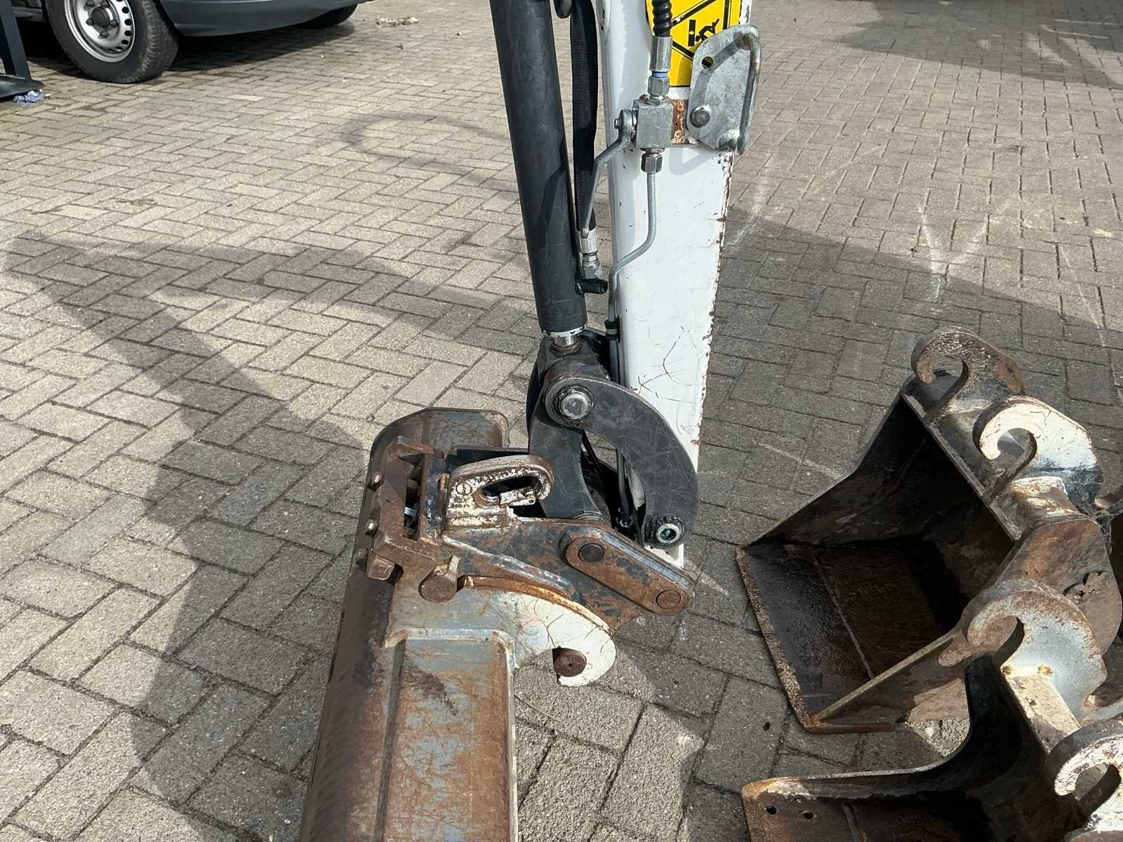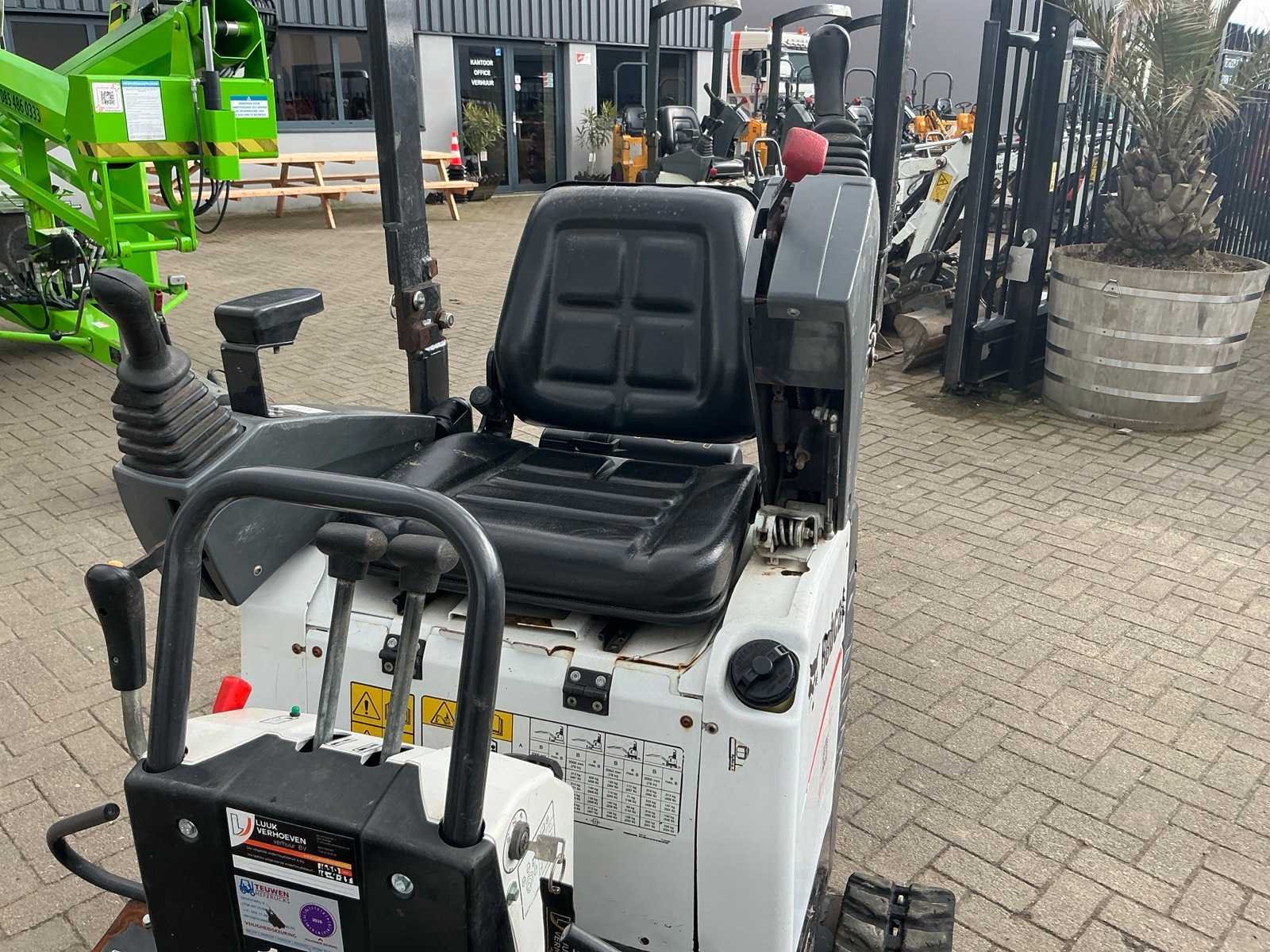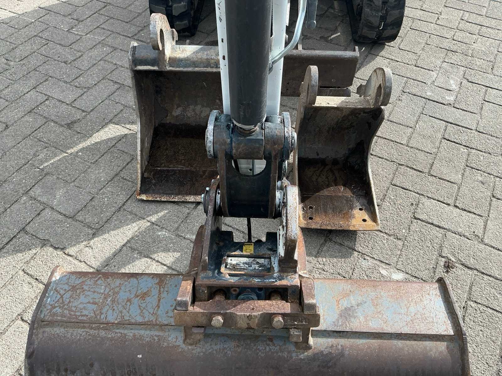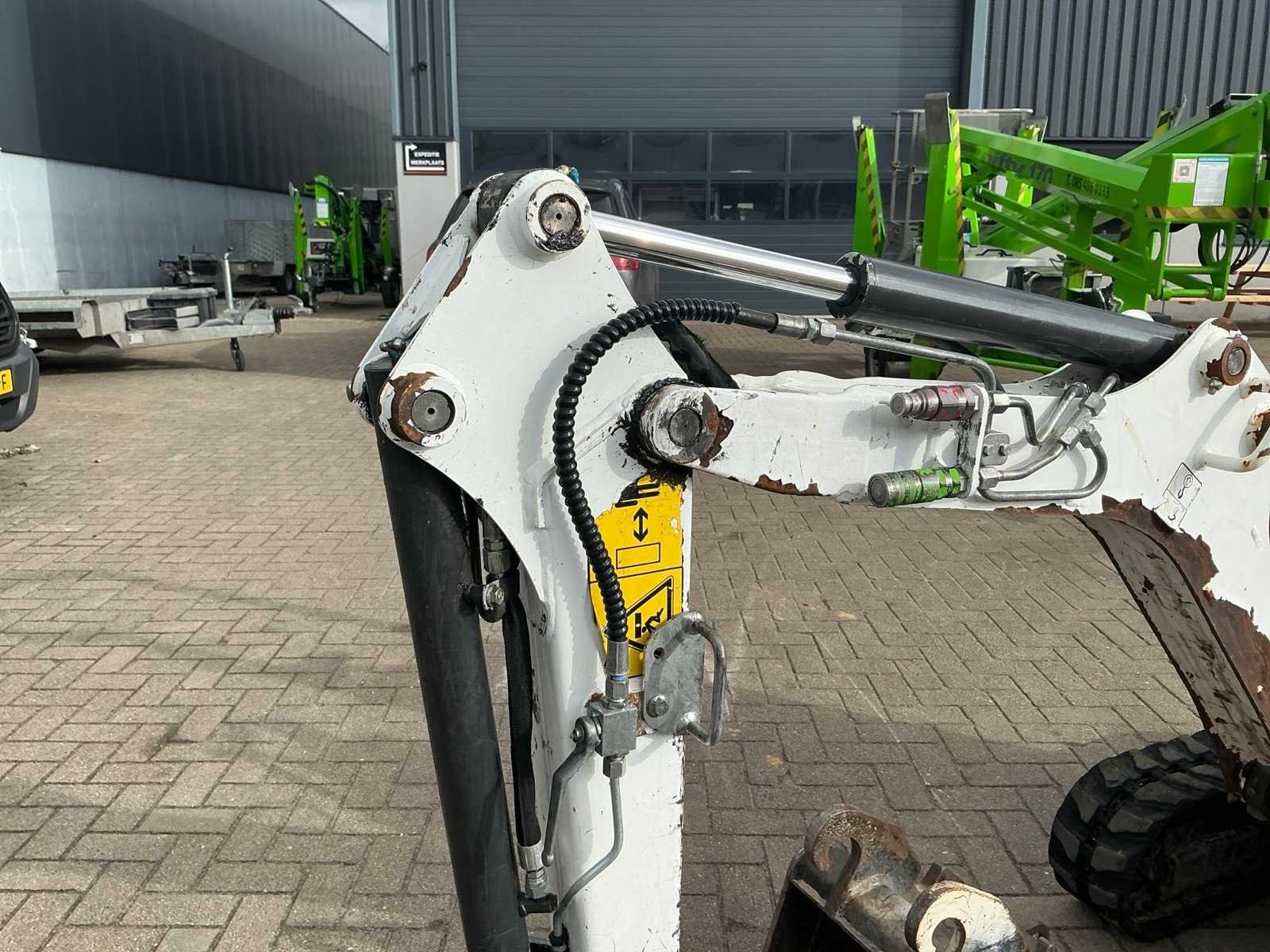Let op; stickers worden verwijderd bij verkoop, Slotenbak 800mm, dieplepel 400mm, banaan bak 220mm, hydraulische wissel, 3e functie, werkverlichting, blad 675mm, verstelbaar rijwerk 700/1000mm, neerklapbare beugel No Merk: Bobcat Type: E10Z Bouwjaar: 2020 Serienummer: B4PD14048 Merk motor: Kubota Motorvermogen (kW): 7.5kW Aantal cilinders: 3 Brandstof: Diesel Bedrijfsgewicht: 1176kg Inclusief graafbak: Yes Rups breedte: 180mm Afgelezen urenstand: 1533 Eigen gewicht: 1176kg Totale afmeting L: 2600mm Totale afmeting Breedte: 1000mm Totale afmeting Hoogte: 2300mm