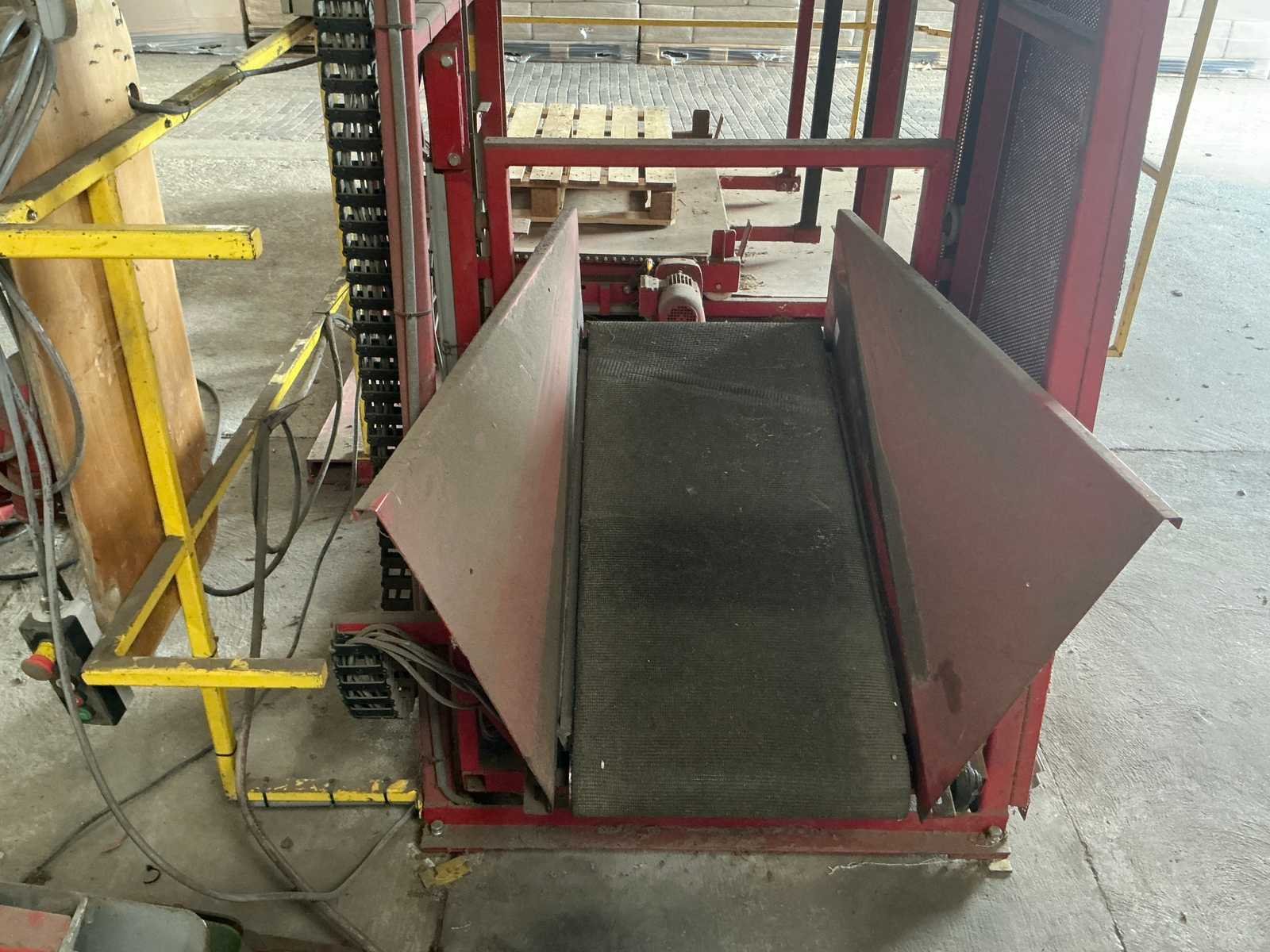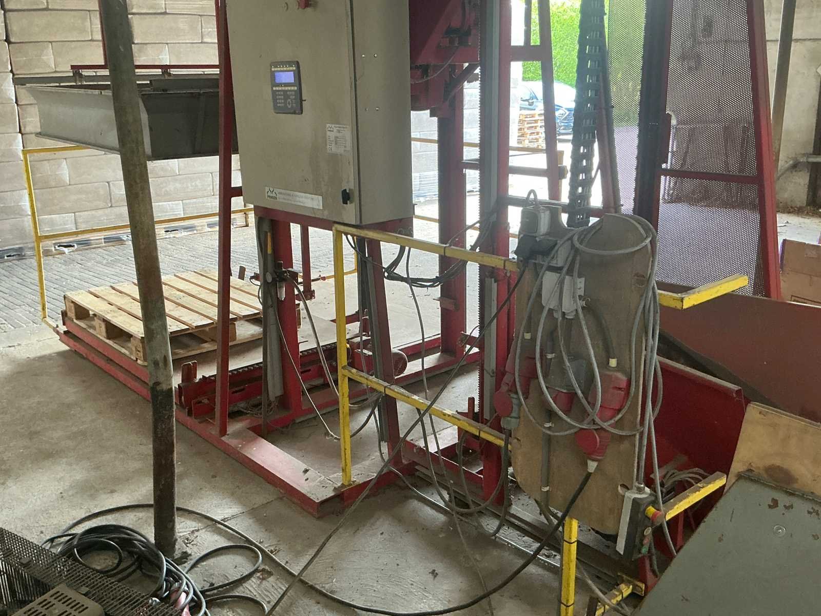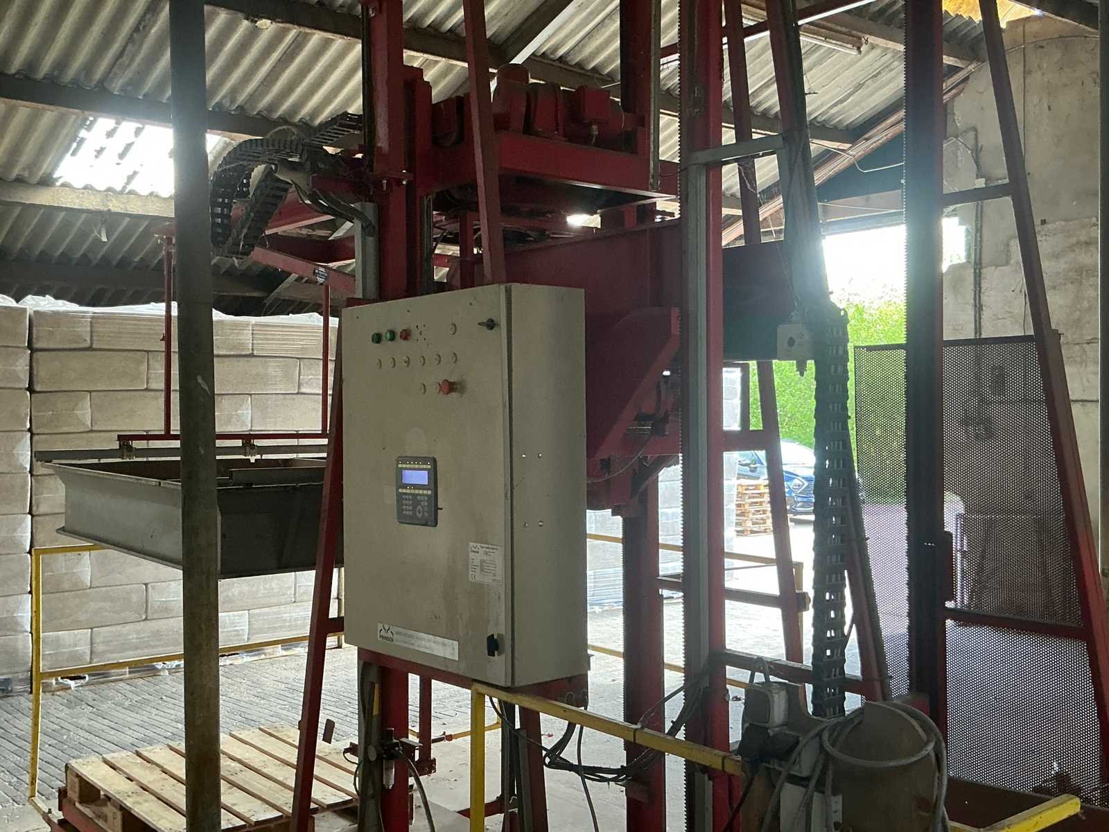 Machine is demonteerbaar naar max 2x3x2.6m. Totale hoogte: 410cm. Geschikt voor pallets 120x160cm, 120x100cm en 80x120cm. Stapelen kan ingesteld worden op 5-slag met 20 en 25kg zak, 3 slag 20-25kg. 6 slag 50kg zak. Nee Merk: De Lignie Type: PM-6 Bouwjaar: 1998 Serienummer: 98212 Aansluiting: 400V Totale afmeting L: 3400mm Totale afmeting Breedte: 2400mm Totale afmeting Hoogte: 4100mm