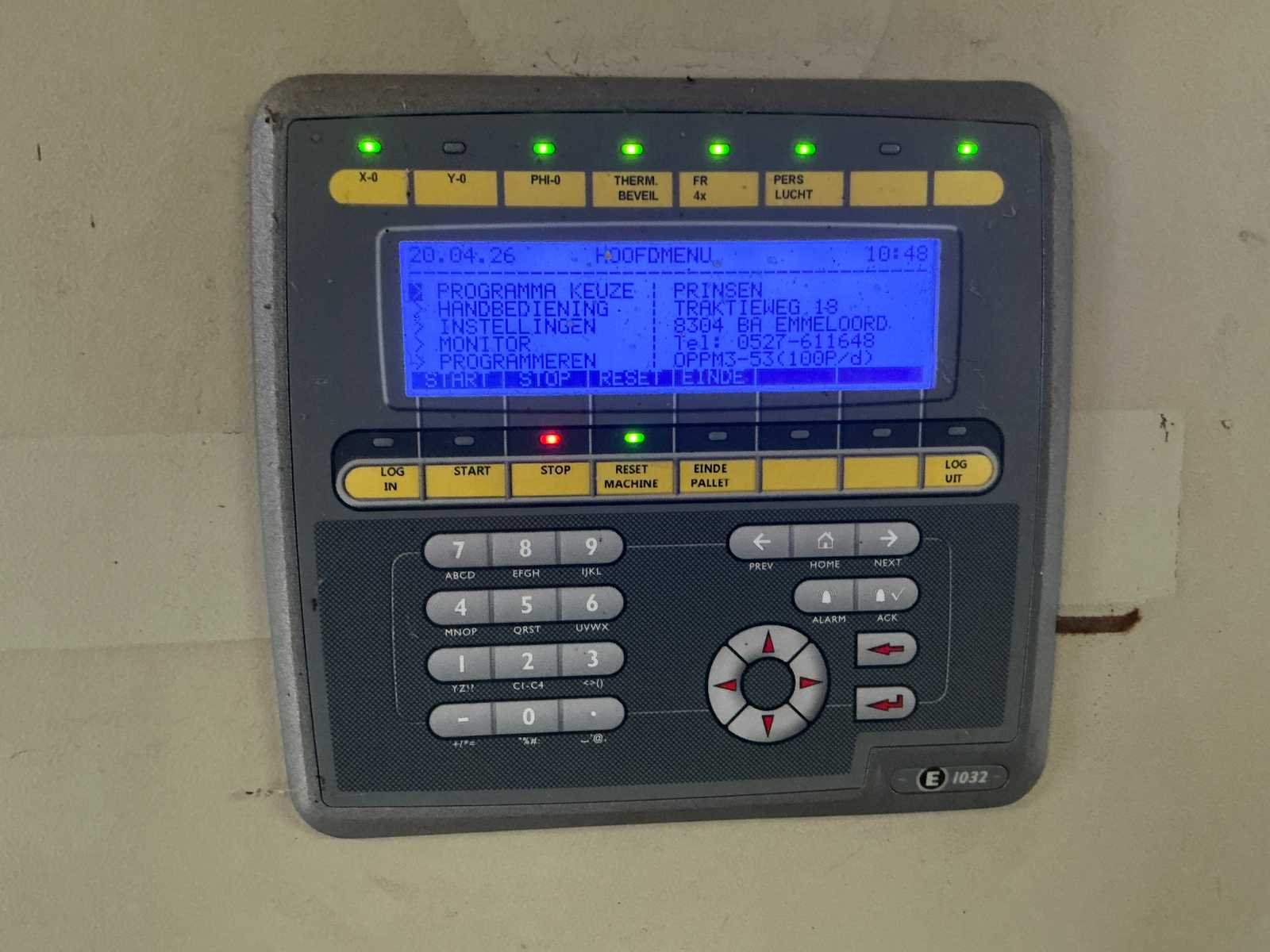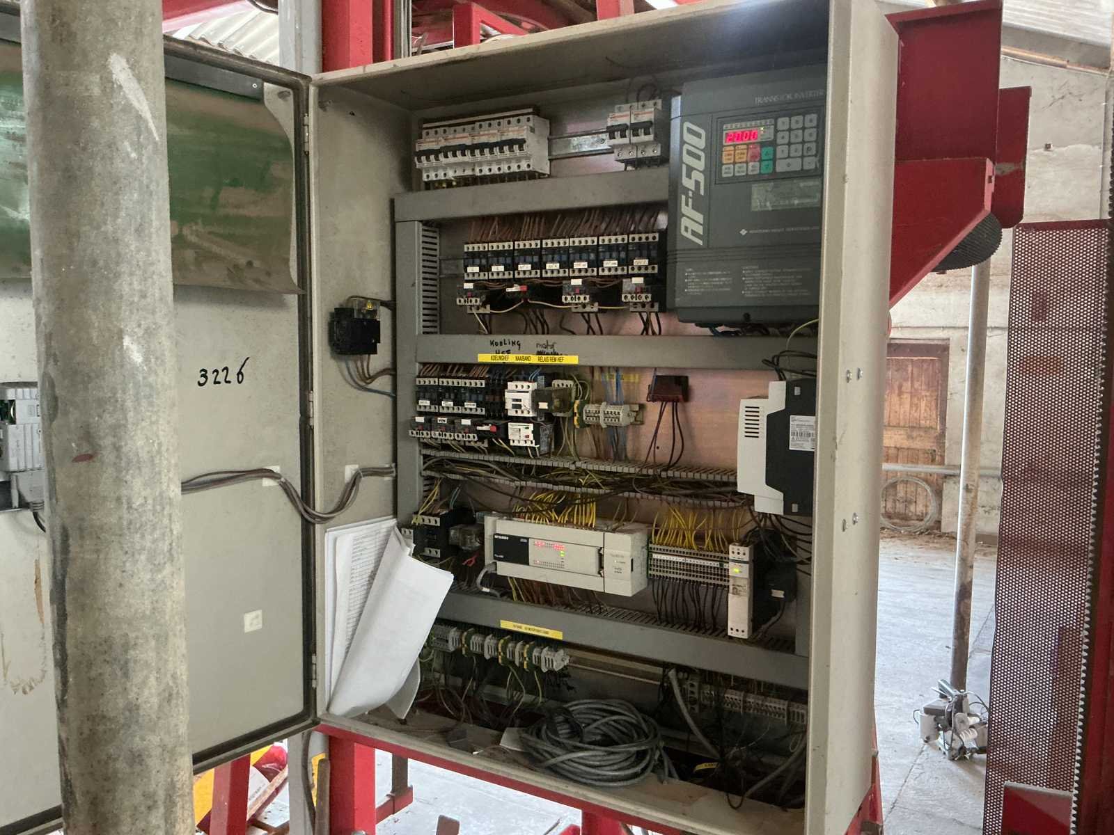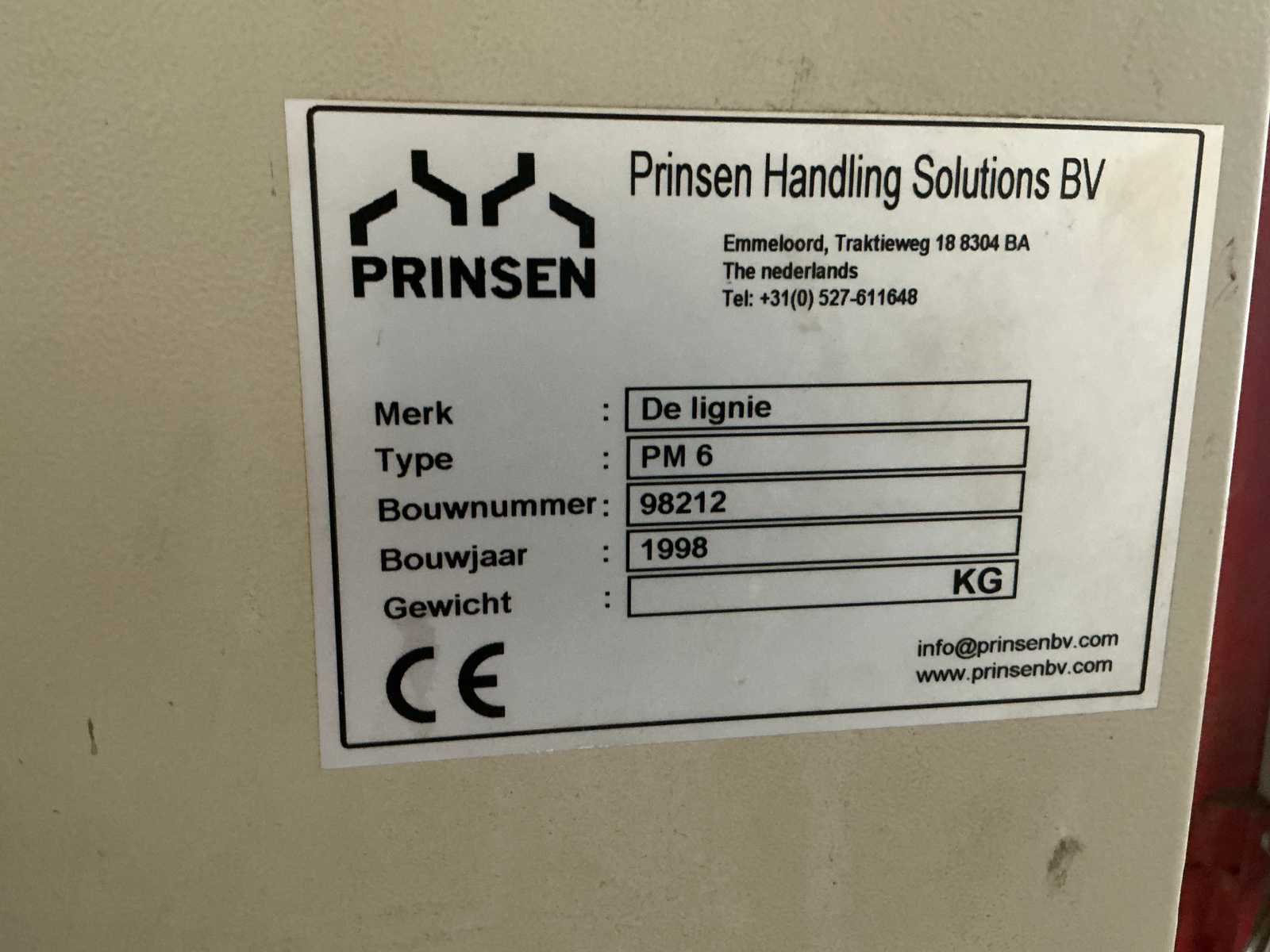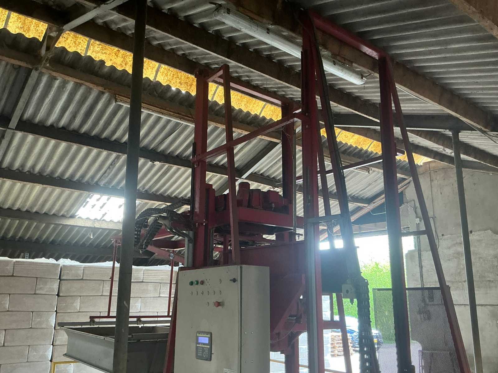 Machine is demonteerbaar naar max 2x3x2.6m. Totale hoogte: 410cm. Geschikt voor pallets 120x160cm, 120x100cm en 80x120cm. Stapelen kan ingesteld worden op 5-slag met 20 en 25kg zak, 3 slag 20-25kg. 6 slag 50kg zak. Nee Merk: De Lignie Type: PM-6 Bouwjaar: 1998 Serienummer: 98212 Aansluiting: 400V Totale afmeting L: 3400mm Totale afmeting Breedte: 2400mm Totale afmeting Hoogte: 4100mm