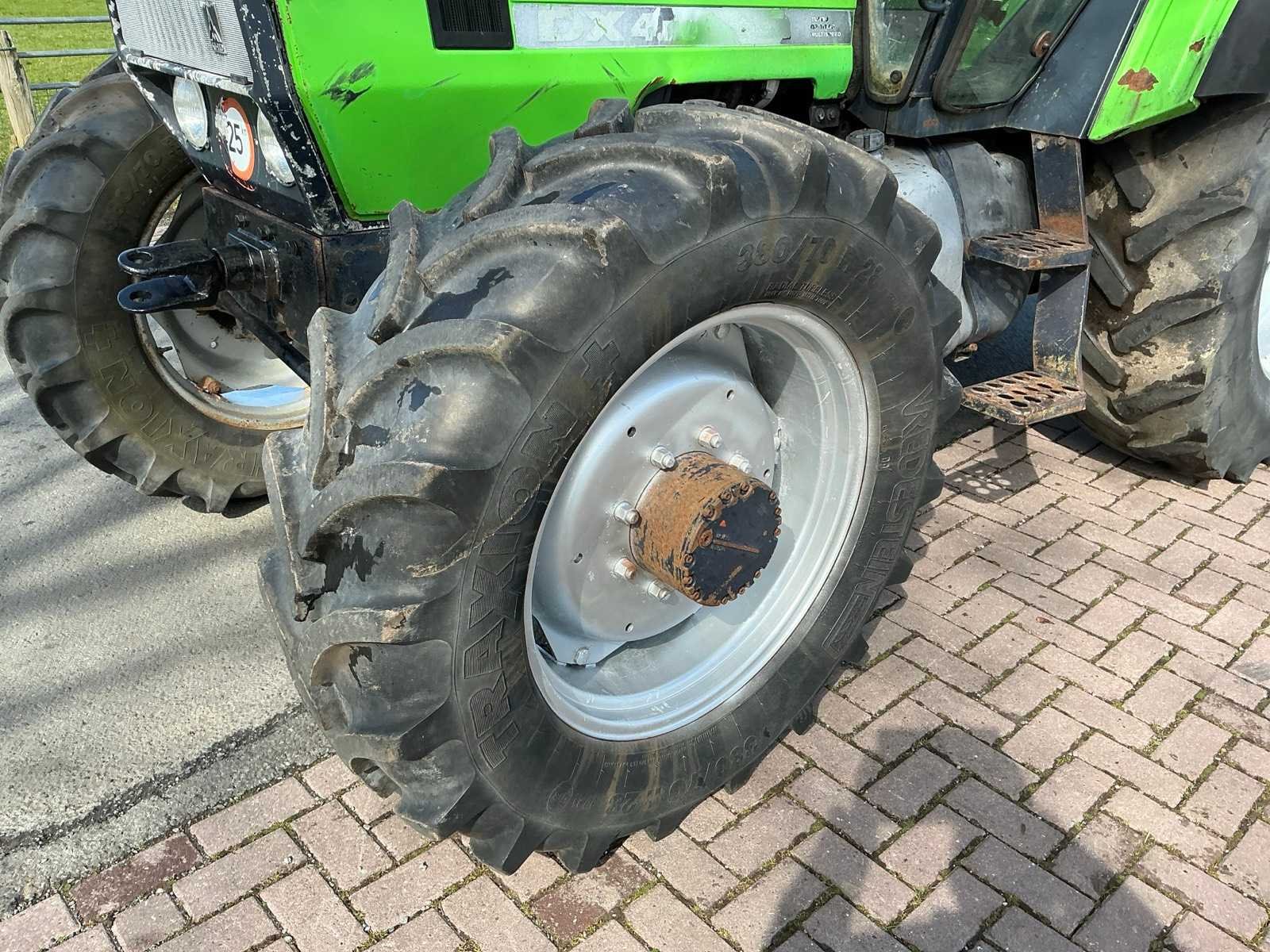 Deutz 40kmh Hydro remventiel;kipperknobbel; boventrekhaak/ondertrekhaak; aftaks toerental : 540/1000 RPM; LET OP, 1 kop lekt. NIEUWE UITLAAT WORD LOS BIJGELEVERD!! Nee Merk: Deutz-fahr Type: DX 4.70 Turbo Bouwjaar: 1988 Kenteken: T-58-BHF Versnellingsbaktype: 40Kmh handgeschakeld Bandenmaat voor: 380/70R28 Bandenmaat achter: 18.4R38 Cabine: true Kentekenpapieren compleet?: true Datum eerste toelating: 1988-06-30 Nationaliteit documenten: Nederland Zelf rijdend exporteren: Mogelijk