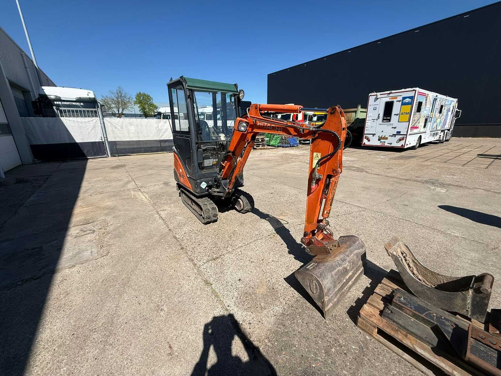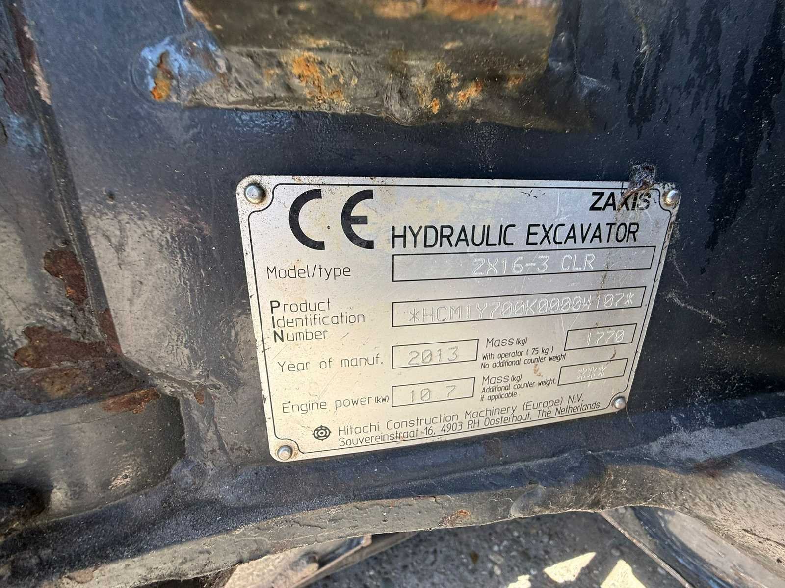 Voorzien van: extra hydraulische functie, snelwissel, zwenkgiek, Yanmar 3 cilinder dieselmotor, dozerblad, 4x bak/aanbouwdelen Nee Merk: Hitachi Type: Zaxis 16 Bouwjaar: 2013 Serienummer: 2728 Merk motor: Yanmar Motorvermogen (kW): 11kW Aantal cilinders: 3 Brandstof: Diesel Bedrijfsgewicht: 1770kg Inclusief graafbak: Yes Afgelezen urenstand: 2728 Eigen gewicht: 1770kg Totale afmeting L: 3000mm Totale afmeting Breedte: 1100mm Totale afmeting Hoogte: 2300mm