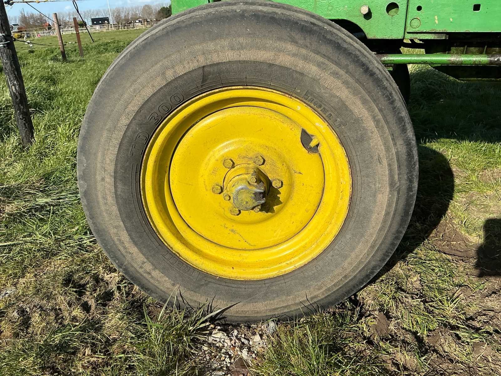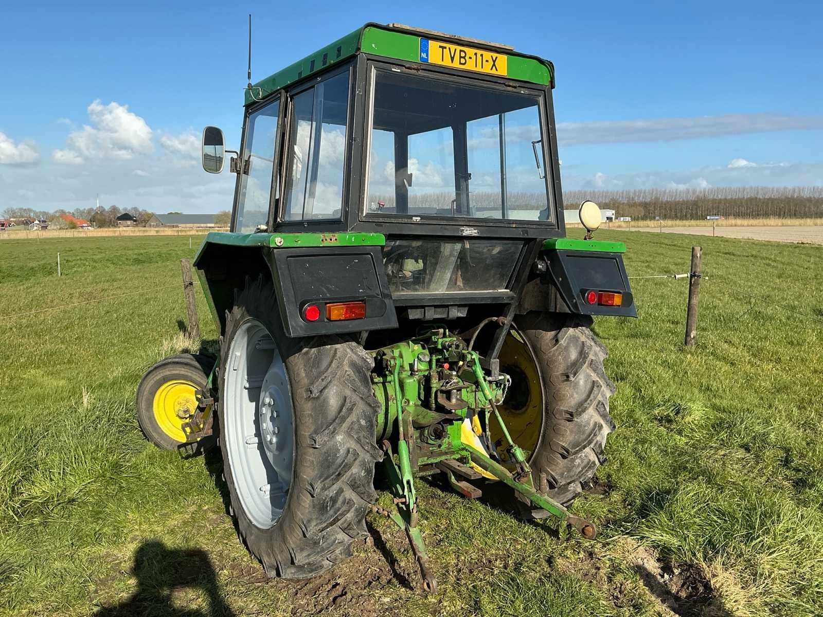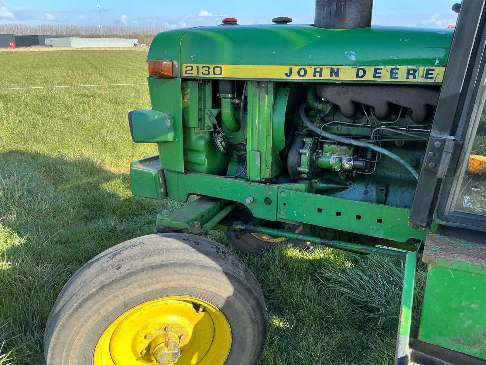 Voorzien van: cabine, hefinrichting achterzijde, aftakas achterzijde, verlichting, hydraulische ventielen achterzijde. No Merk: John Deere Type: 2130 Bouwjaar: 1971 Kenteken: TVB11X Motorvermogen (kW): 55kW Bandenmaat voor: 7.5-18 Bandenmaat achter: 13.6 R38 Aantal hydraulische ventielen achter: 2 Cabine: true Eigen gewicht: 2750kg Totale afmeting L: 3600mm Totale afmeting Breedte: 2100mm Totale afmeting Hoogte: 2750mm Kentekenpapieren compleet?: true Datum eerste toelating: 1971-06-30 Nationaliteit documenten: Nederlands