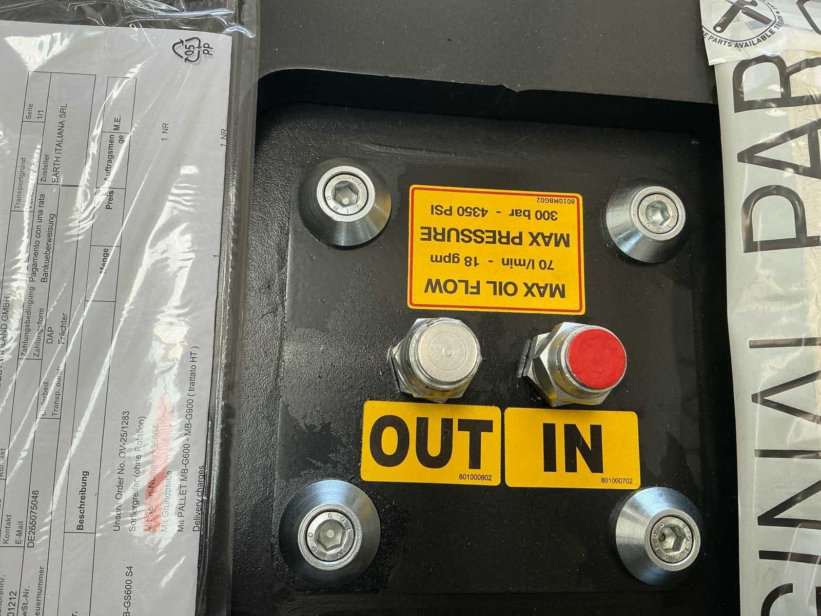 Voorzien van: MB Crusher MB-G600 S4 sorteergrijper (bouwjaar 2025) met een gewicht van 625 kg, hydraulisch systeem met maximale werkdruk van 300 bar, type “pinza movimentati” (sorteergrijper) en serienummer 35664. No Merk: MB Type: MB-GS600 S4 Bouwjaar: 2025 Serienummer: 35664 Graafbak afm. l: 650mm Graafbak afm. b: 1700mm Graafbak afm. h: 850mm Eigen gewicht: 625kg