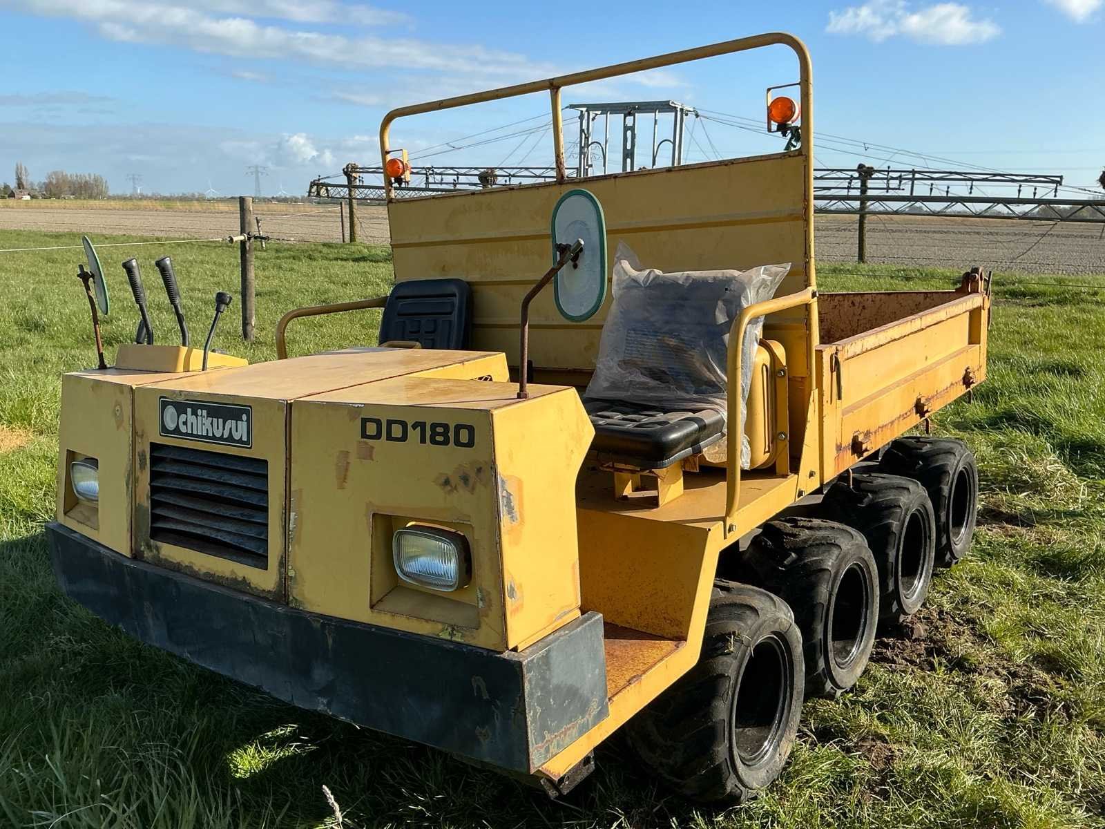 Voorzien van: 8 wielen, hydraulische kantelbare laadbak, Mitsubishi dieselmotor. Afmeting laadba: 140 x 160 x 28 cm. Nee Merk: Chikusui Type: DD180 Merk motor: Mitsubishi Brandstof: Diesel Afgelezen urenstand: 4094 Totale afmeting L: 2900mm Totale afmeting Breedte: 1600mm Totale afmeting Hoogte: 1700mm