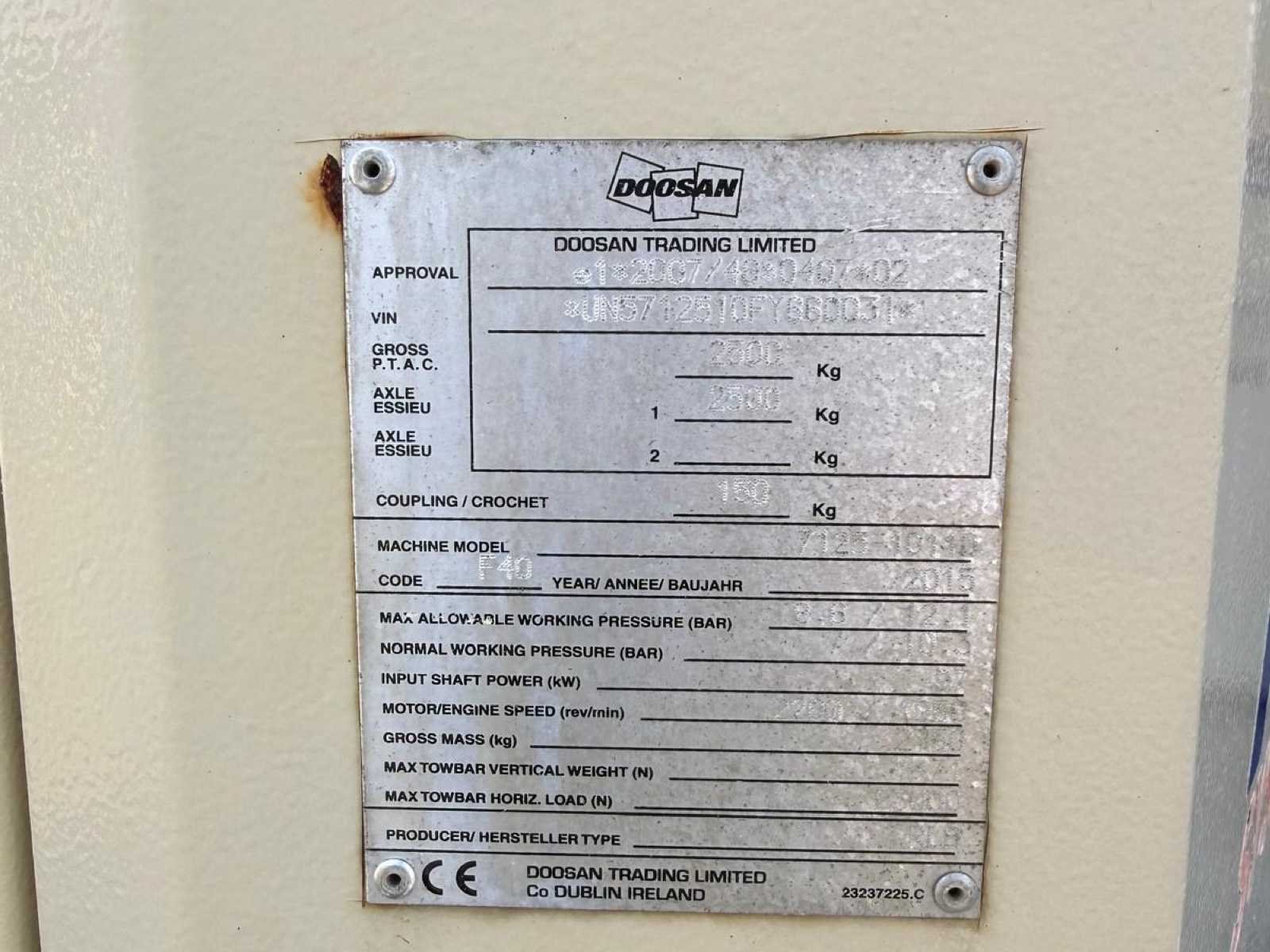 2015 doosan 7/125-10/110 mobiele compressor