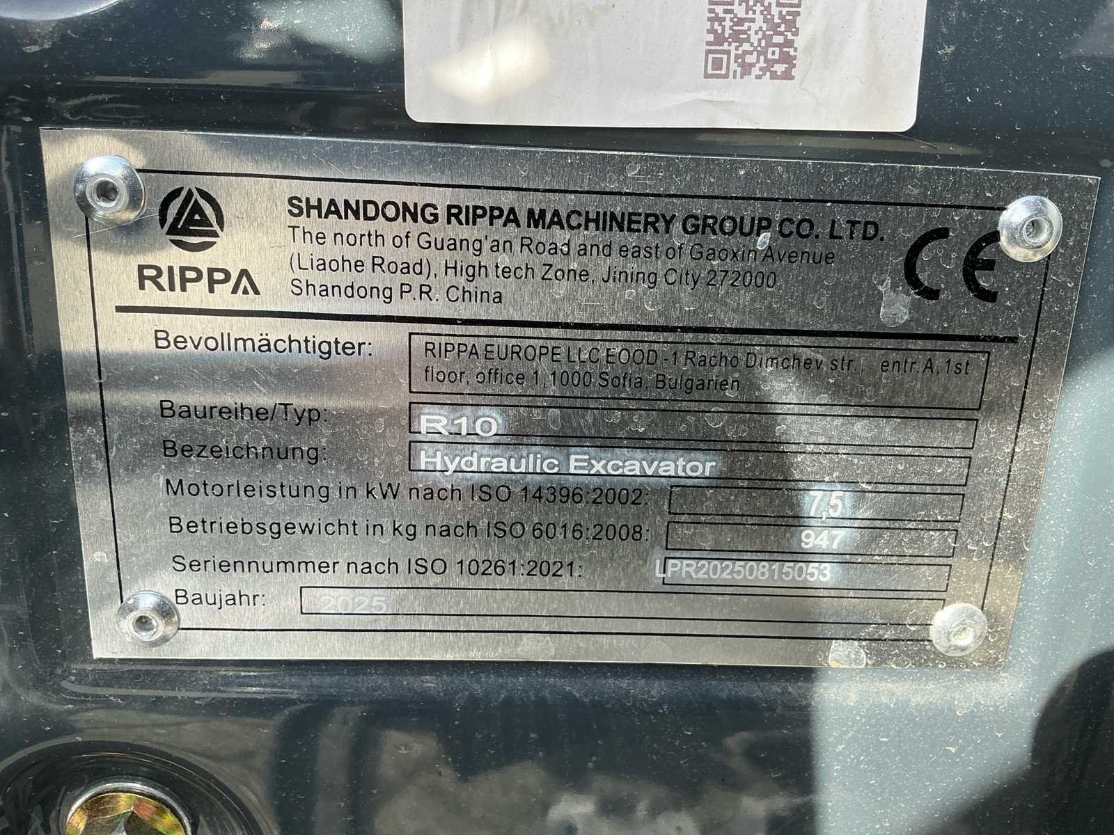Voorzien van: verstelbare rupsen, schuifblad, zwaailamp, CE-certificaat, extra hydraulische functie op giek, hydraulische klem op giek, zwenkgiek, werkverlichting, mechanische snelwissel, 2x graafbak (slotenbak, tandenborstel) Nee Merk: Rippa Type: R10 Bouwjaar: 2025 Serienummer: LPR20250815053 Motorvermogen (kW): 7kW Aantal cilinders: 1 Brandstof: Diesel Bedrijfsgewicht: 947kg Inclusief graafbak: Ja Rups breedte: 190mm Afgelezen urenstand: 2 Eigen gewicht: 947kg Totale afmeting L: 3300mm Totale afmeting Breedte: 1000mm Totale afmeting Hoogte: 2250mm