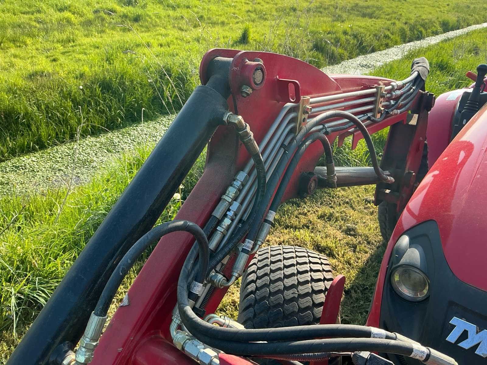 Voorzien van: Veiligheidsbeugel, verlichting, achterhefinrichting met aftakas, mechanische geveerde stoel, inclusief grondbak 1200mm, stuurbekrachtiging Nee Merk: Tym Type: T293HST Bouwjaar: 2020 Serienummer: TY1293NHKKK100079 Kenteken: TTB63P Afgelezen urenstand: 459 Versnellingsbaktype: Hydraustaat Aftakastoerental: 540rpm Aantal hydraulische ventielen voor: 2 Aantal hydraulische ventielen achter: 2 Bandenmaat voor: 26x12.00-12 Bandenmaat achter: 36x13.50-15 Voorlader: true Fronthefinrichting: true Eigen gewicht: 745kg Totale afmeting L: 3200mm Totale afmeting Breedte: 1450mm Totale afmeting Hoogte: 2100mm Kentekenpapieren compleet?: true Chassisnummer: TY1293NHKKK100079 Datum eerste toelating: 2020-06-30